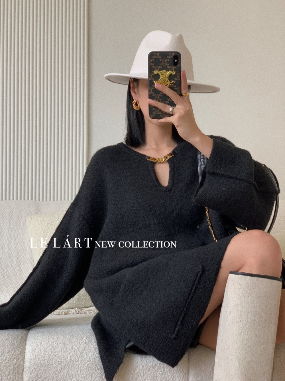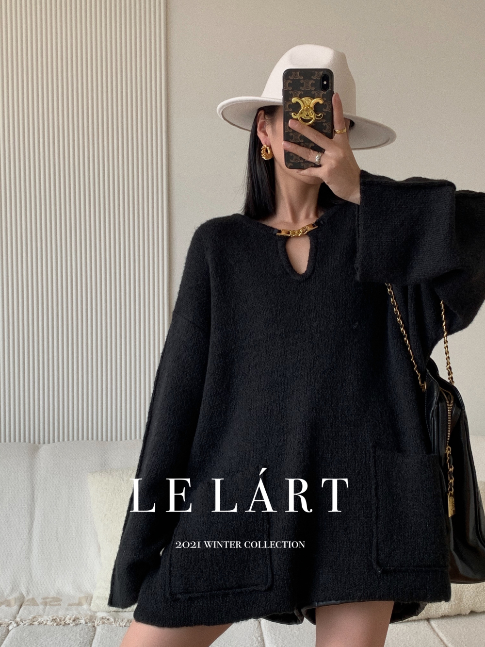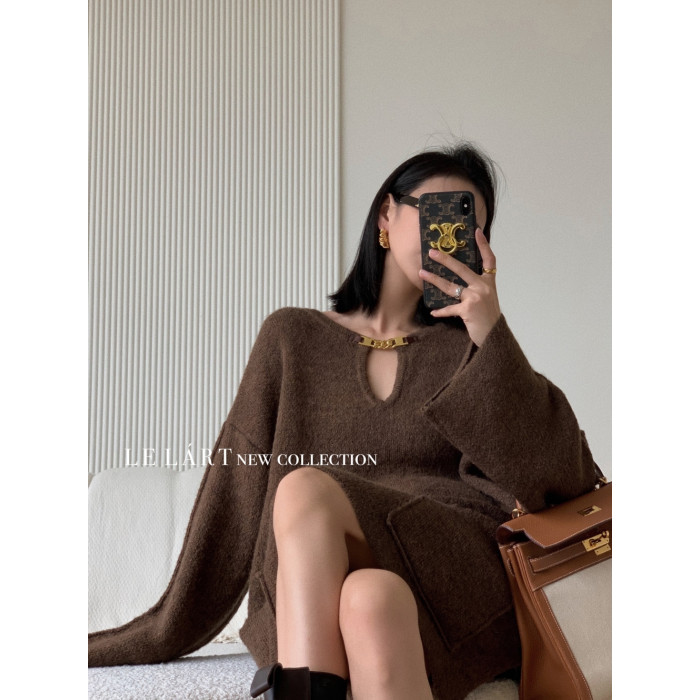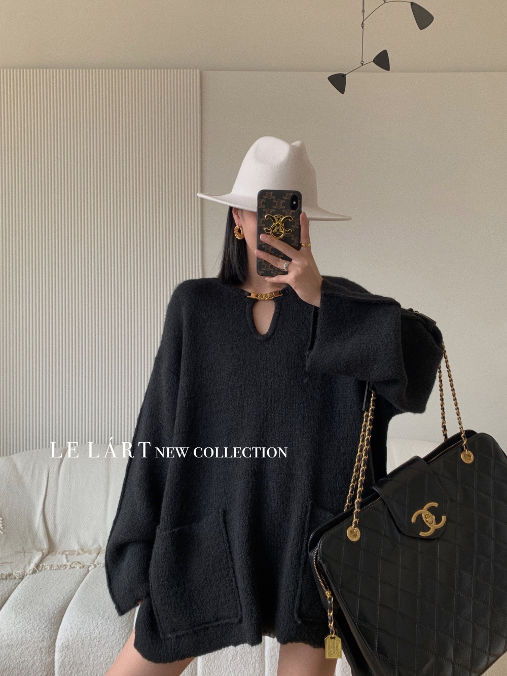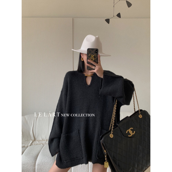 2025冬季新款韓版設計感鏈子中長款寬松毛衣女小衆懶惰風針織上衣
