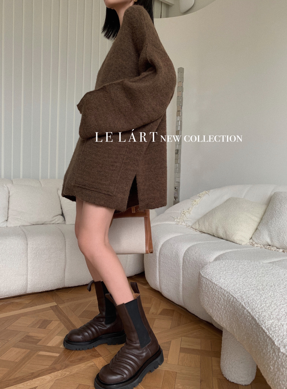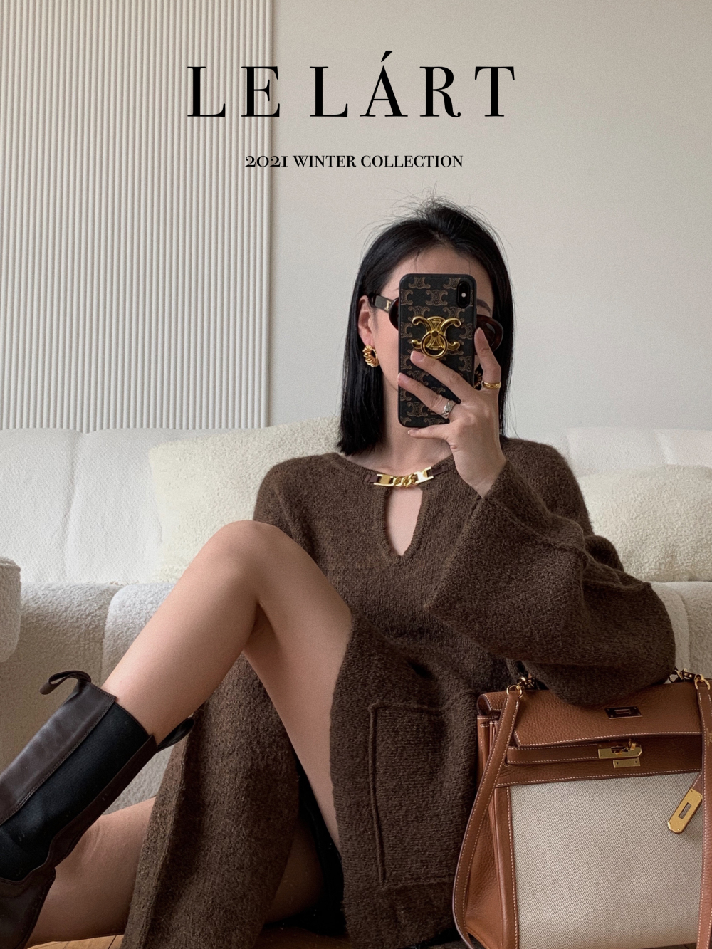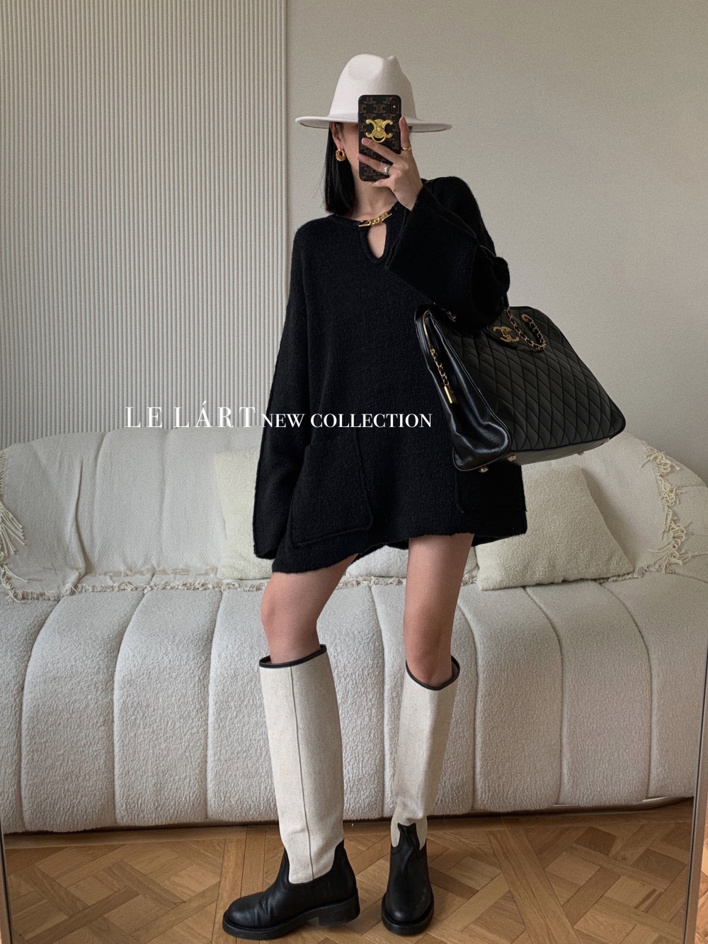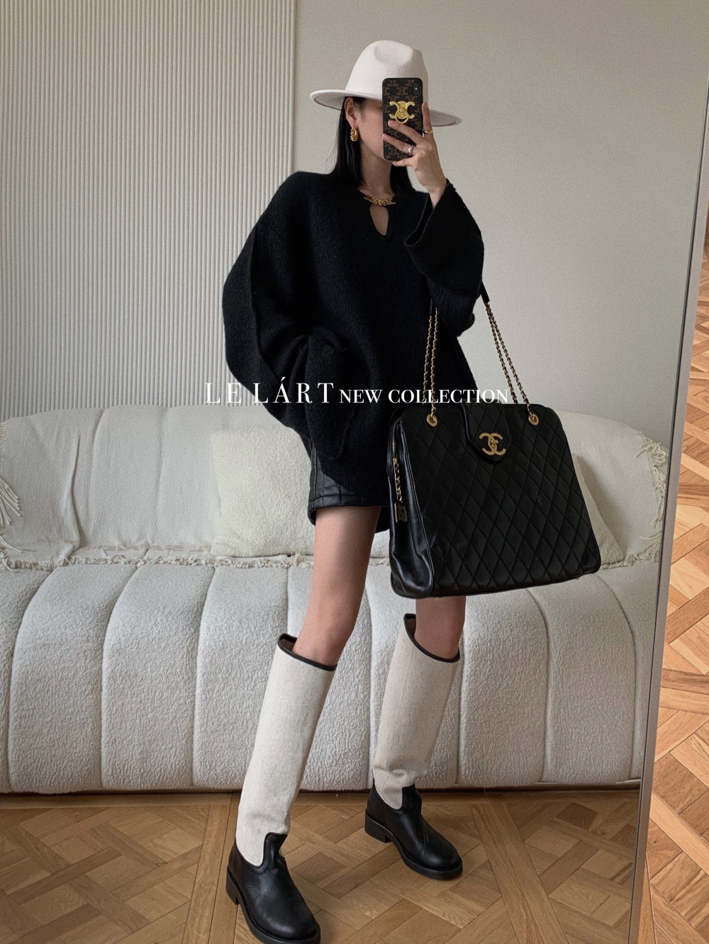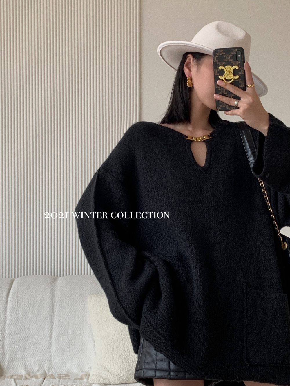 2025冬季新款韓版設計感鏈子中長款寬松毛衣女小衆懶惰風針織上衣