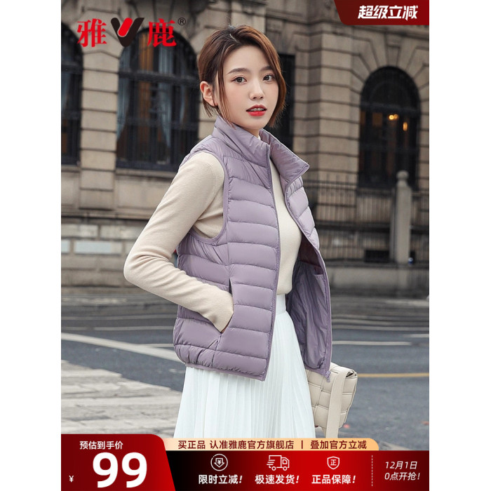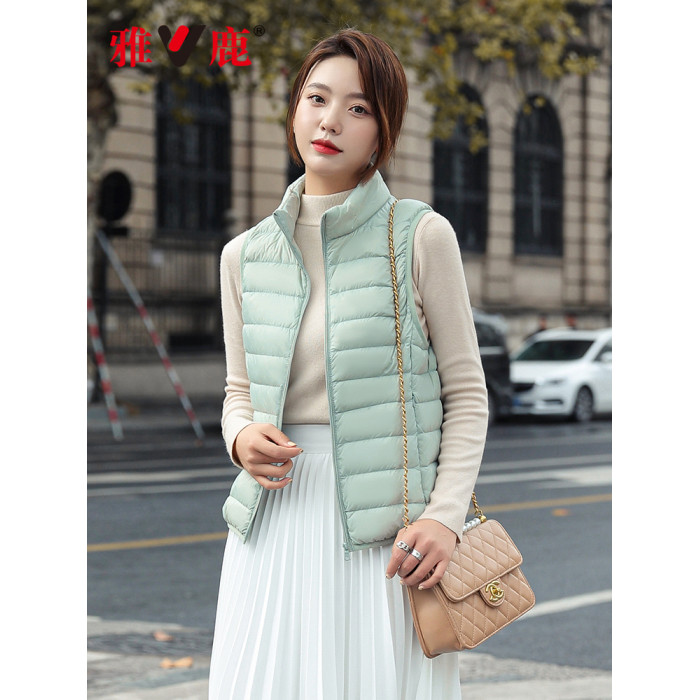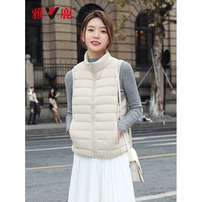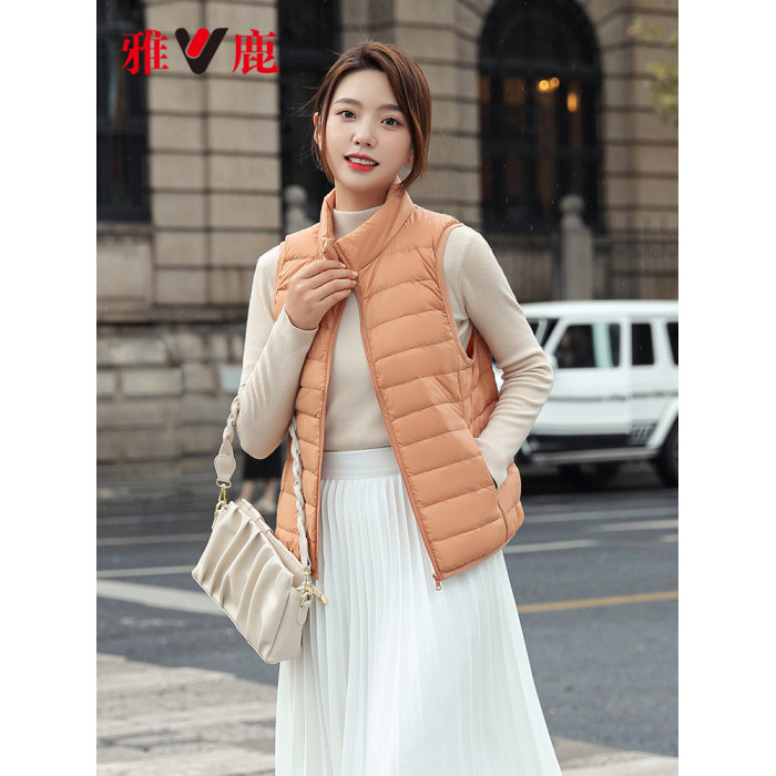 雅鹿立領羽絨馬甲女士內穿背心輕薄款短款保暖舒適鴨絨無袖外套女