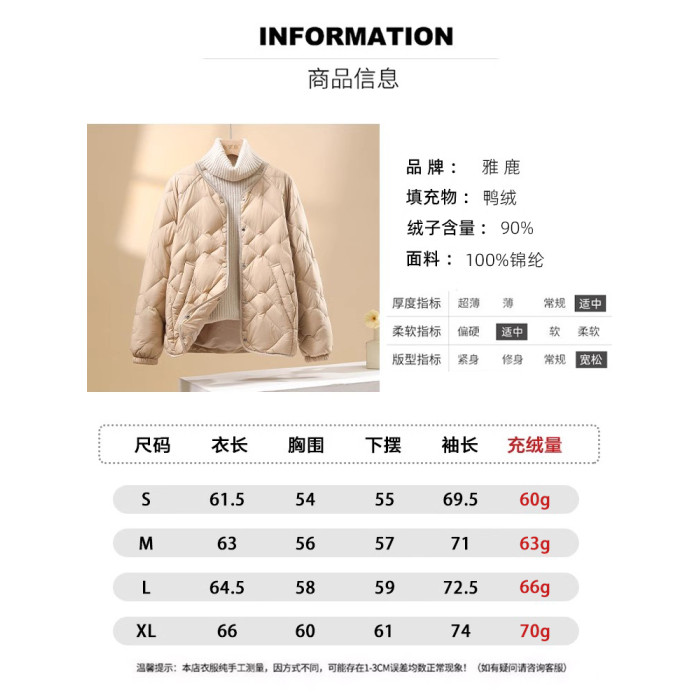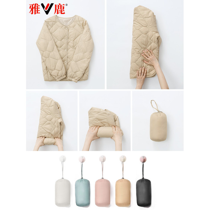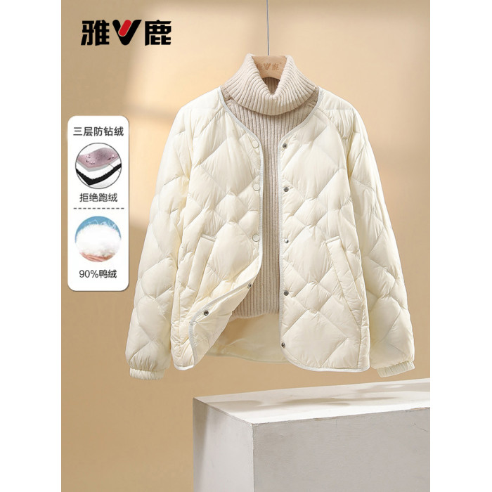 雅鹿2025新款輕薄羽絨服女內膽冬季圓領短款百搭休閒時尚女士外套