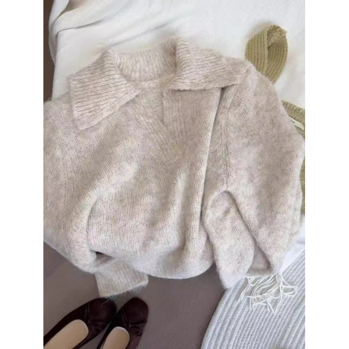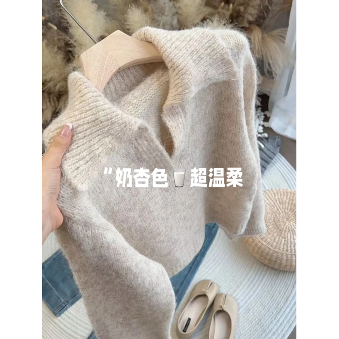 日系復古polo領針織衫女秋冬設計感小衆軟糯打底毛衣內搭翻領上衣