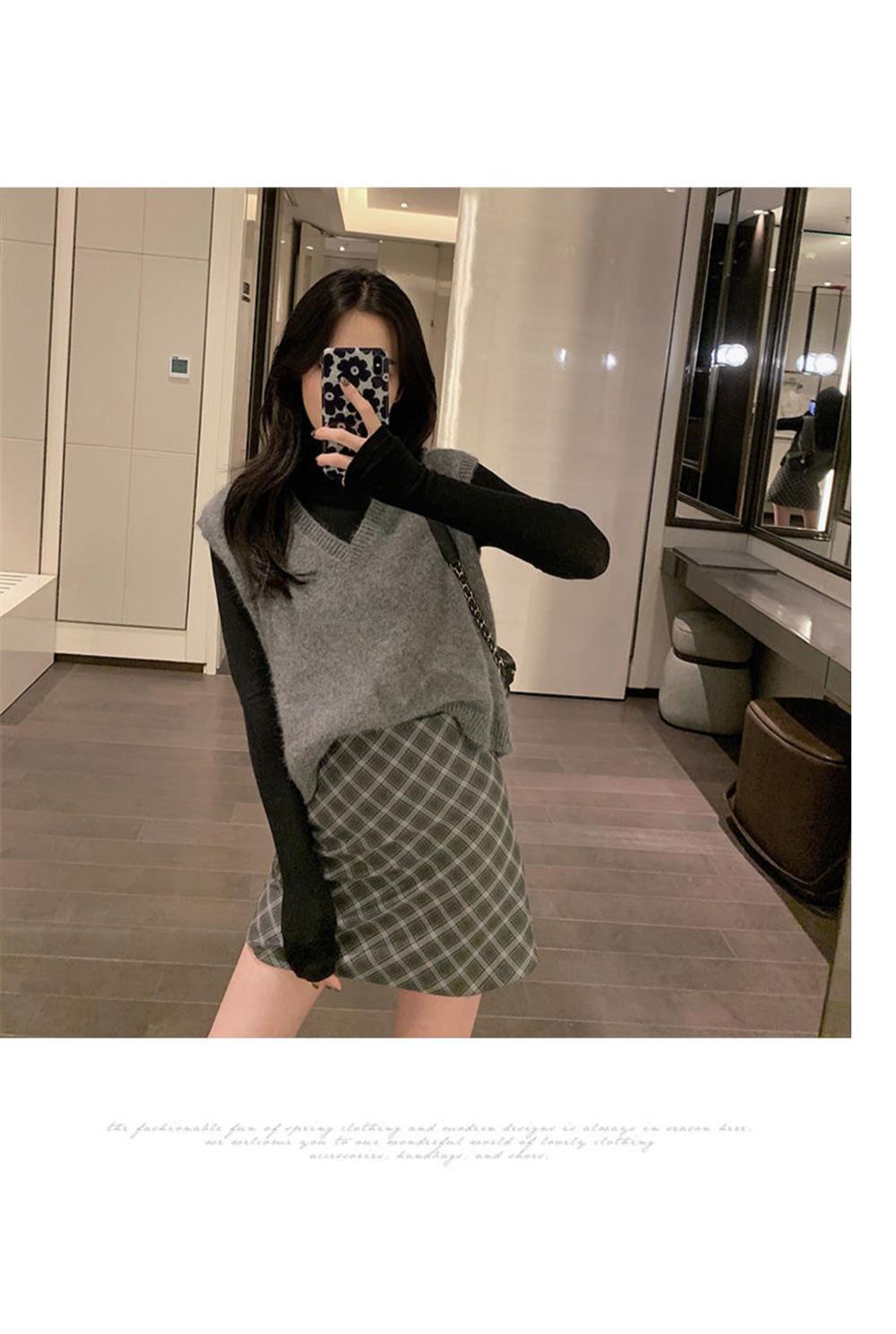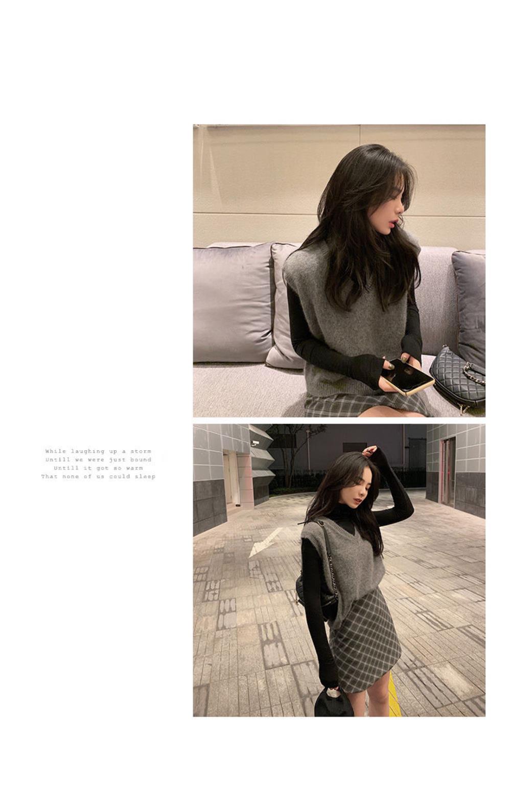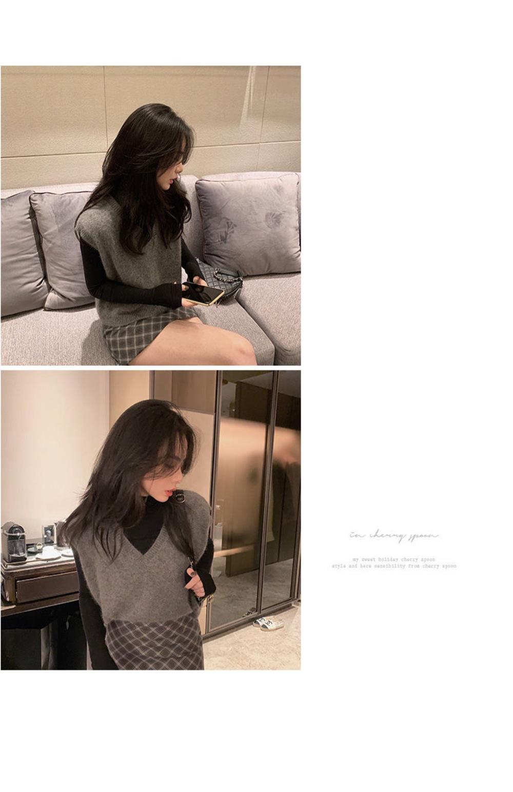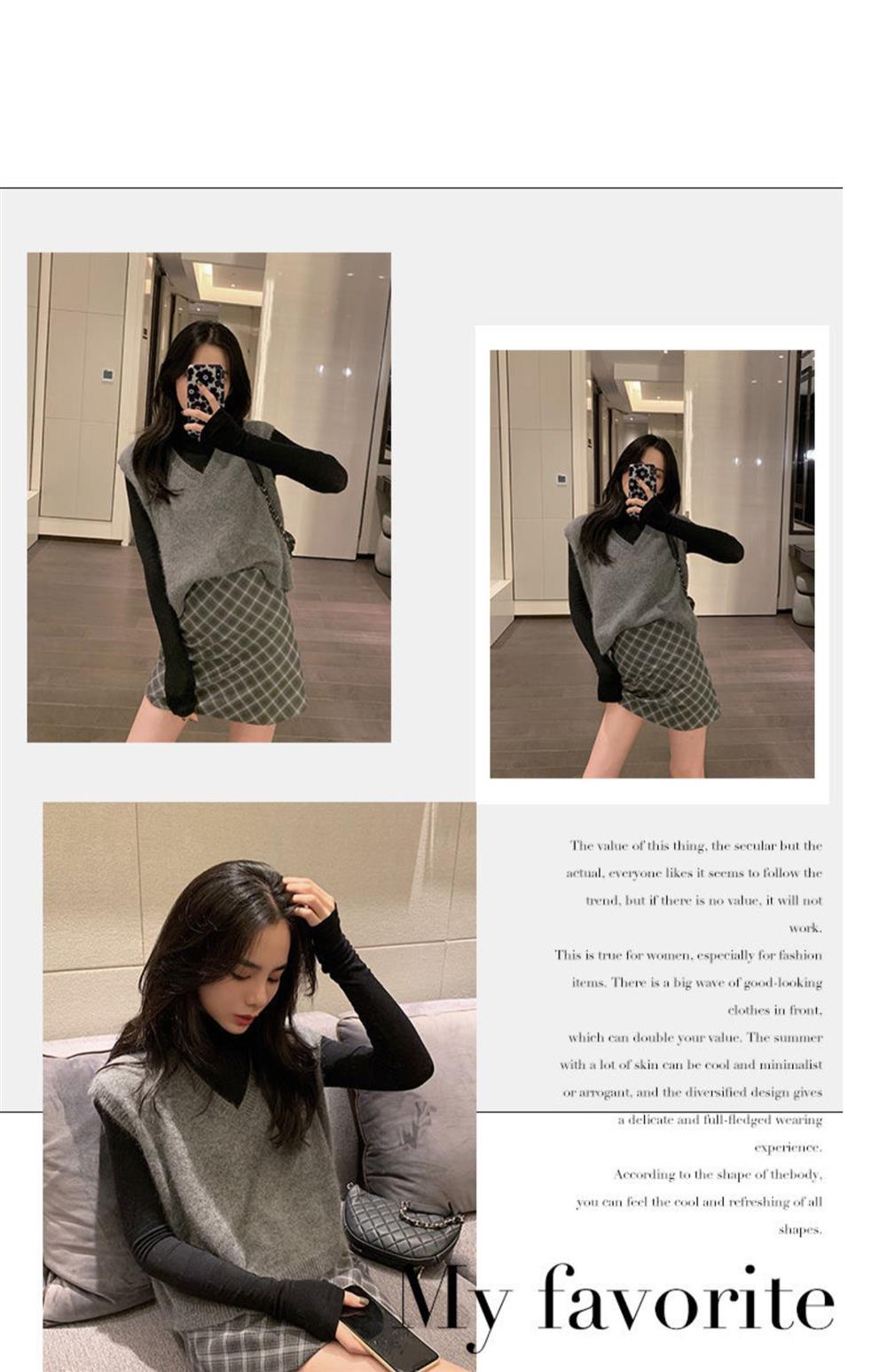 灰色毛衣背心女套頭v領寬松慵懶風新款無袖上衣針織馬甲外穿秋冬