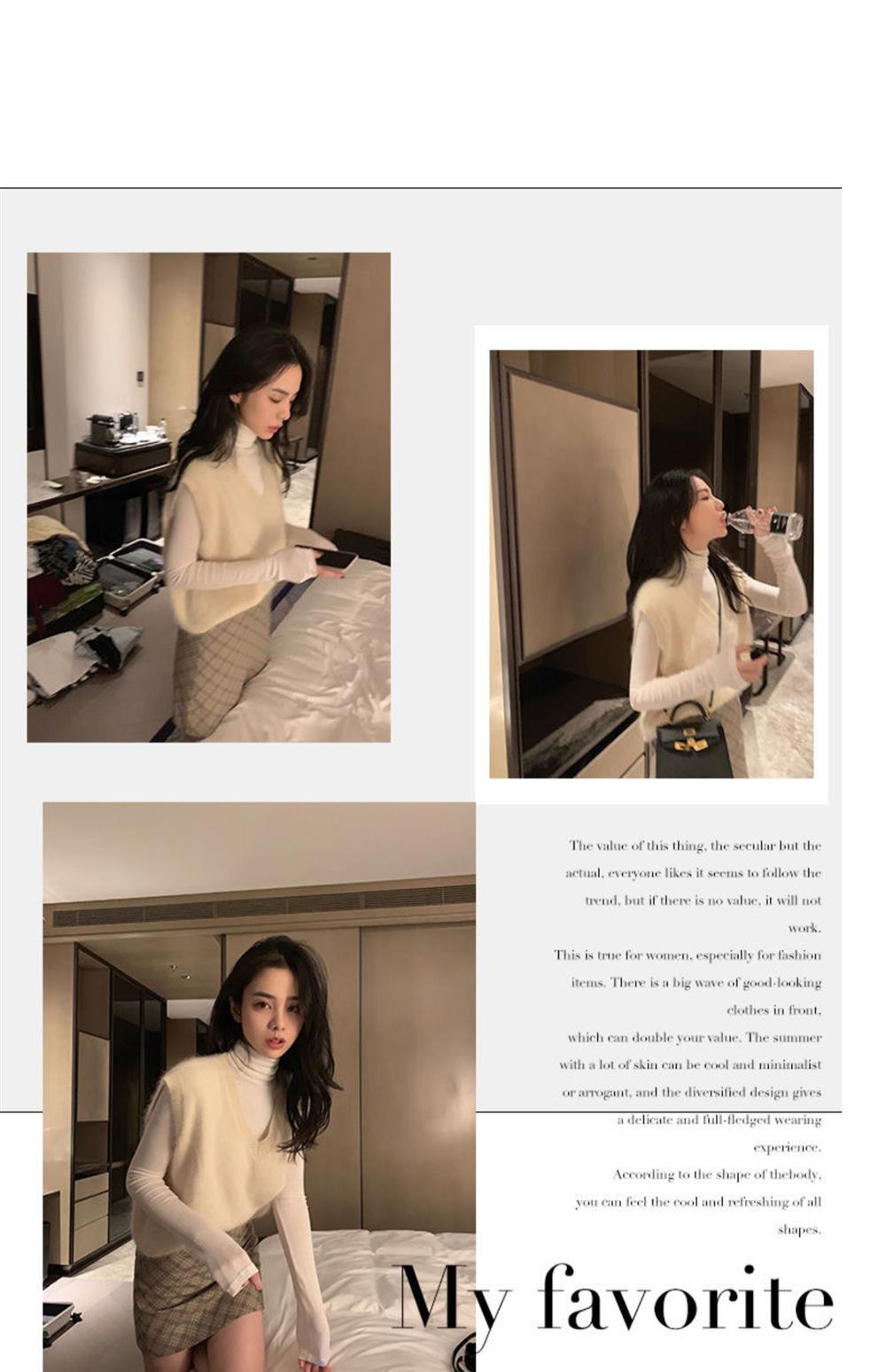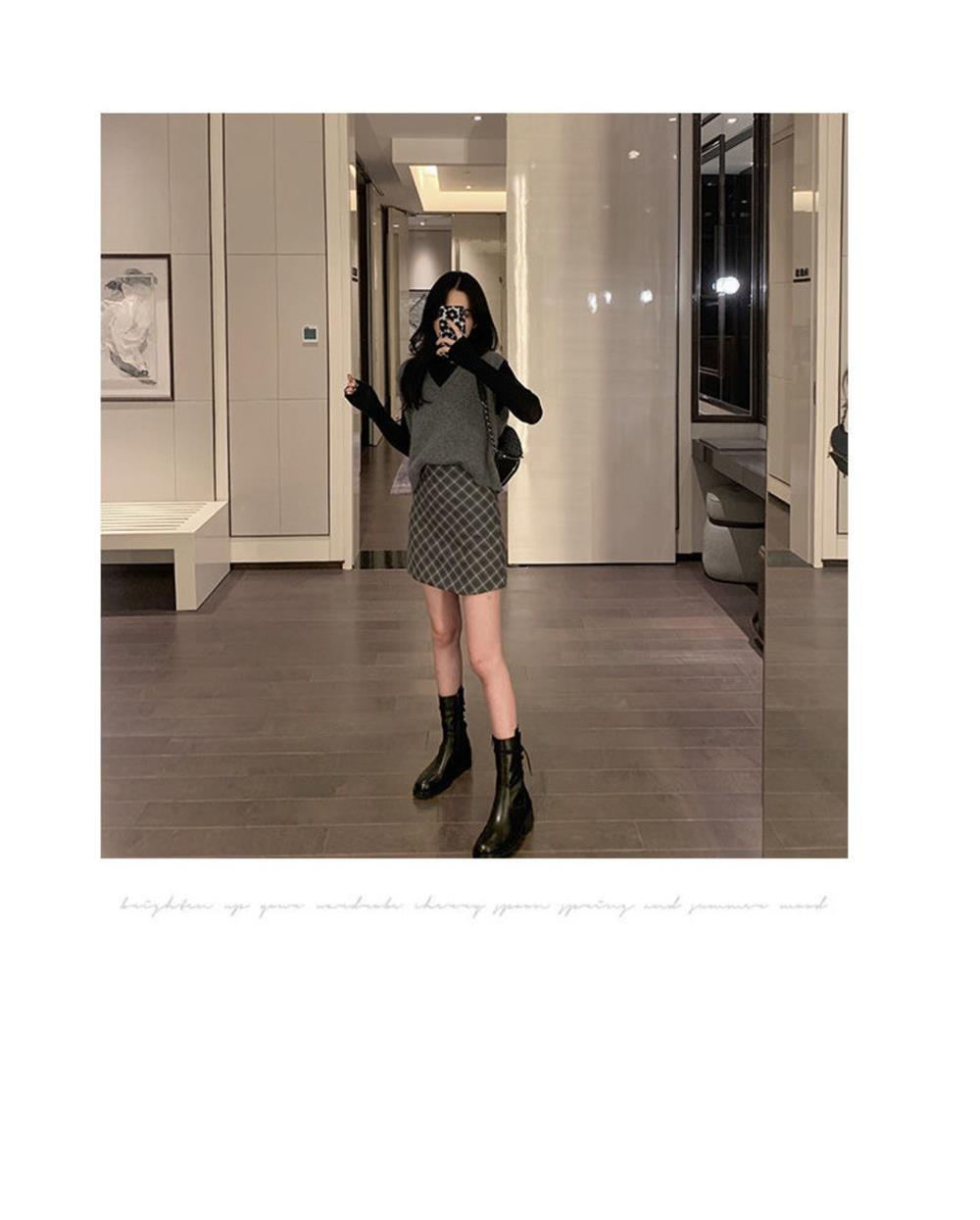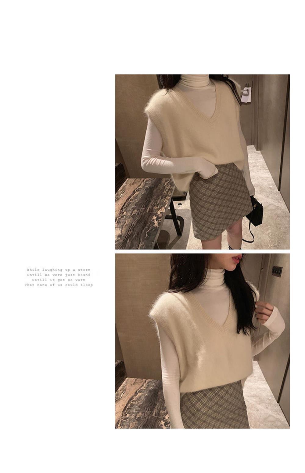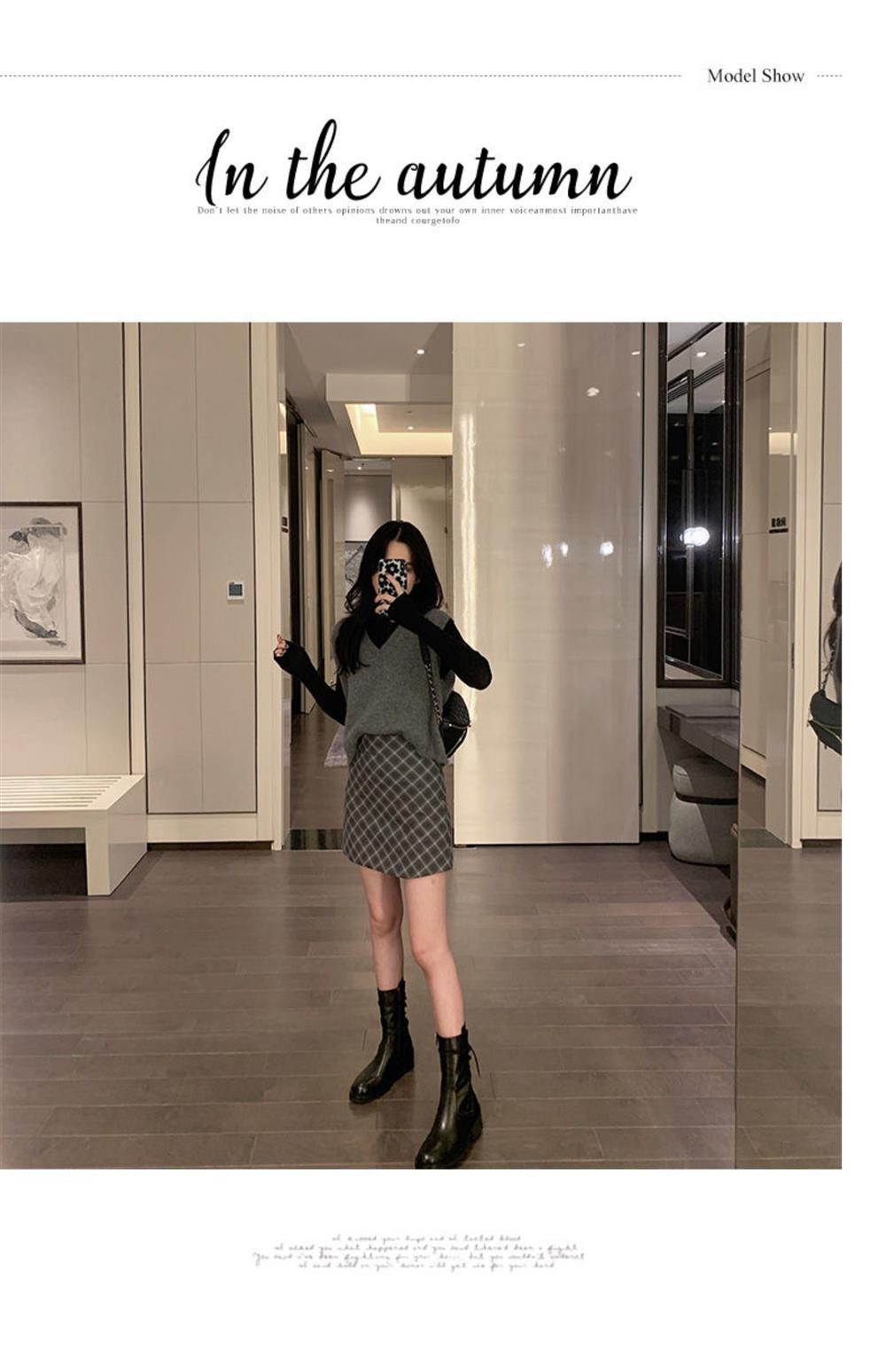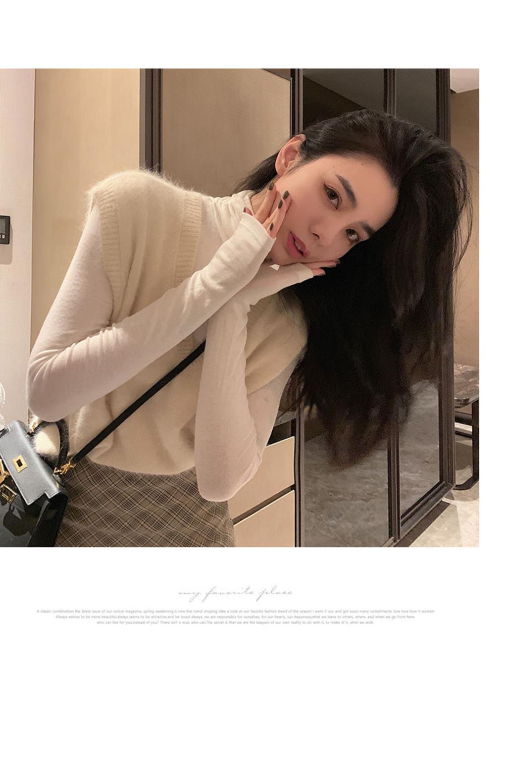 灰色毛衣背心女套頭v領寬松慵懶風新款無袖上衣針織馬甲外穿秋冬