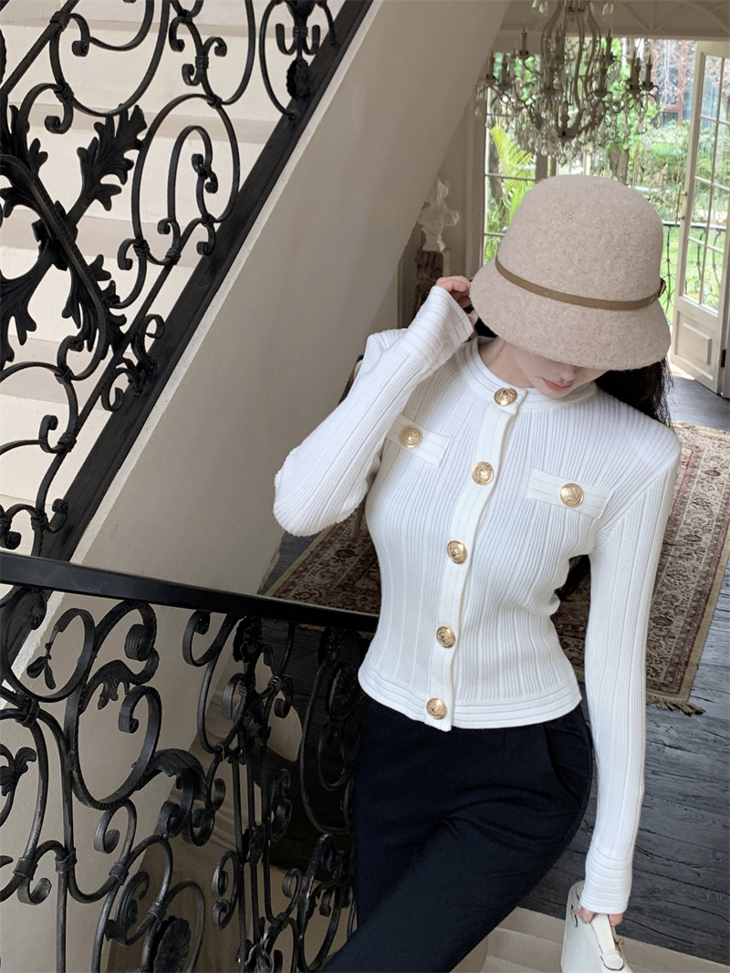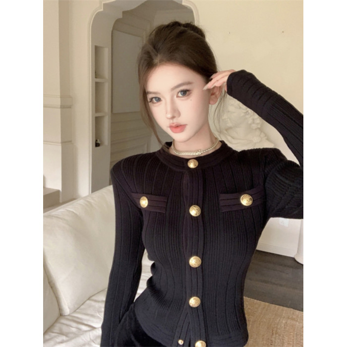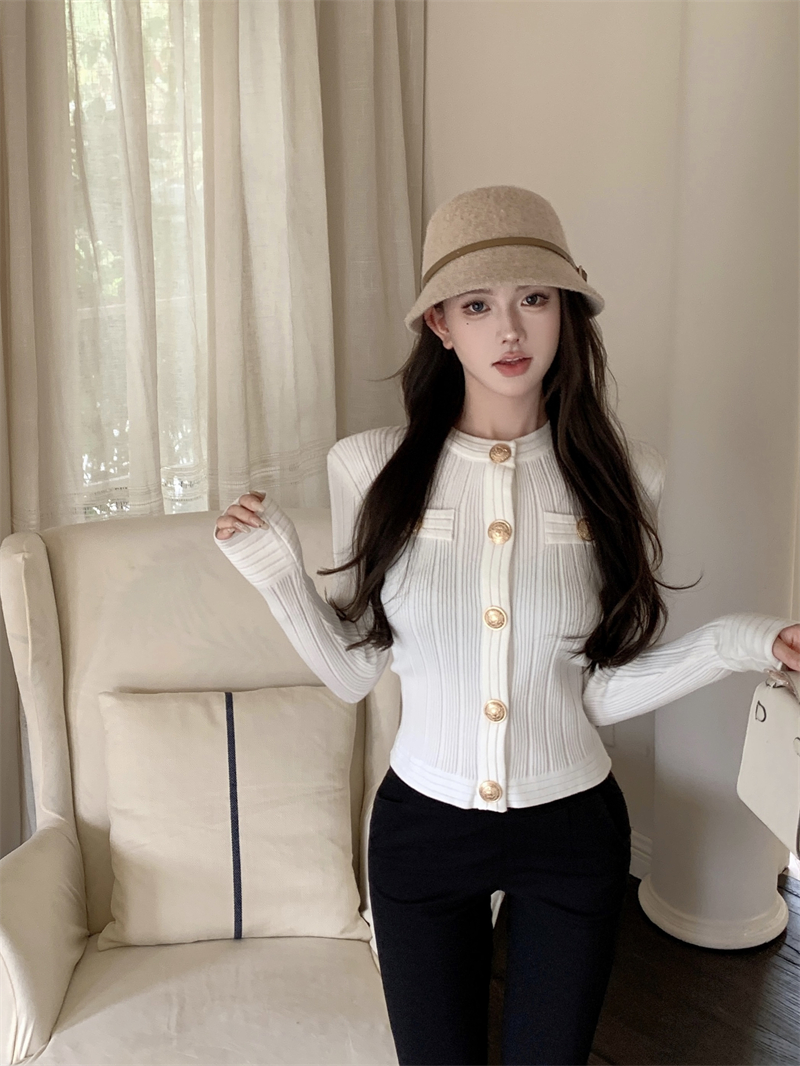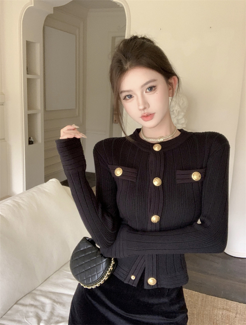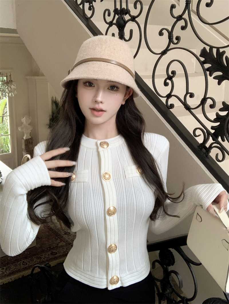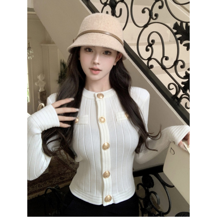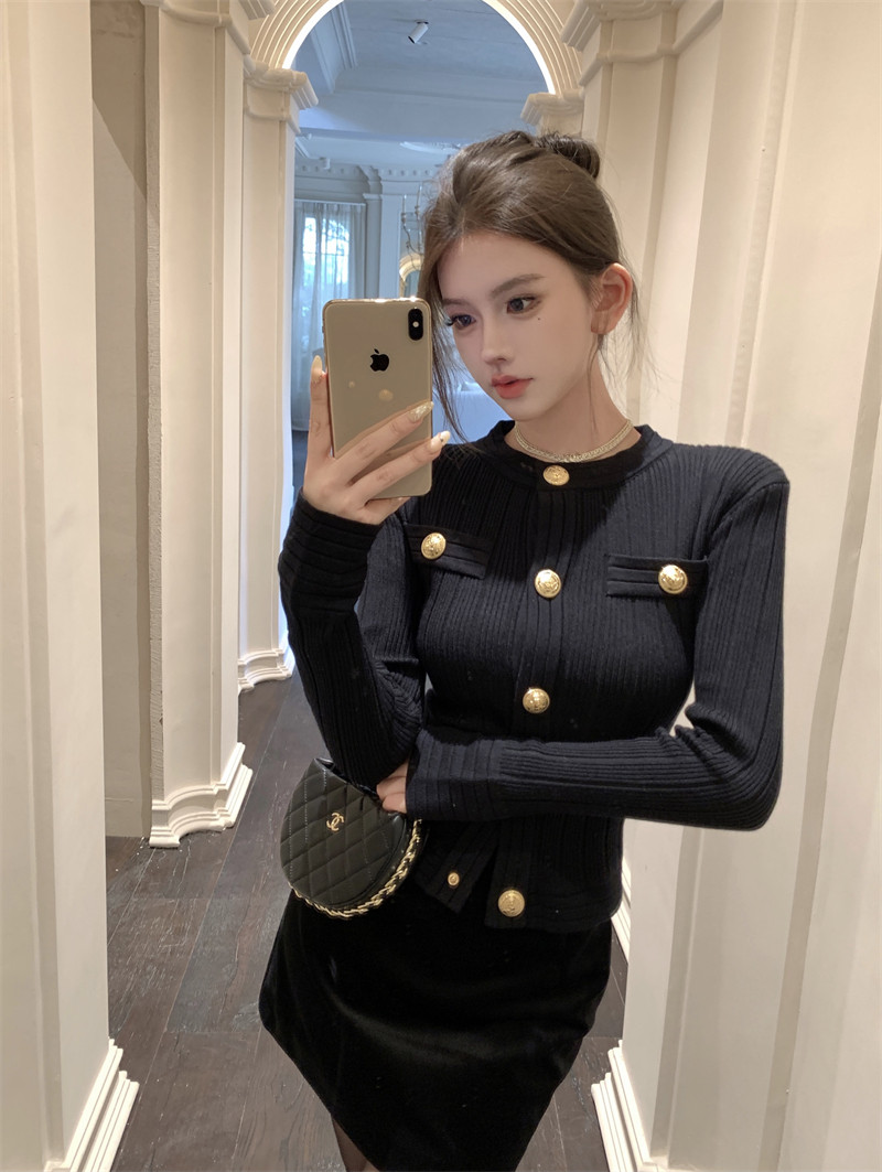 法式小香風高級感毛衣女春秋氣質短款針織開衫外套修身打底衫內搭