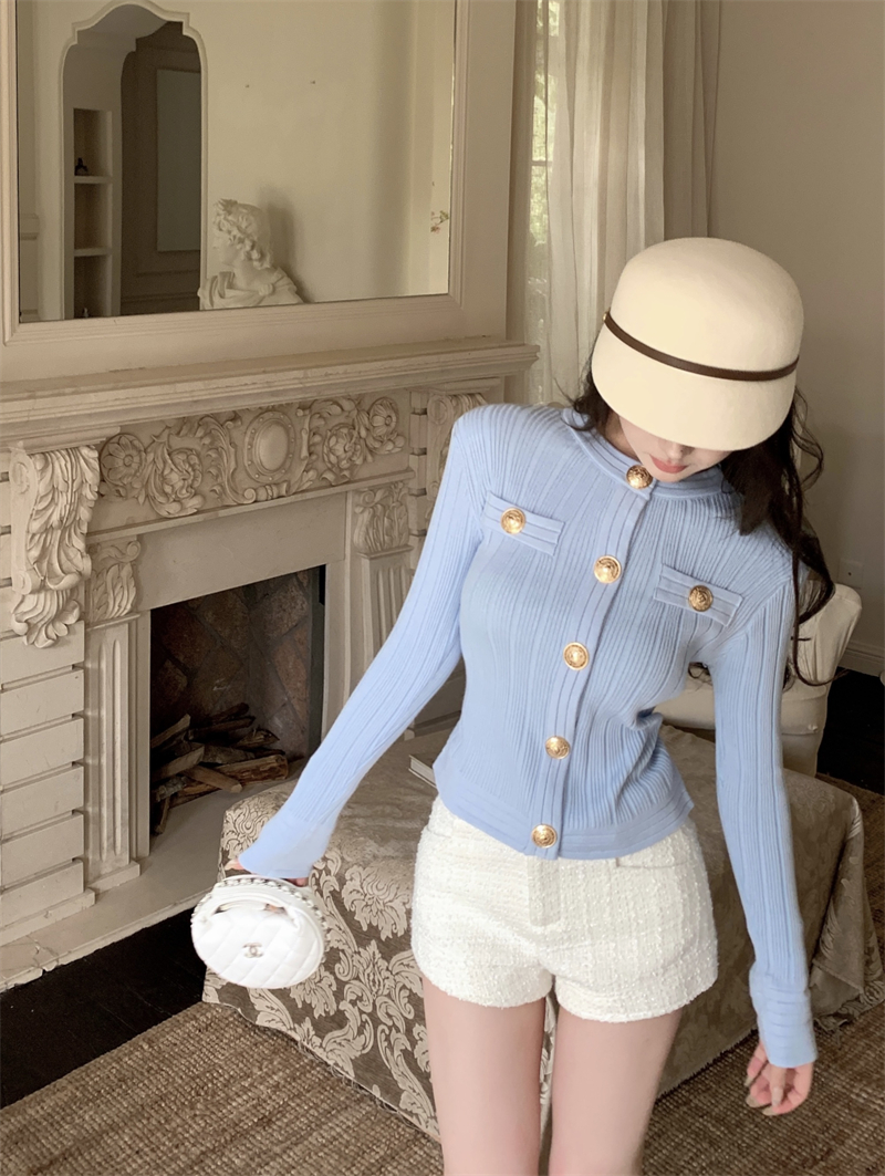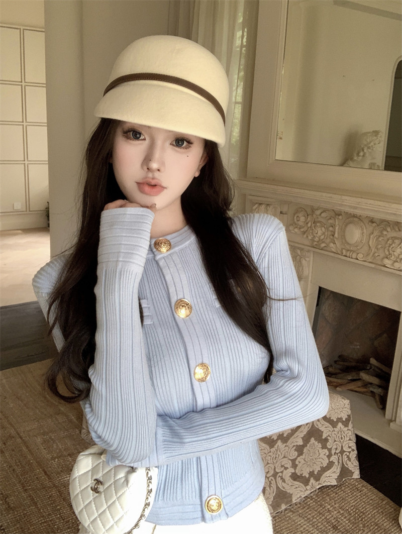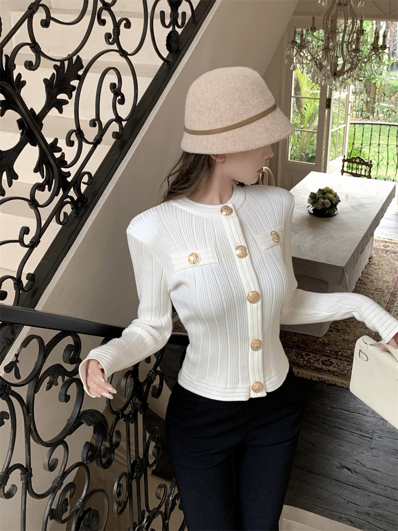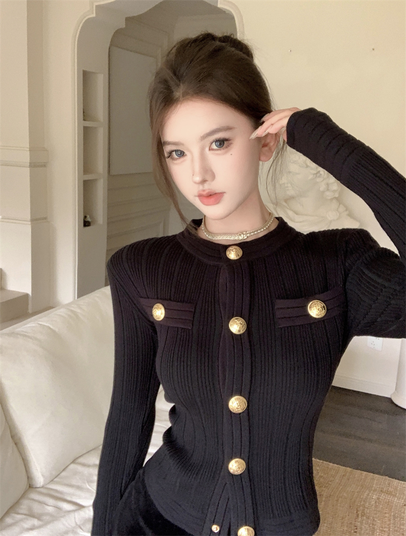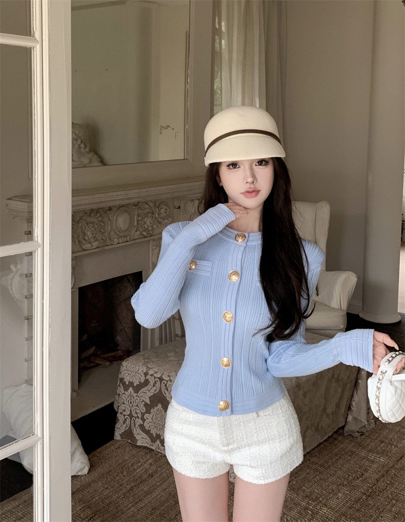 法式小香風高級感毛衣女春秋氣質短款針織開衫外套修身打底衫內搭