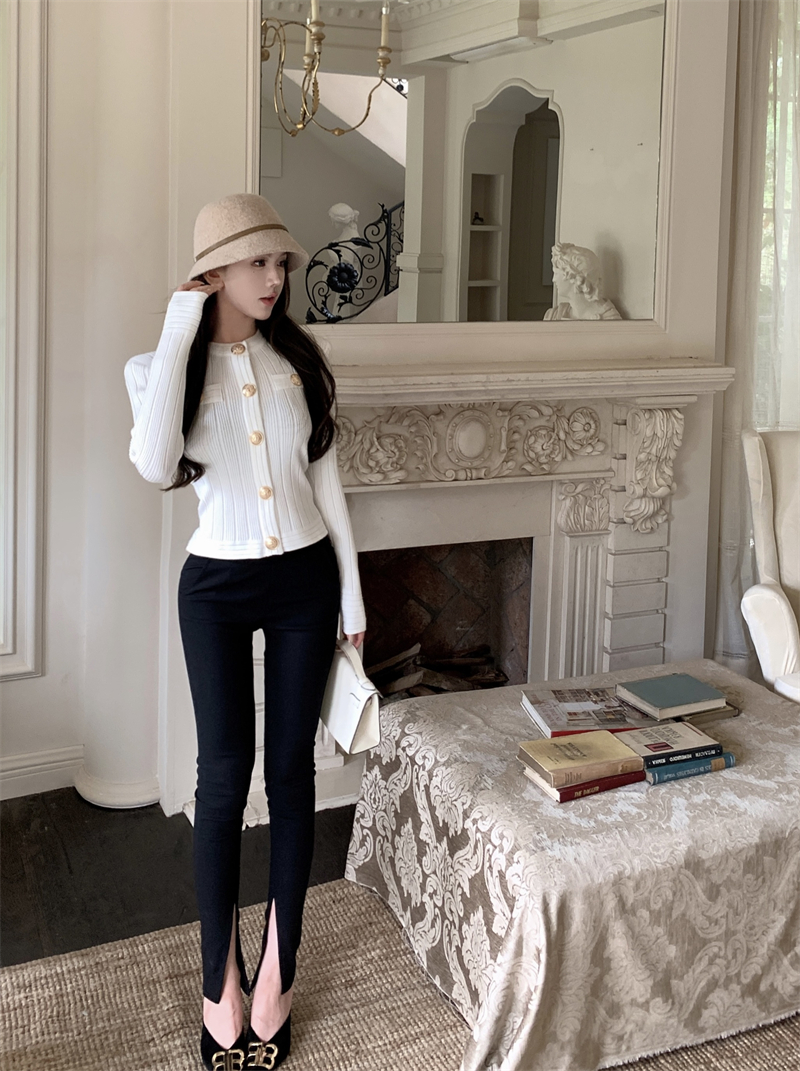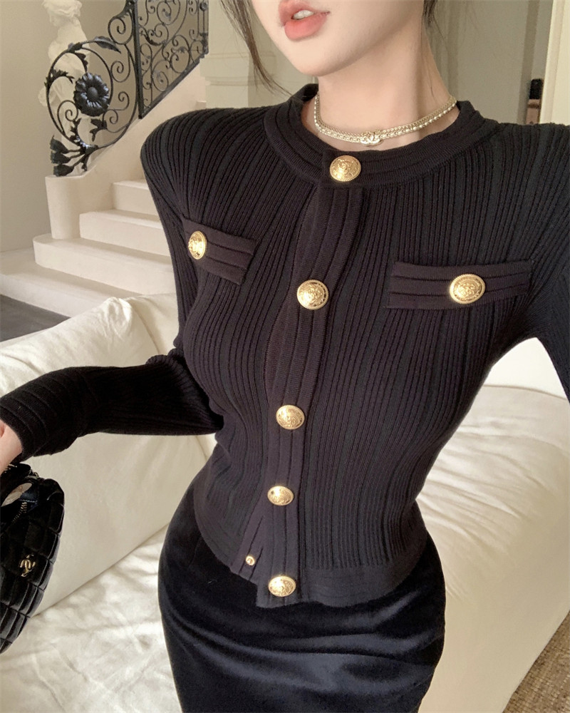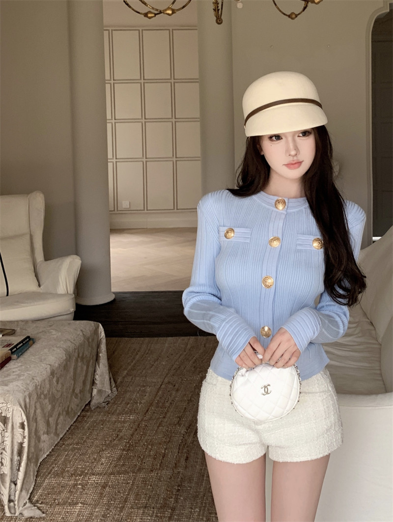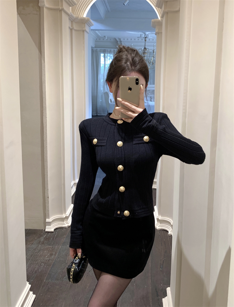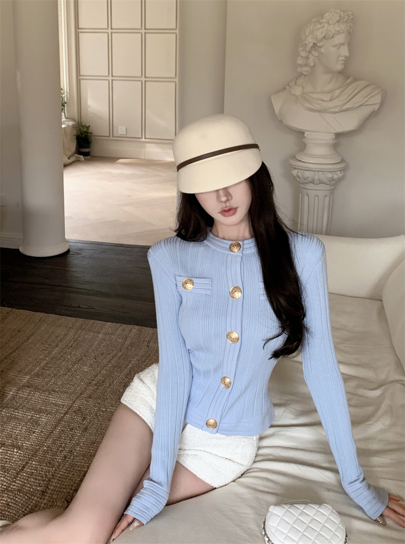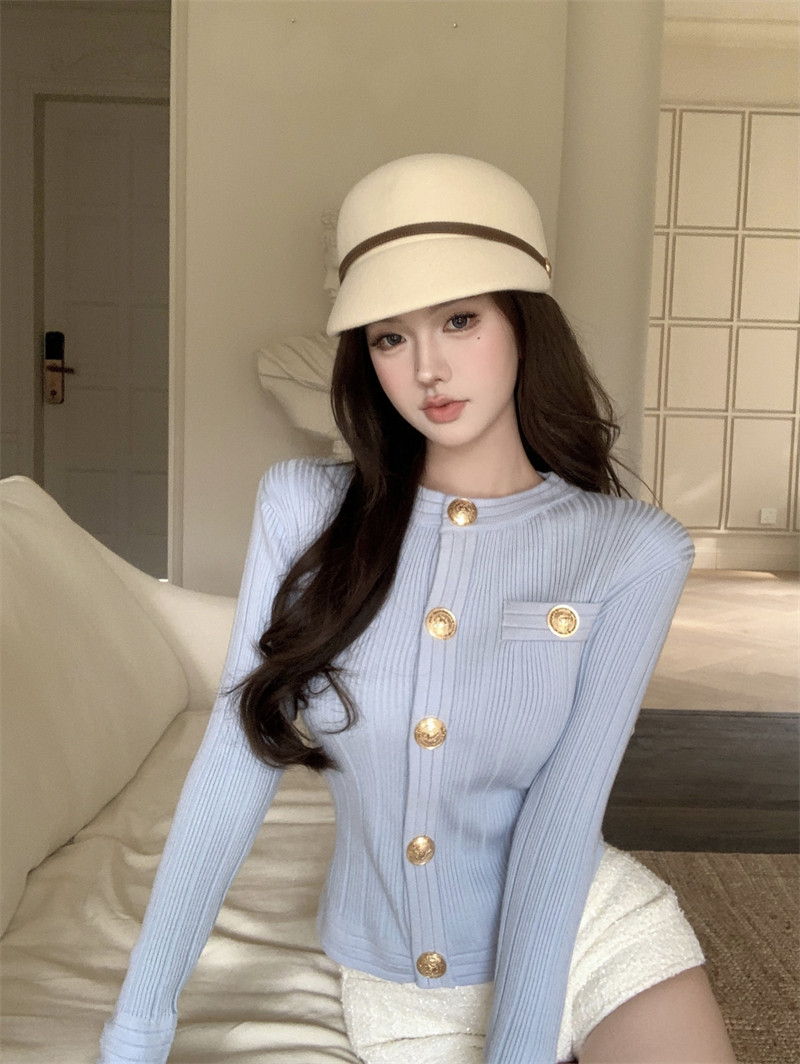 法式小香風高級感毛衣女春秋氣質短款針織開衫外套修身打底衫內搭