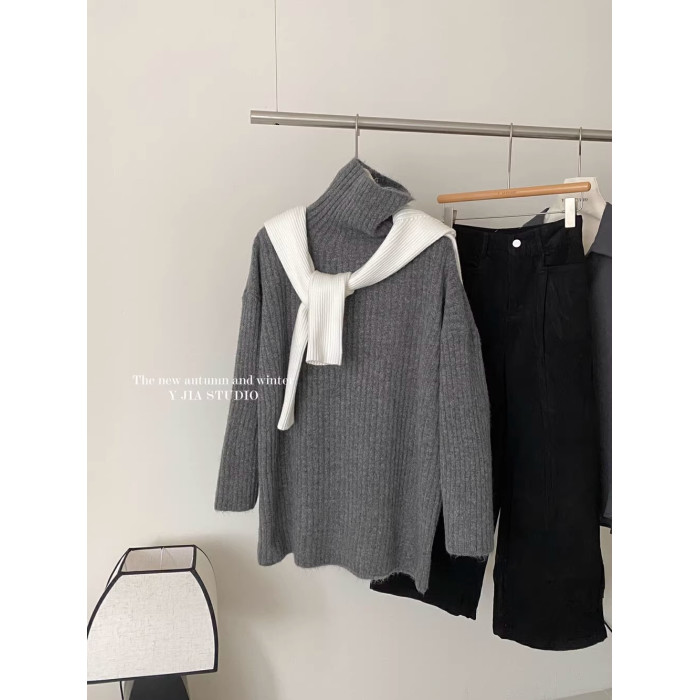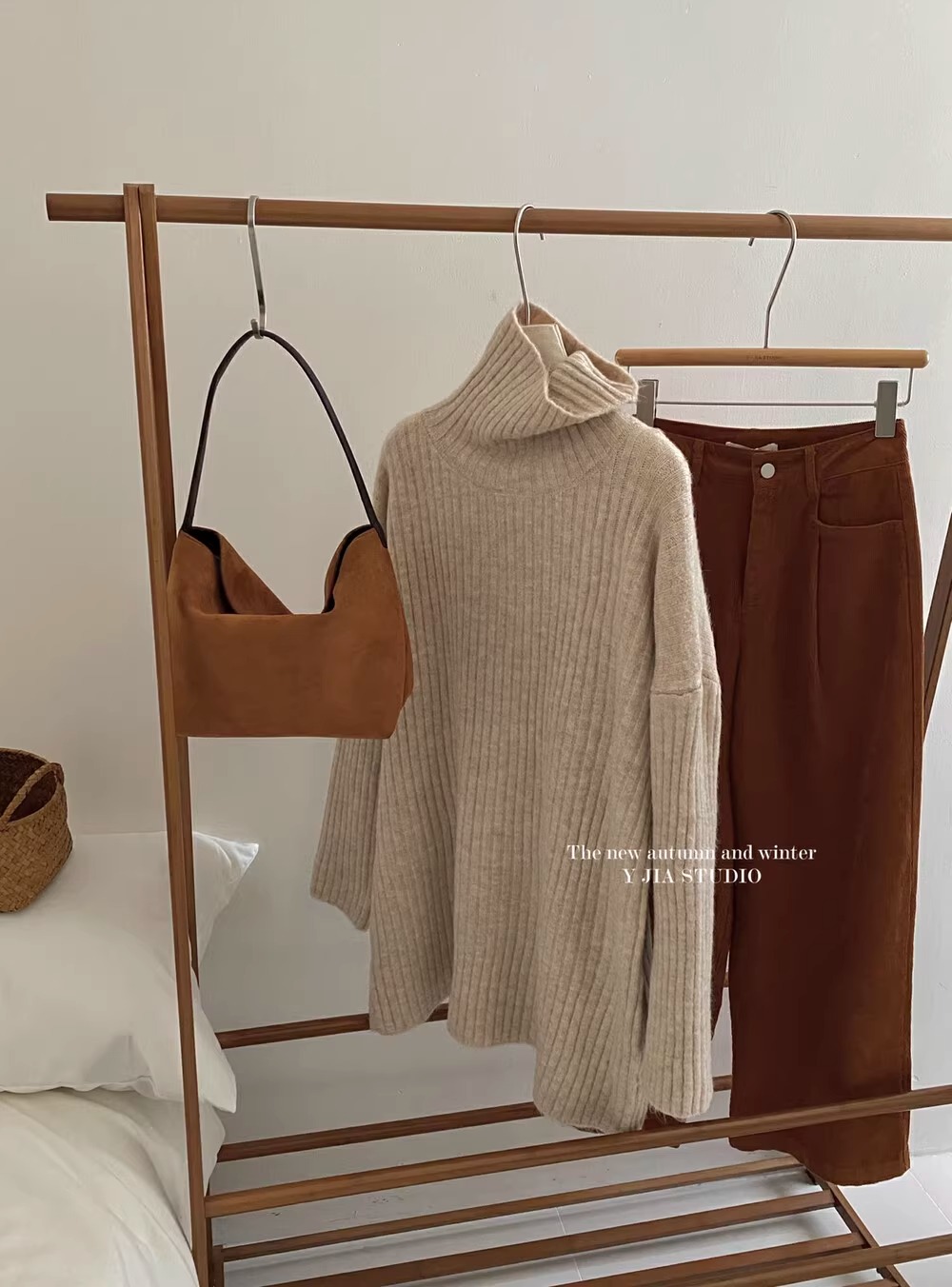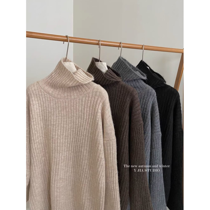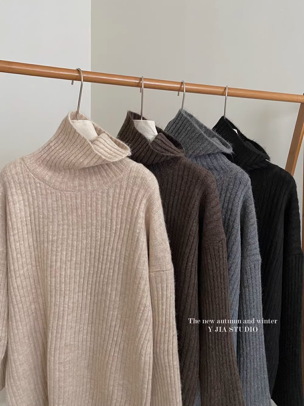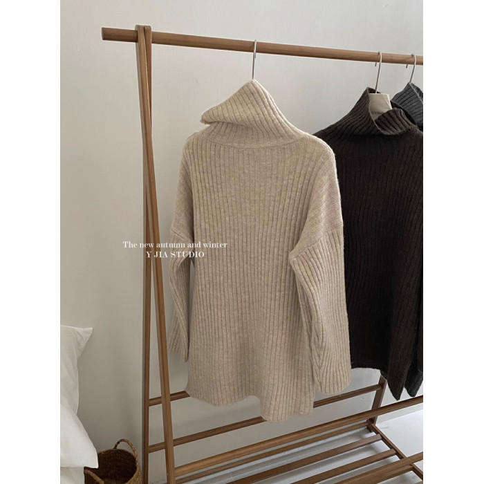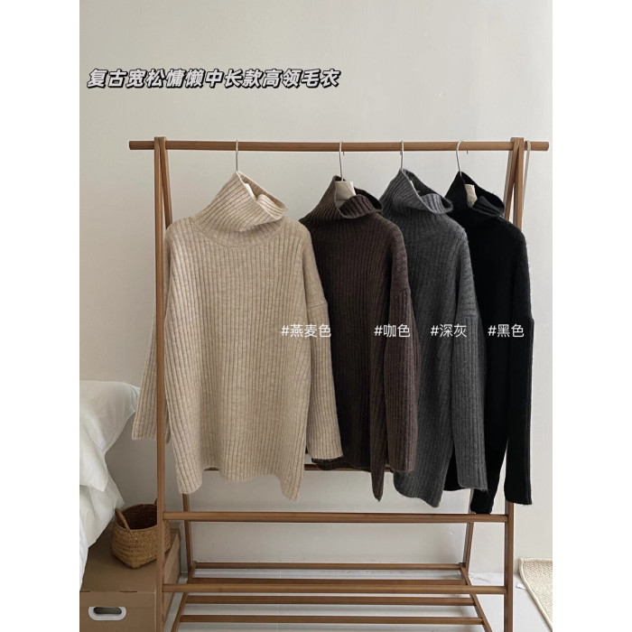 復古寬松慵懶風高領保暖毛衣女秋冬新款中長款內搭針織打底衫上衣