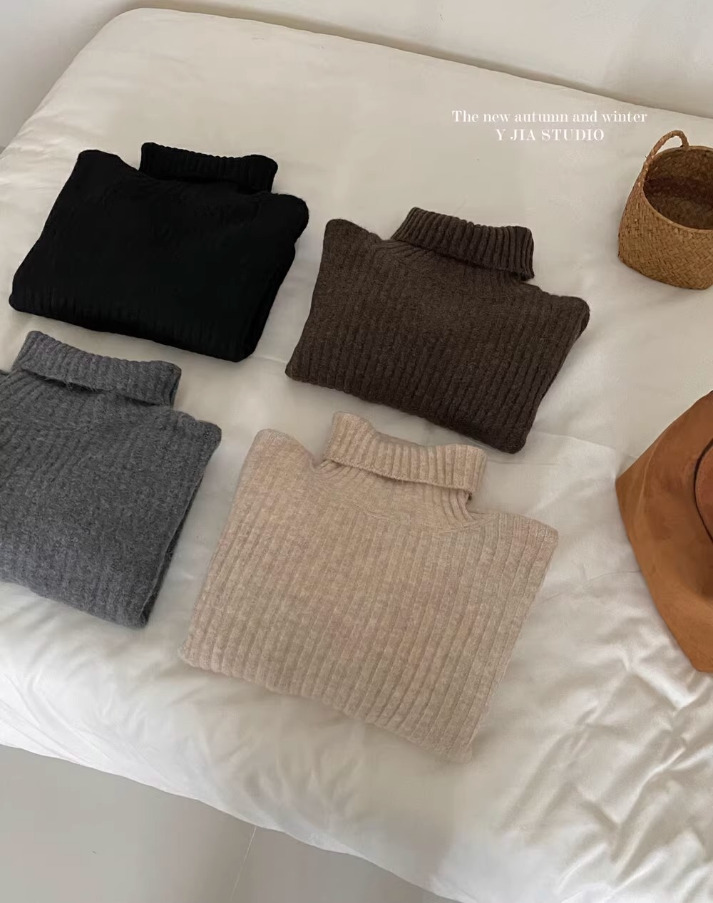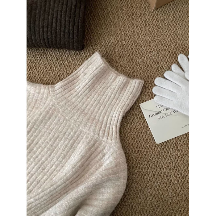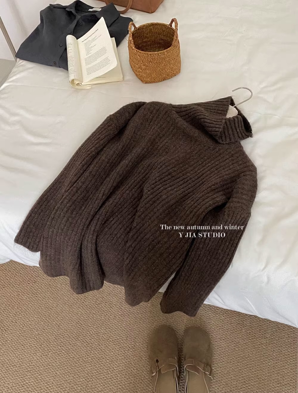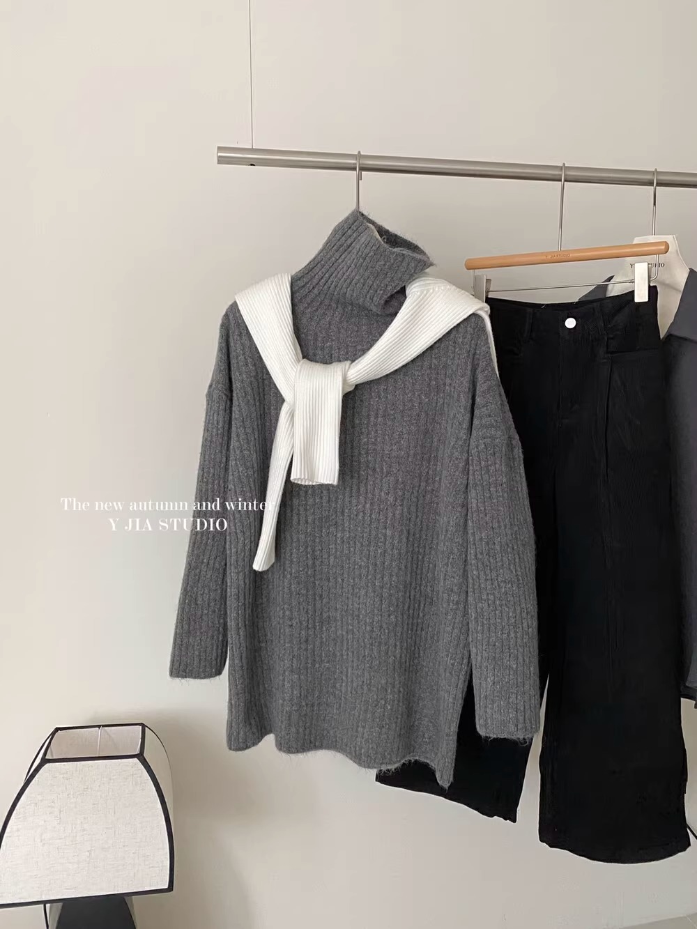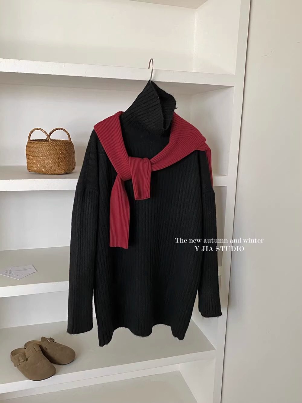 復古寬松慵懶風高領保暖毛衣女秋冬新款中長款內搭針織打底衫上衣