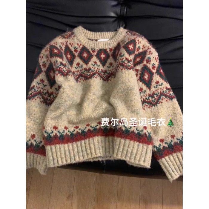 今年流行的日系費爾島復古毛衣冬季加厚女慵懶高級感寬松內搭秋冬