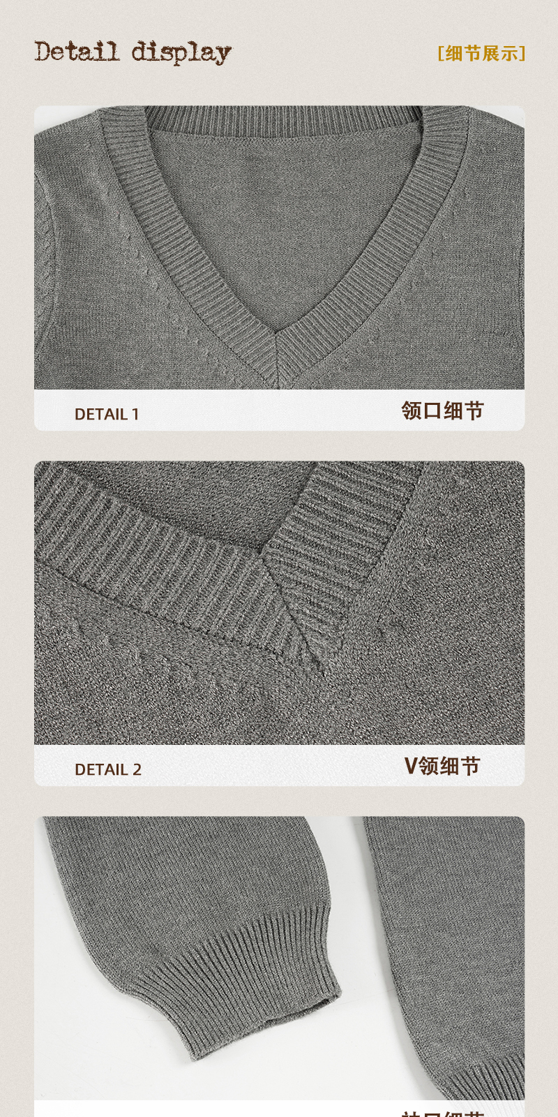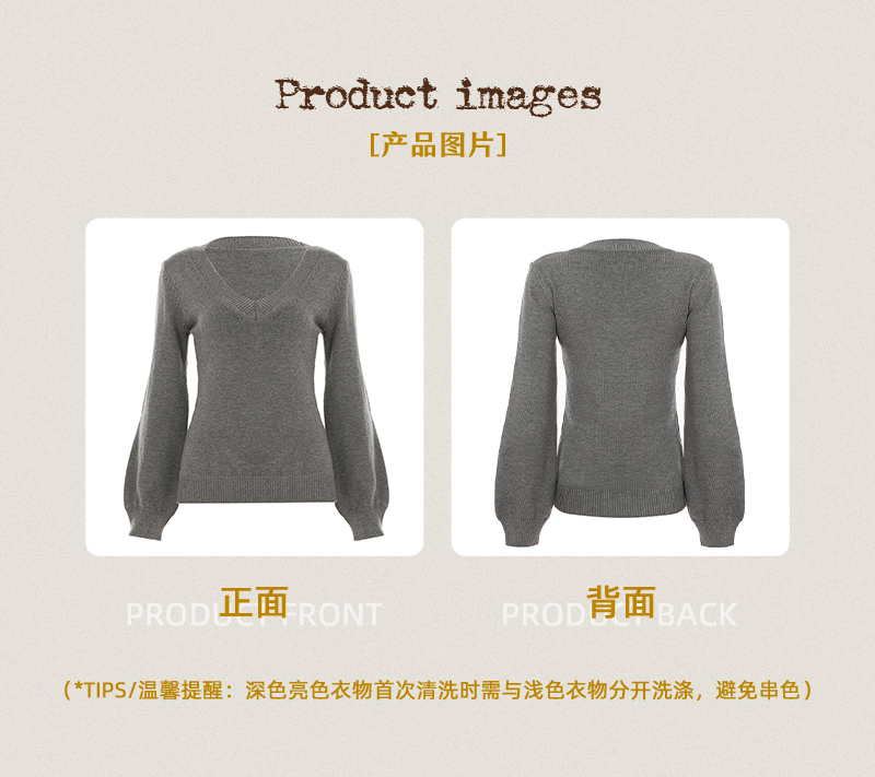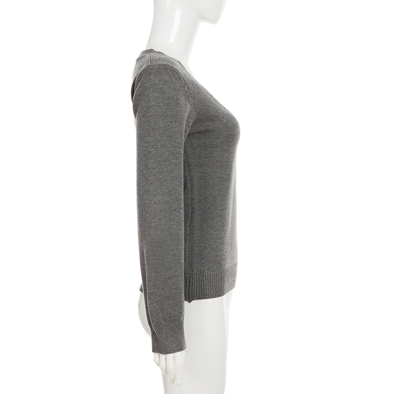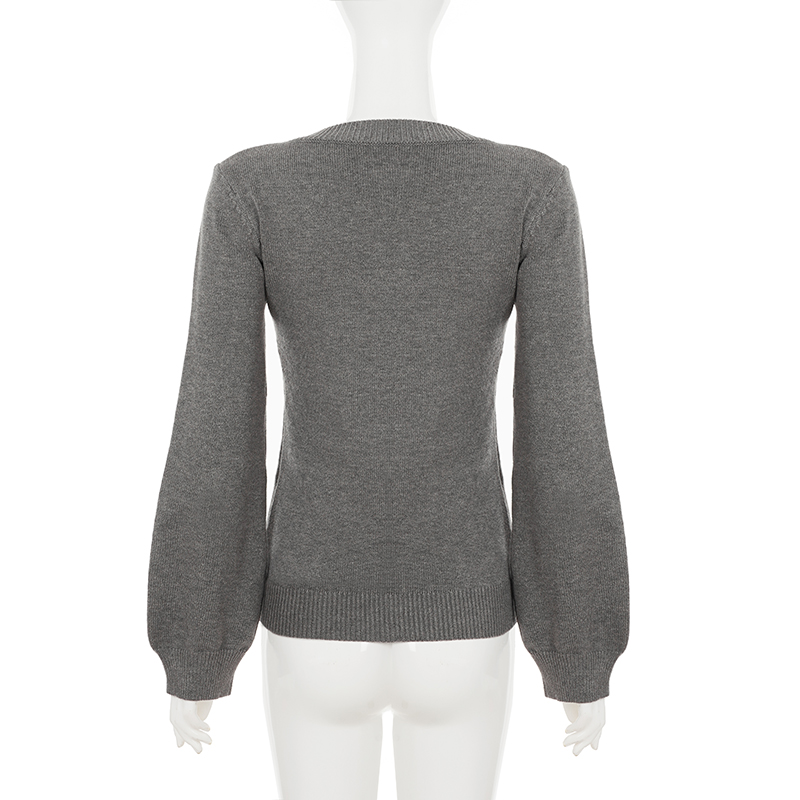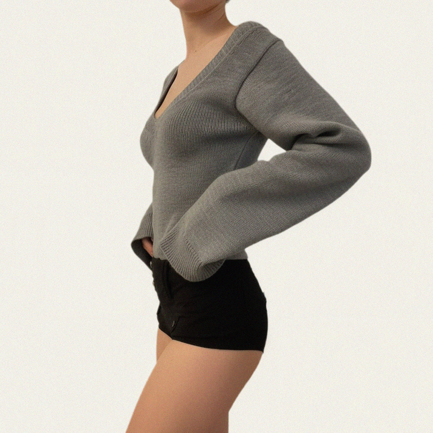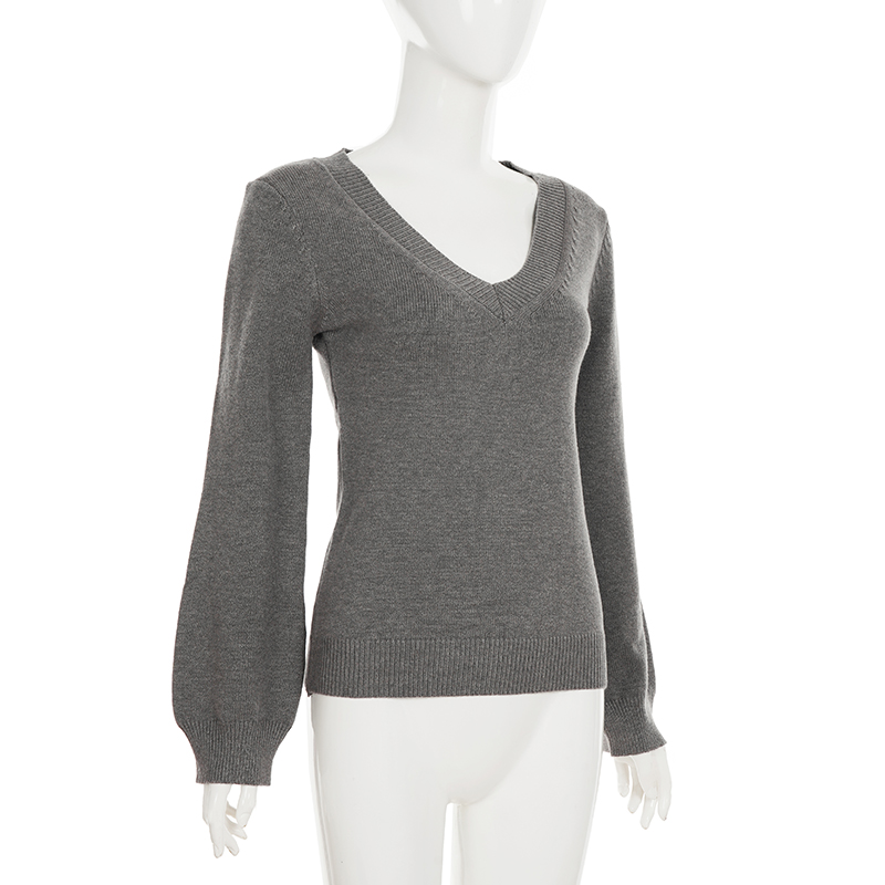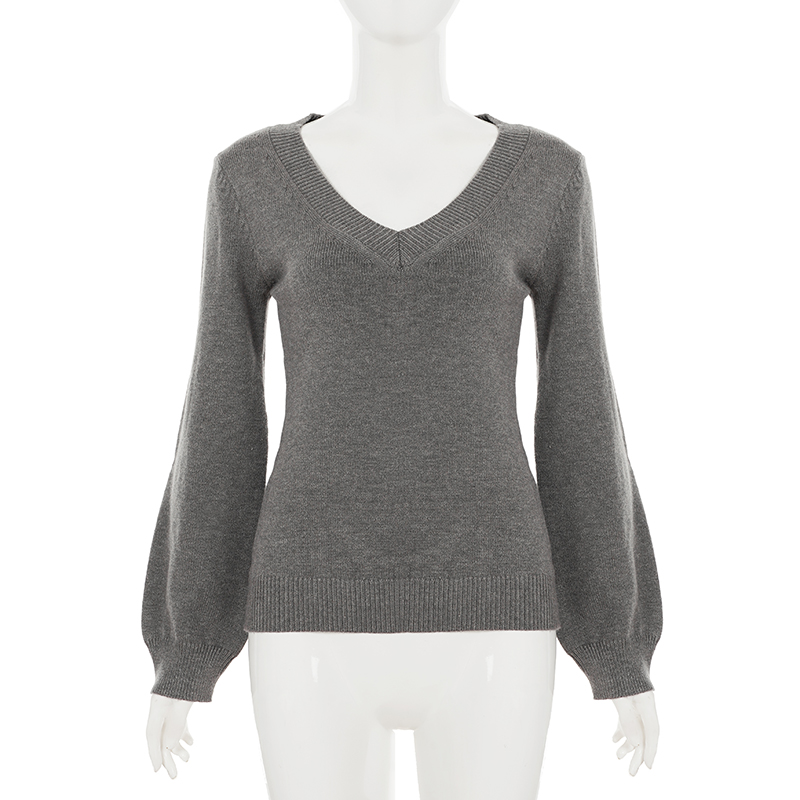 FUNOFF 美式復古灰色V領低胸毛織上衣2025秋性感純色收腰內搭長袖
