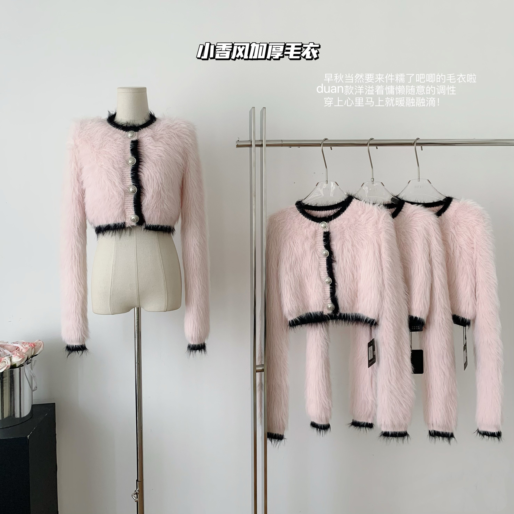 純欲小野貓冬季小香風海馬毛加厚毛衣女軟糯慵懶風百搭針織衫上衣