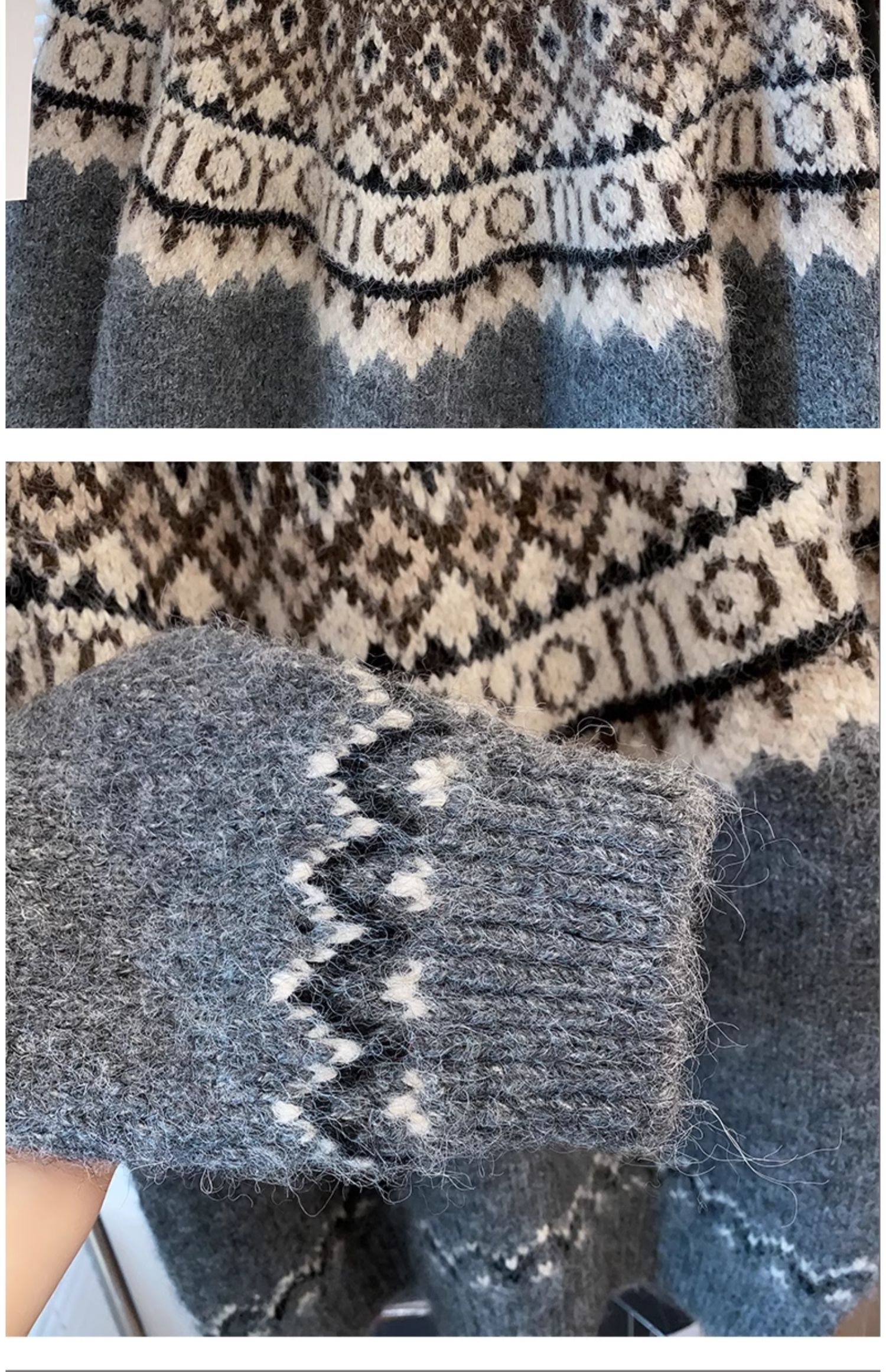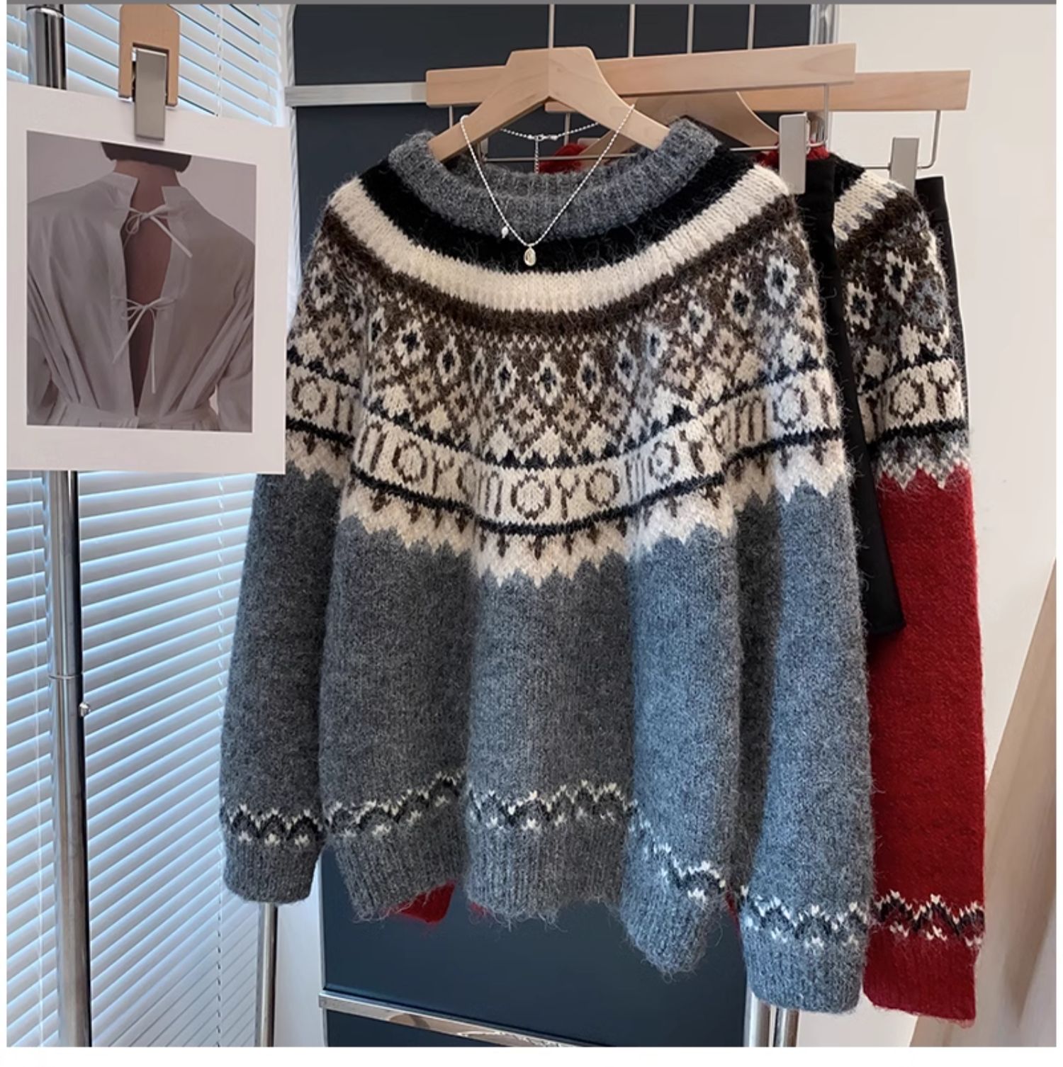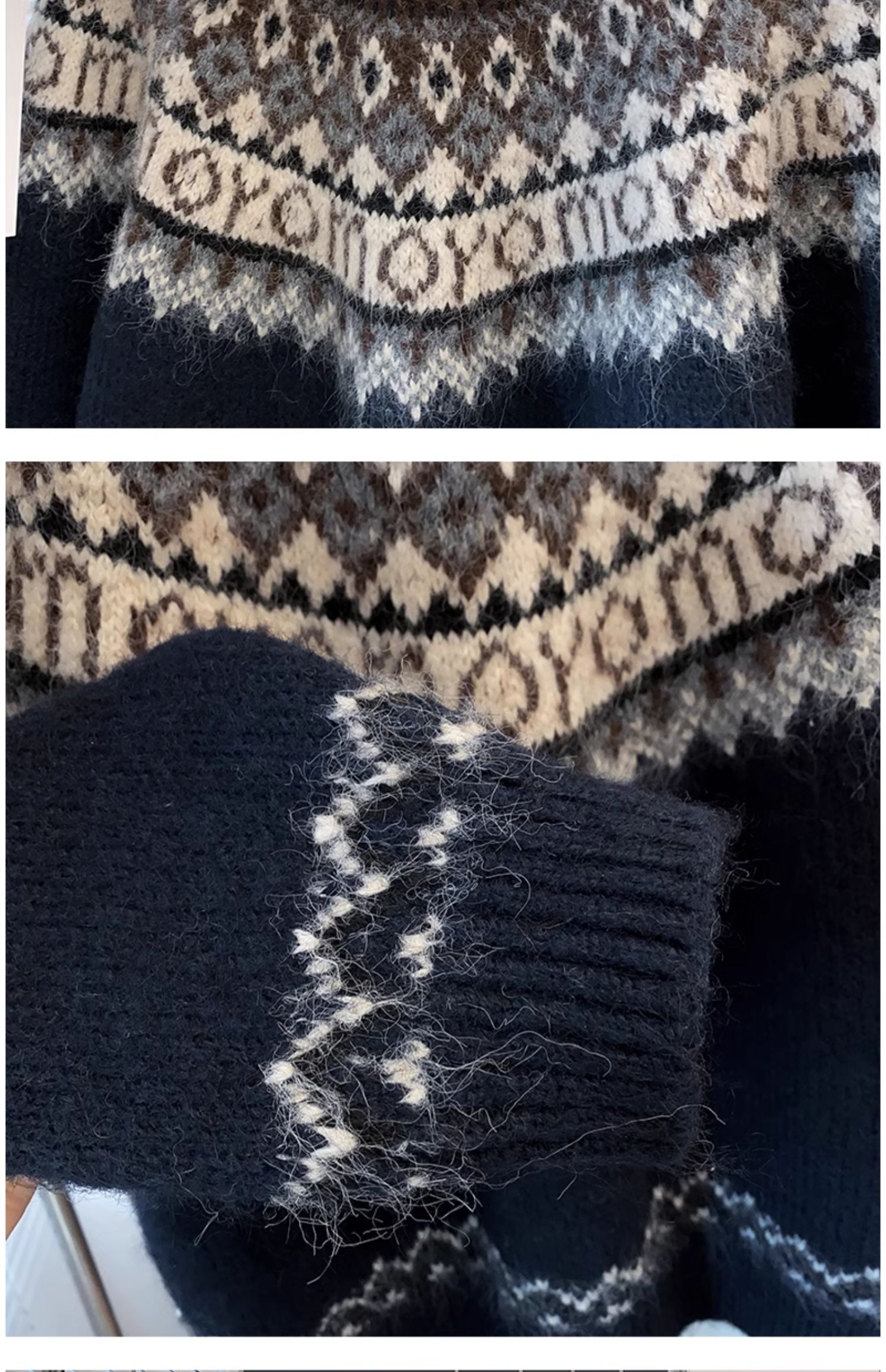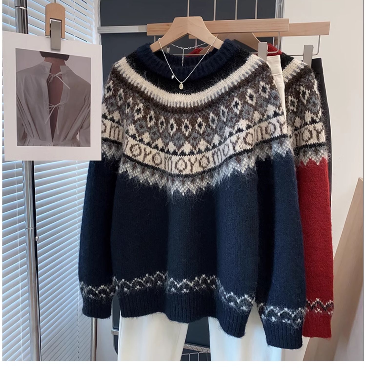 圓領費爾島毛衣女加厚打底衫2025秋冬新款套頭寬松針織衫內搭上衣