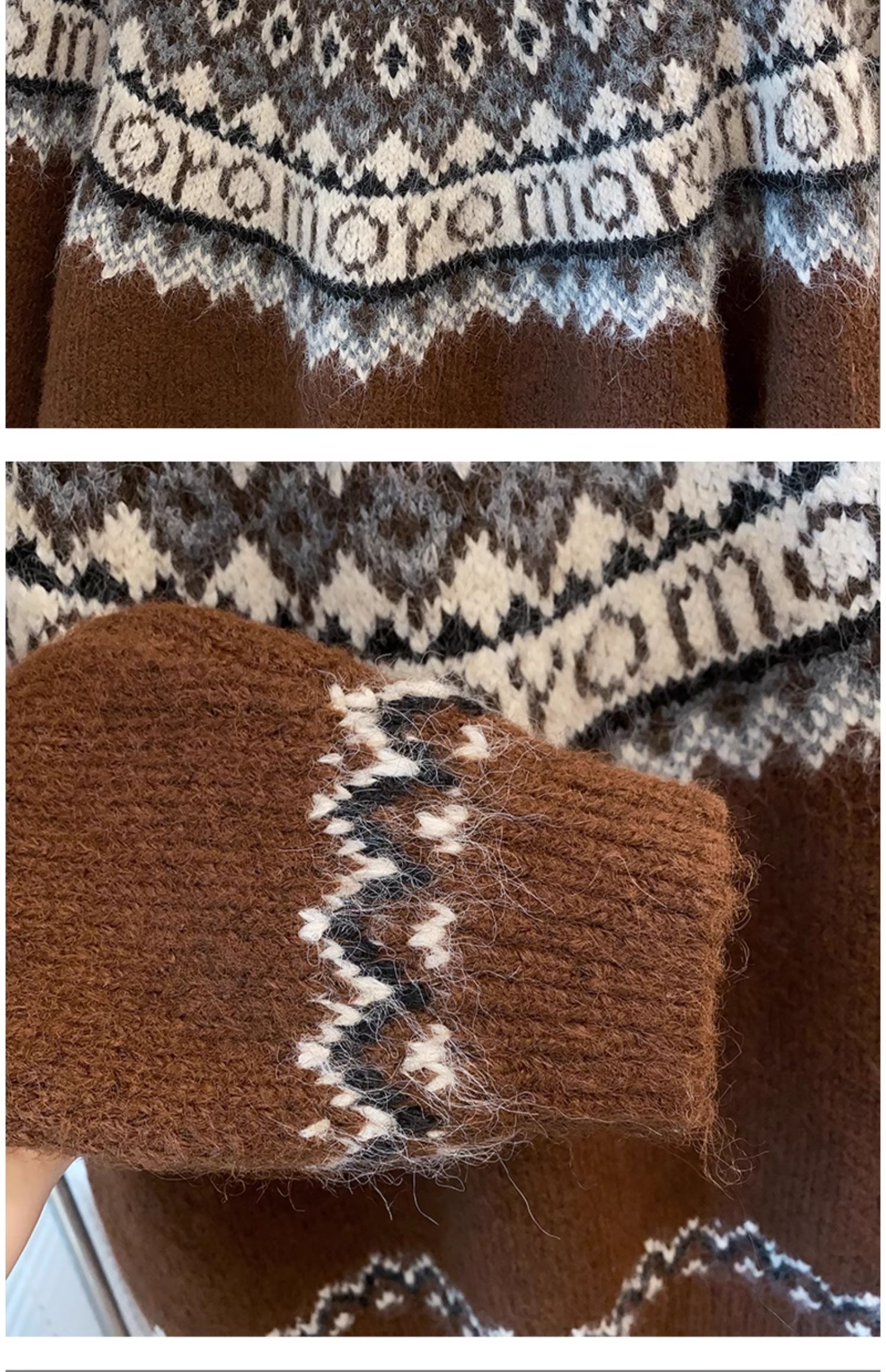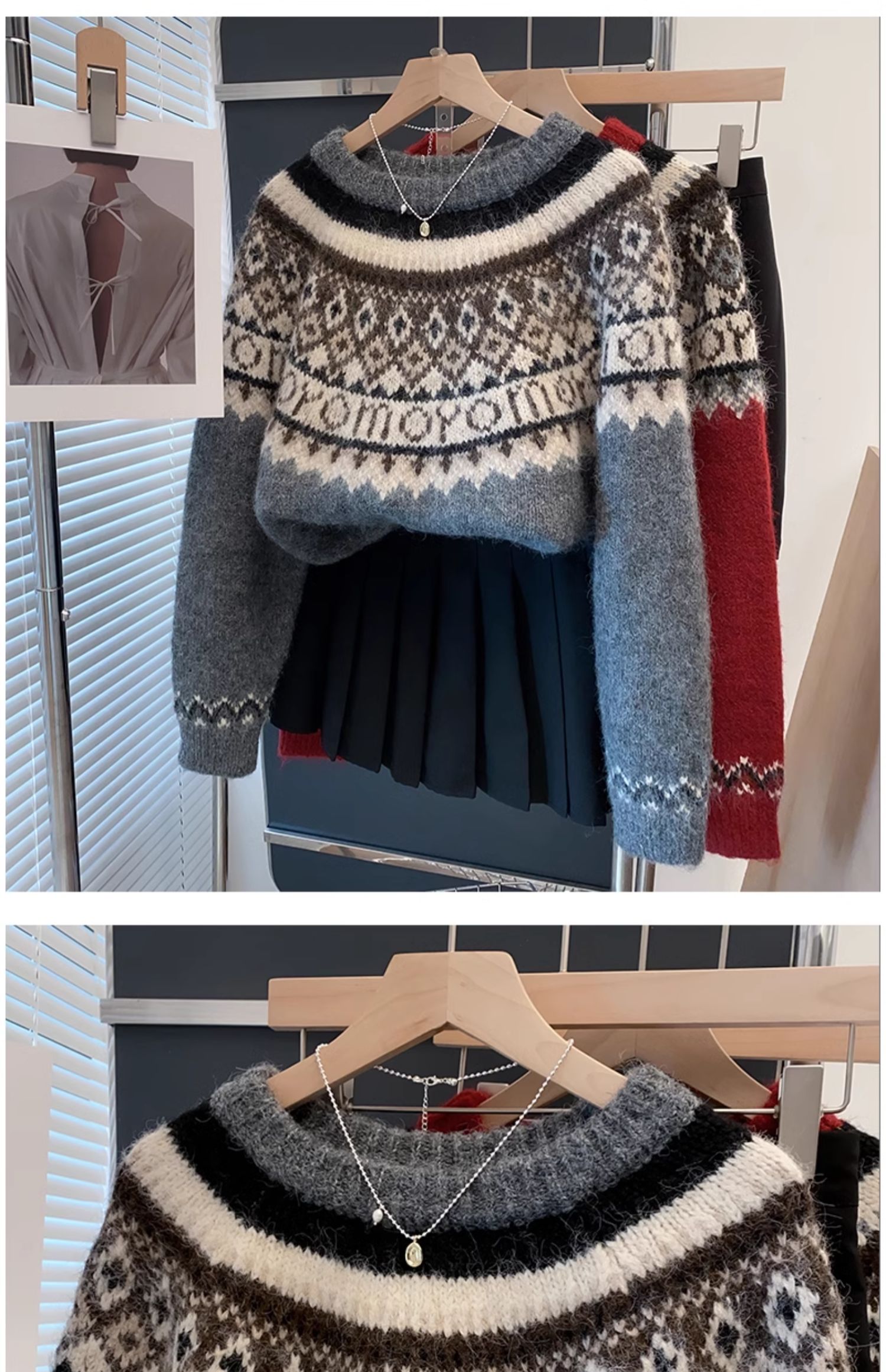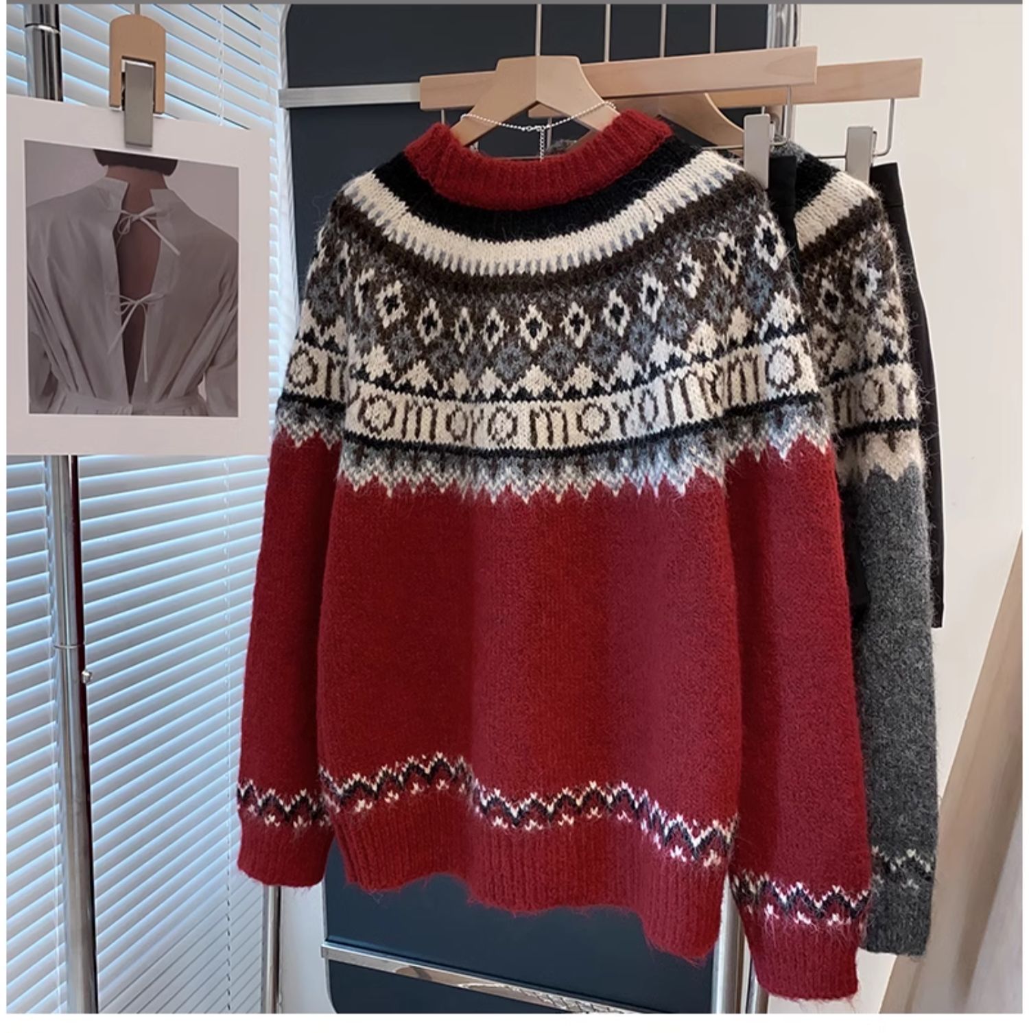 圓領費爾島毛衣女加厚打底衫2025秋冬新款套頭寬松針織衫內搭上衣