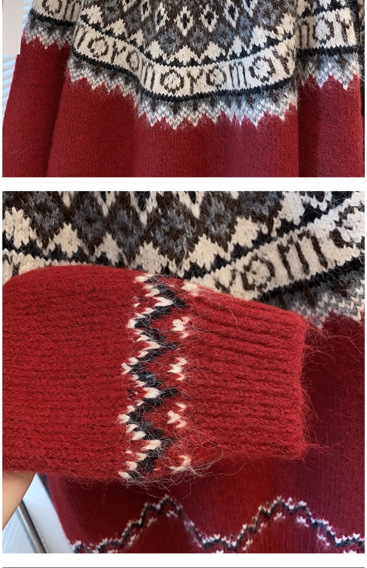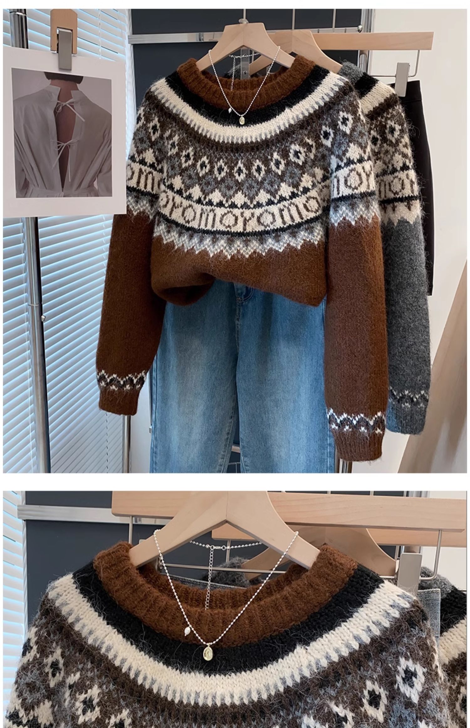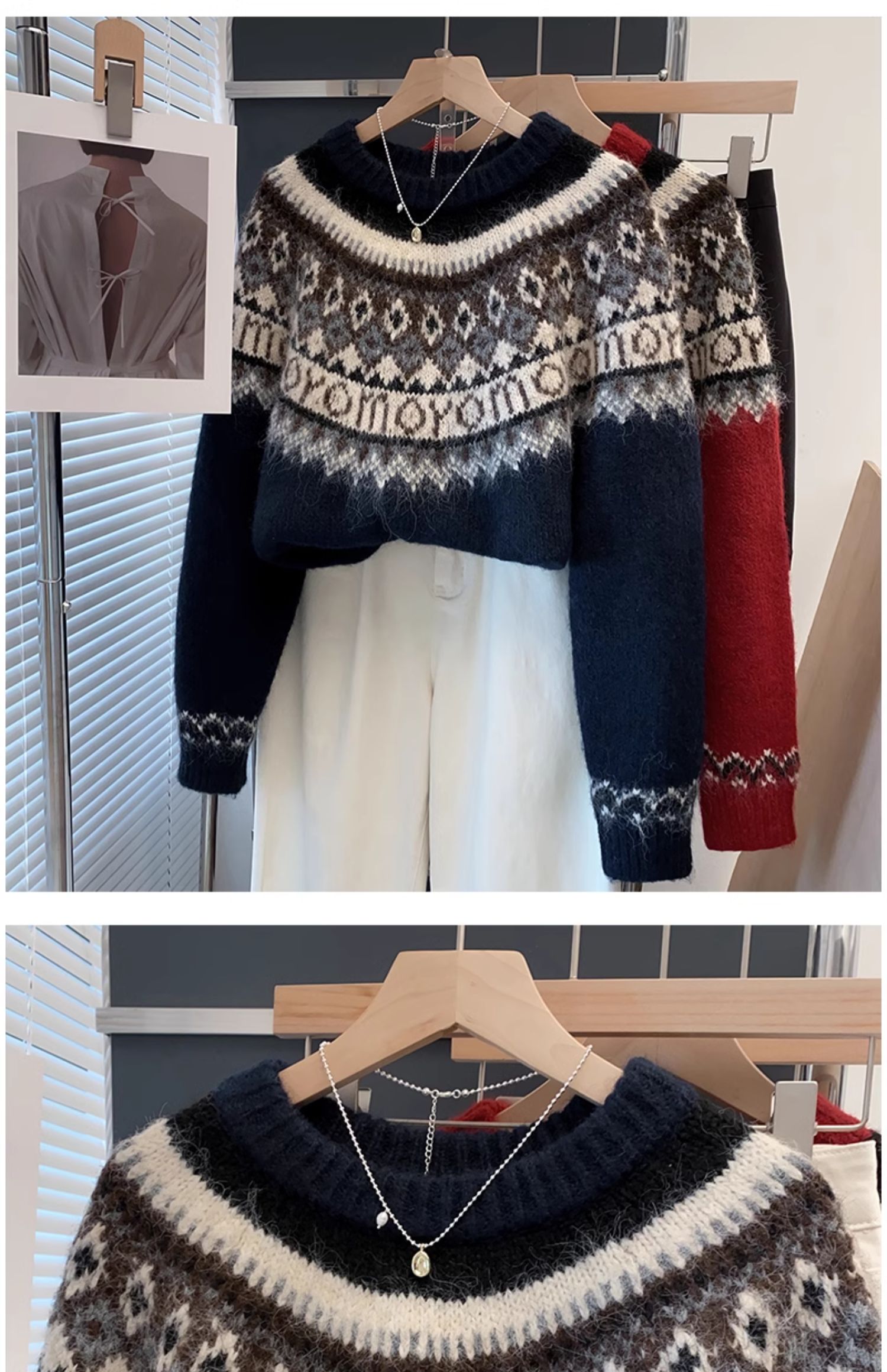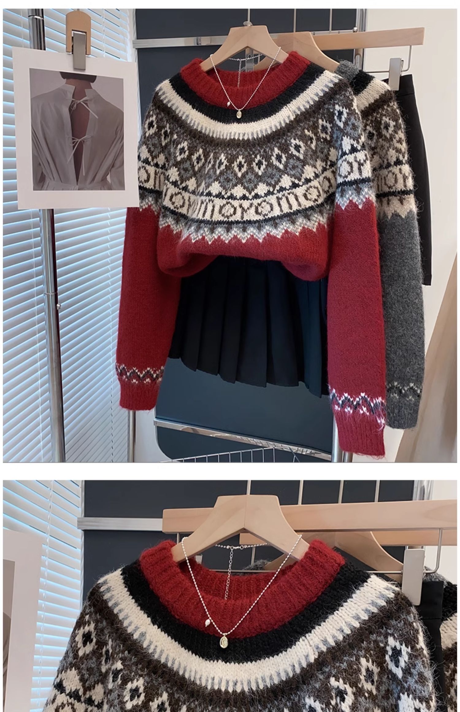 圓領費爾島毛衣女加厚打底衫2025秋冬新款套頭寬松針織衫內搭上衣