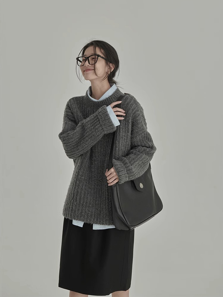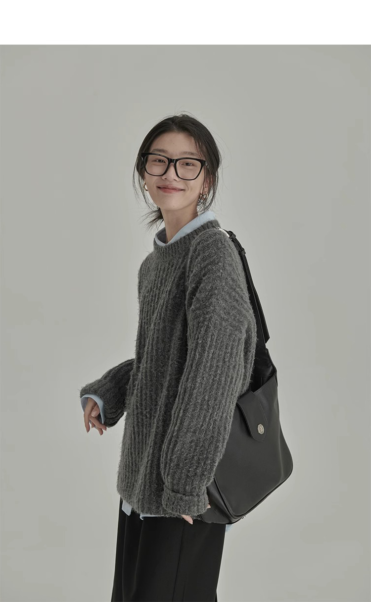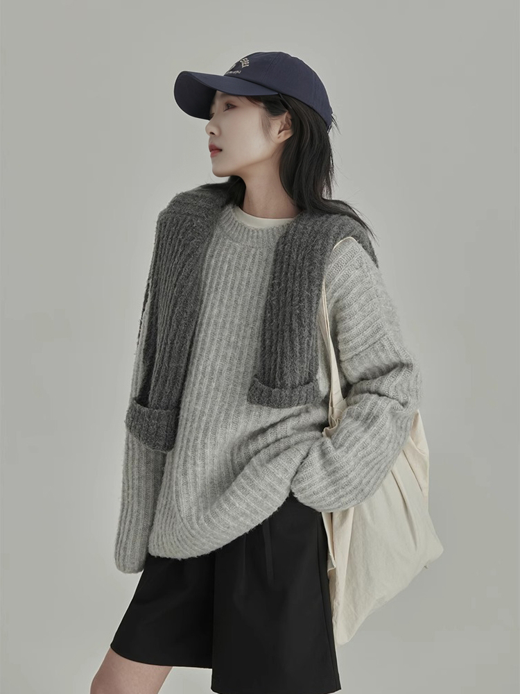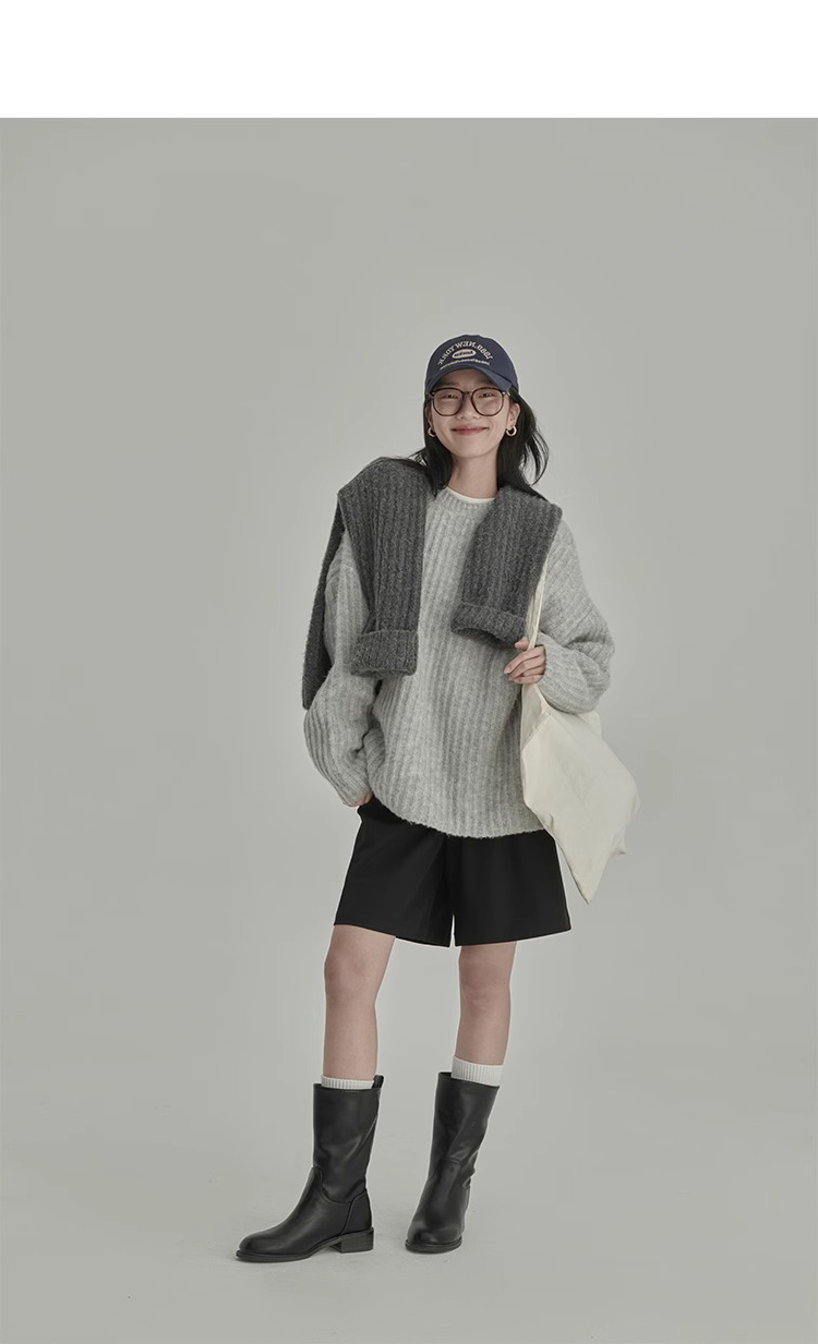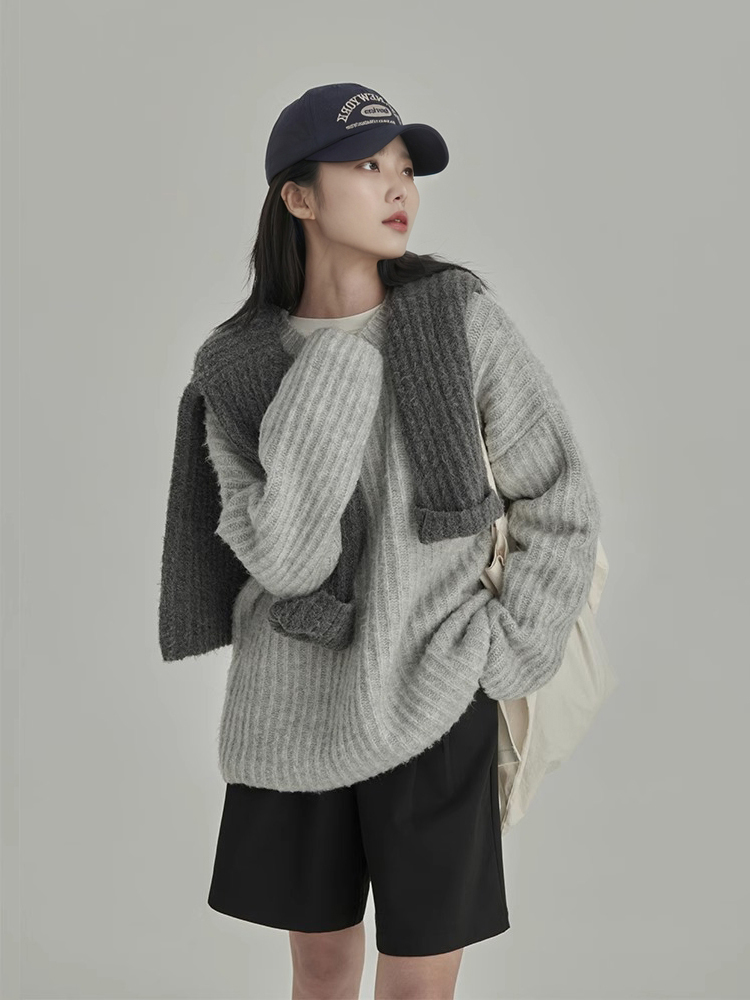 秋冬慵懶風坑條紋寬松加厚外穿套頭基礎款內搭復古針織衫毛衣女