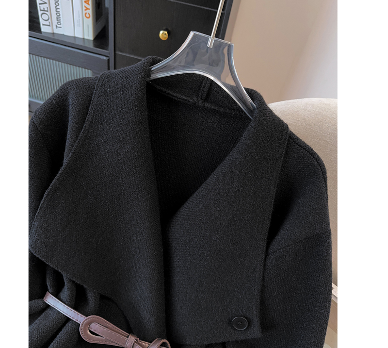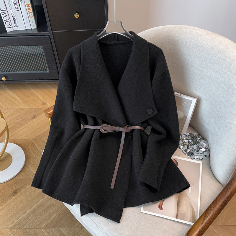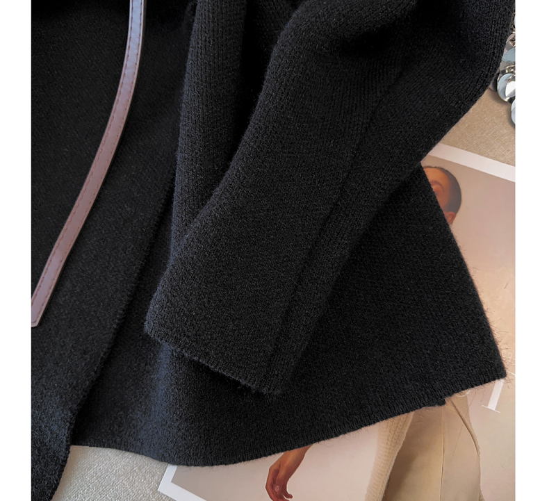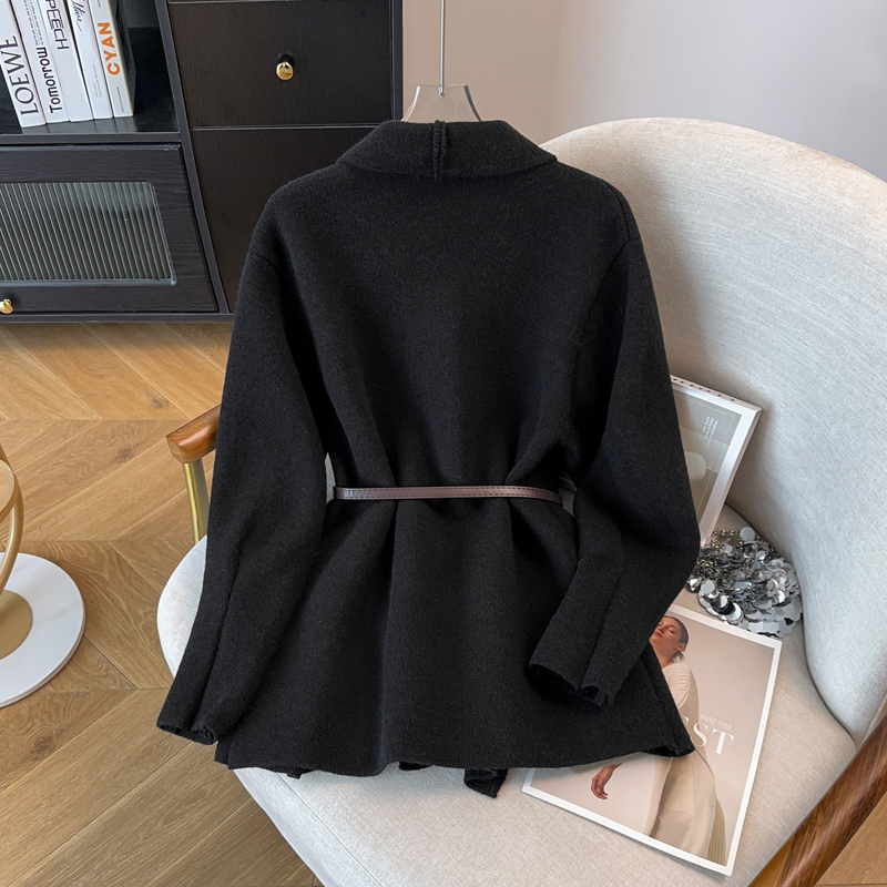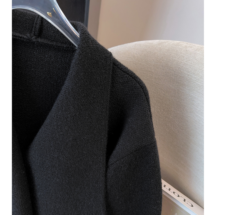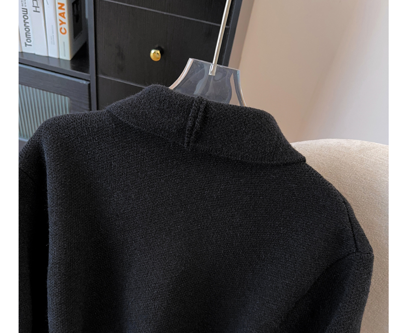 高級感黑色V領針織開衫毛衣外套女早秋裝大碼胖mm中長款收腰上衣