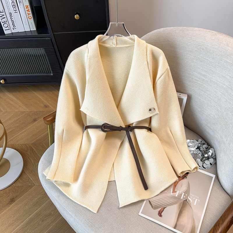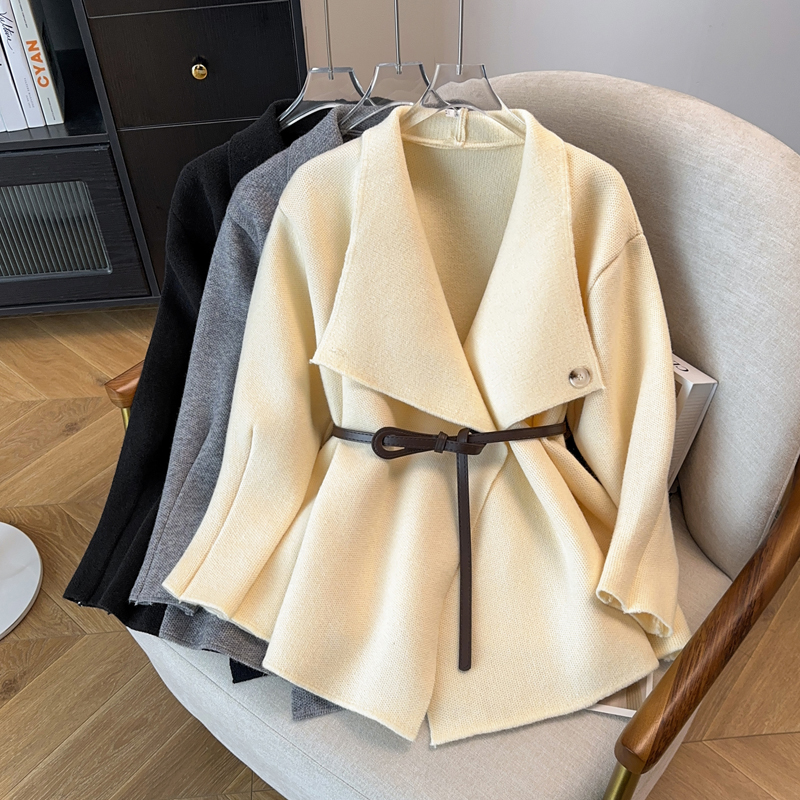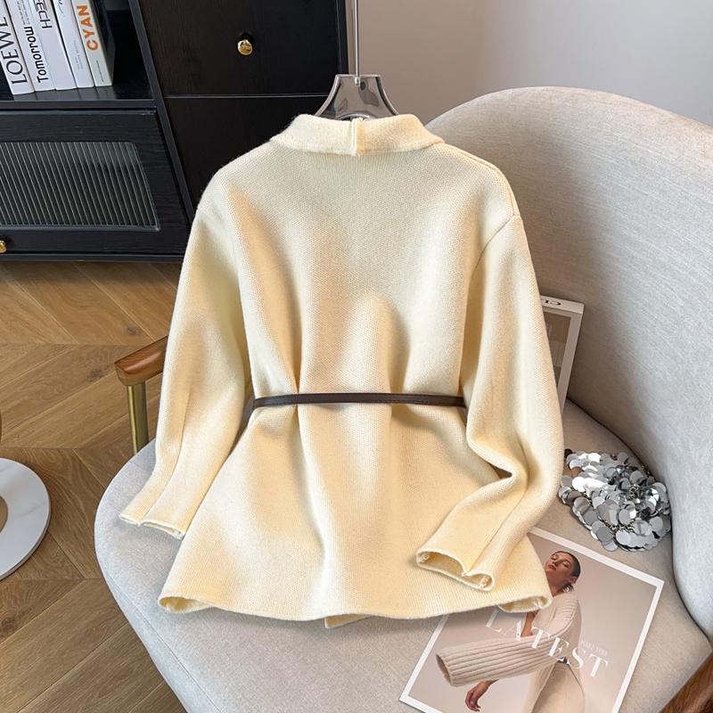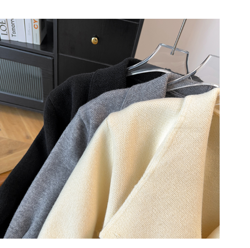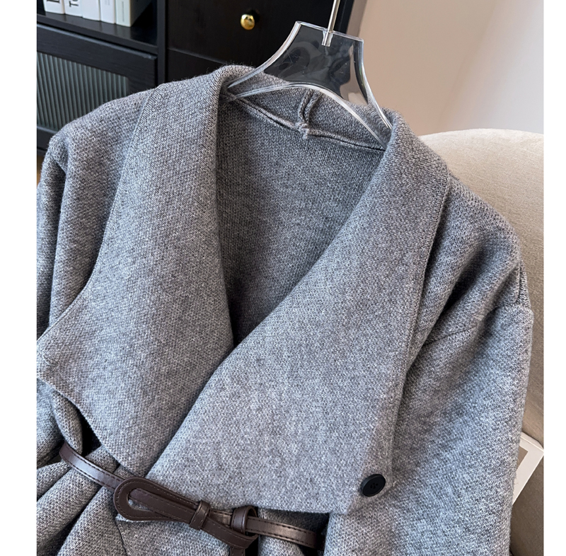 高級感黑色V領針織開衫毛衣外套女早秋裝大碼胖mm中長款收腰上衣