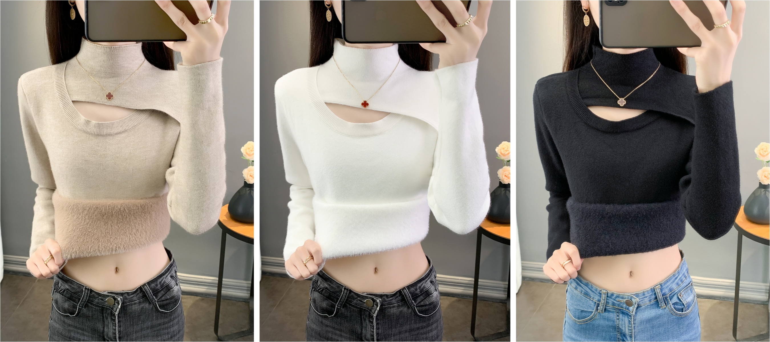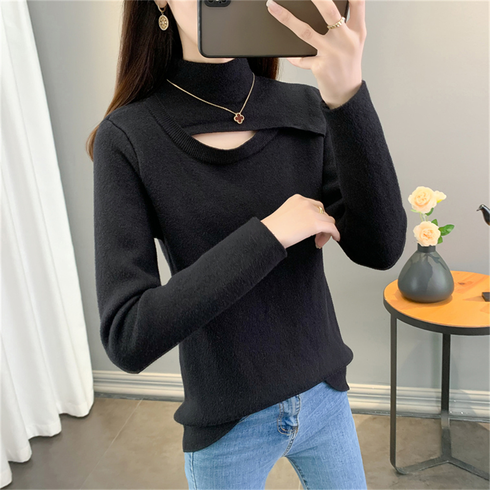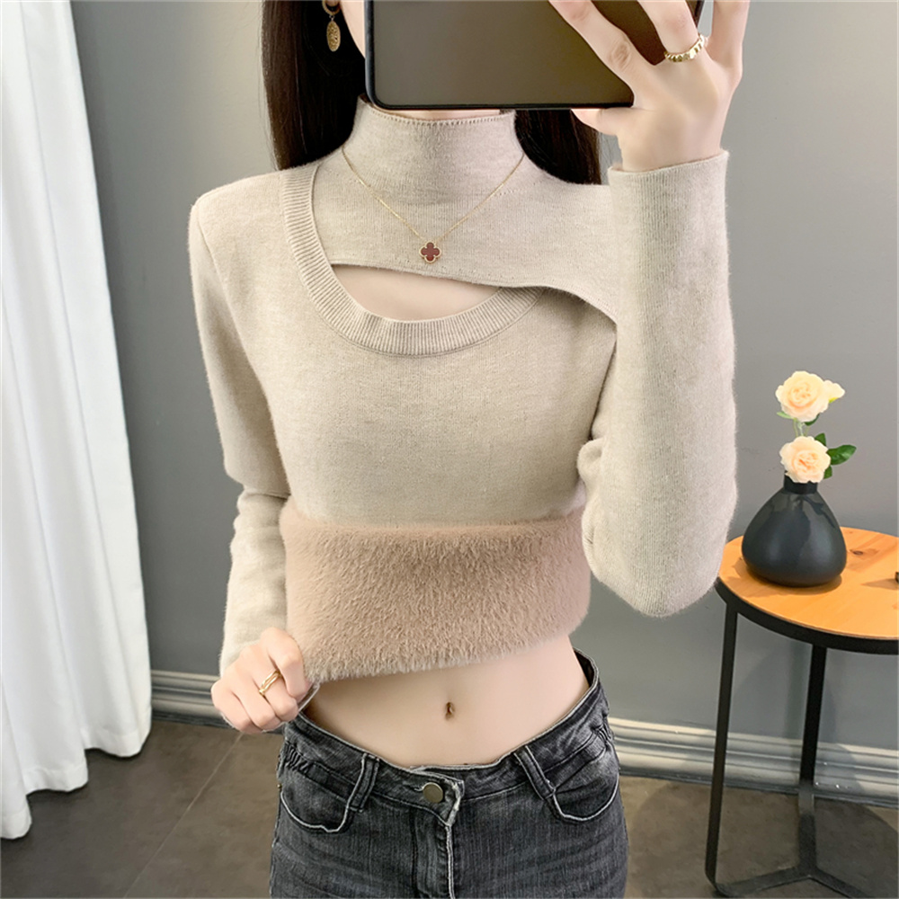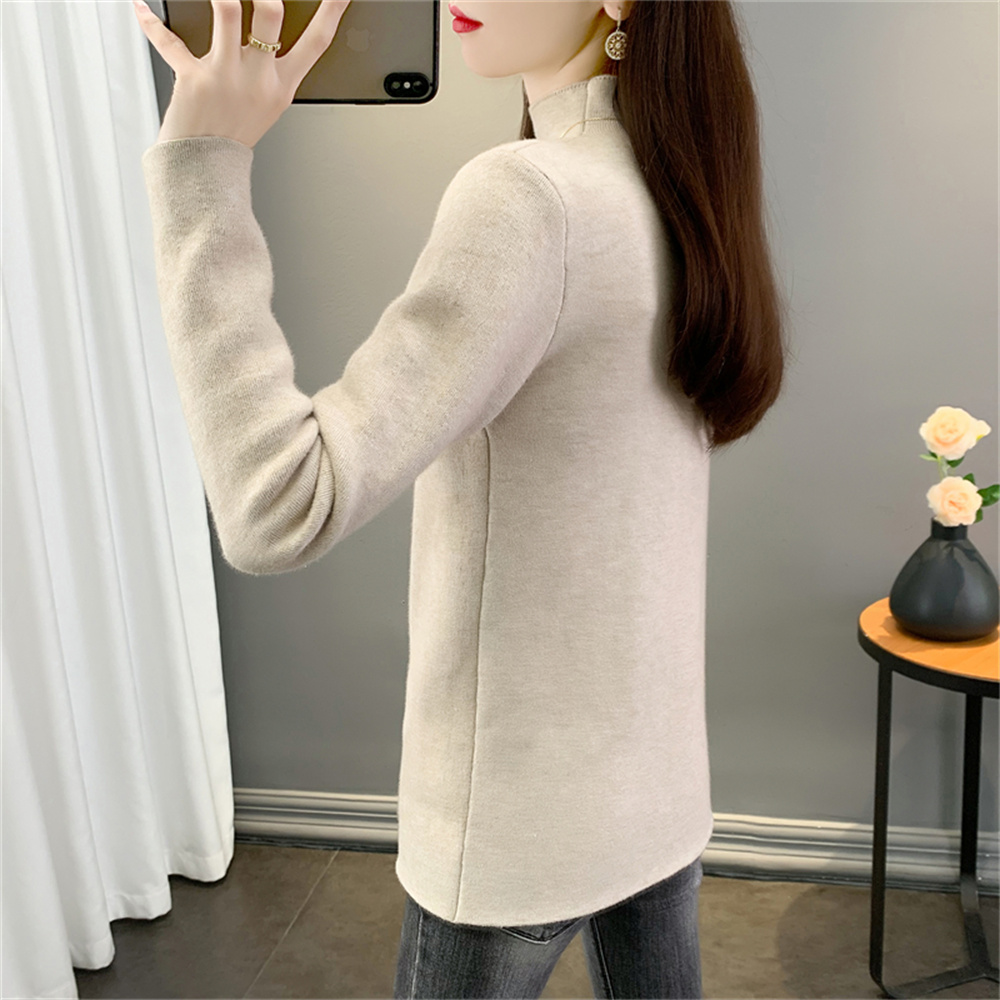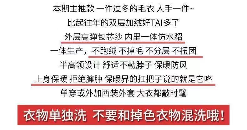 秋冬洋氣加絨加厚小衆設計感半高領毛衣中領一體絨打底衫女士內搭