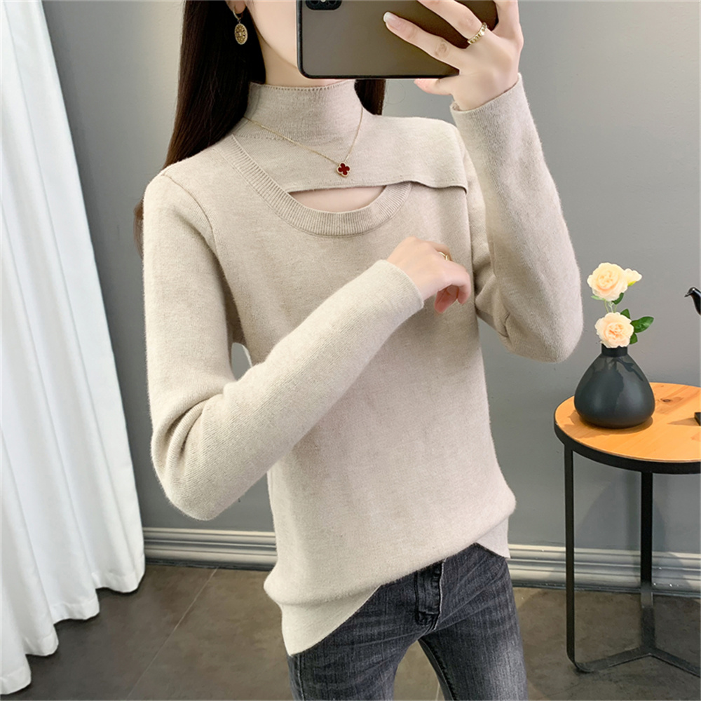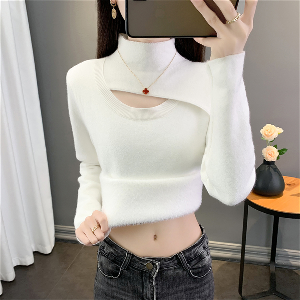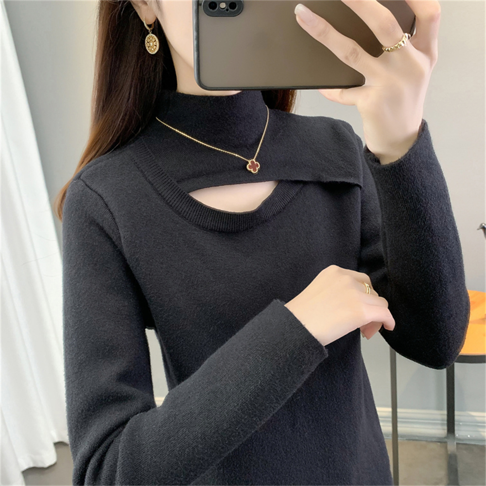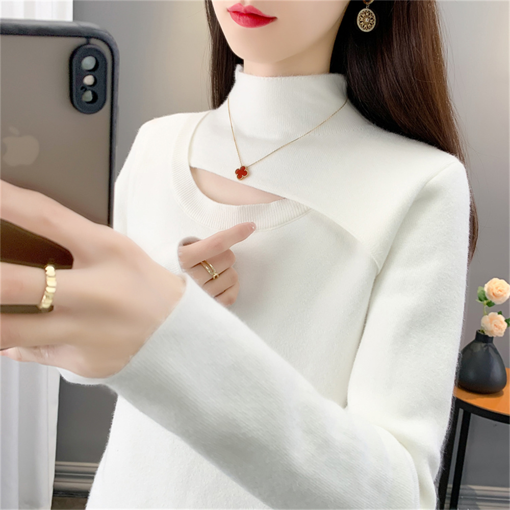 秋冬洋氣加絨加厚小衆設計感半高領毛衣中領一體絨打底衫女士內搭