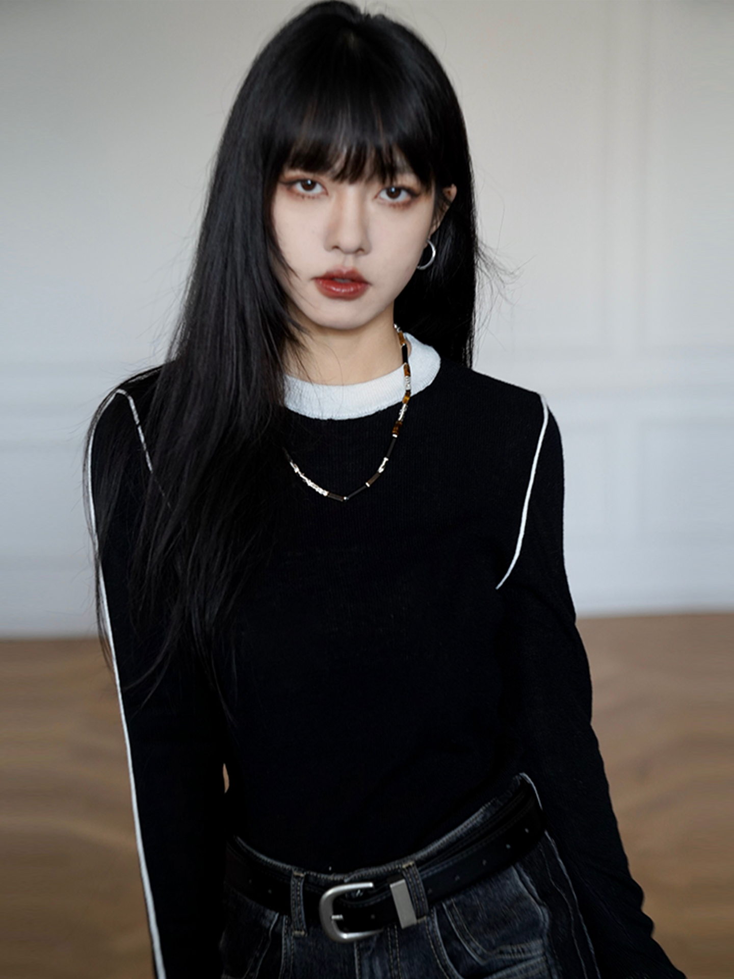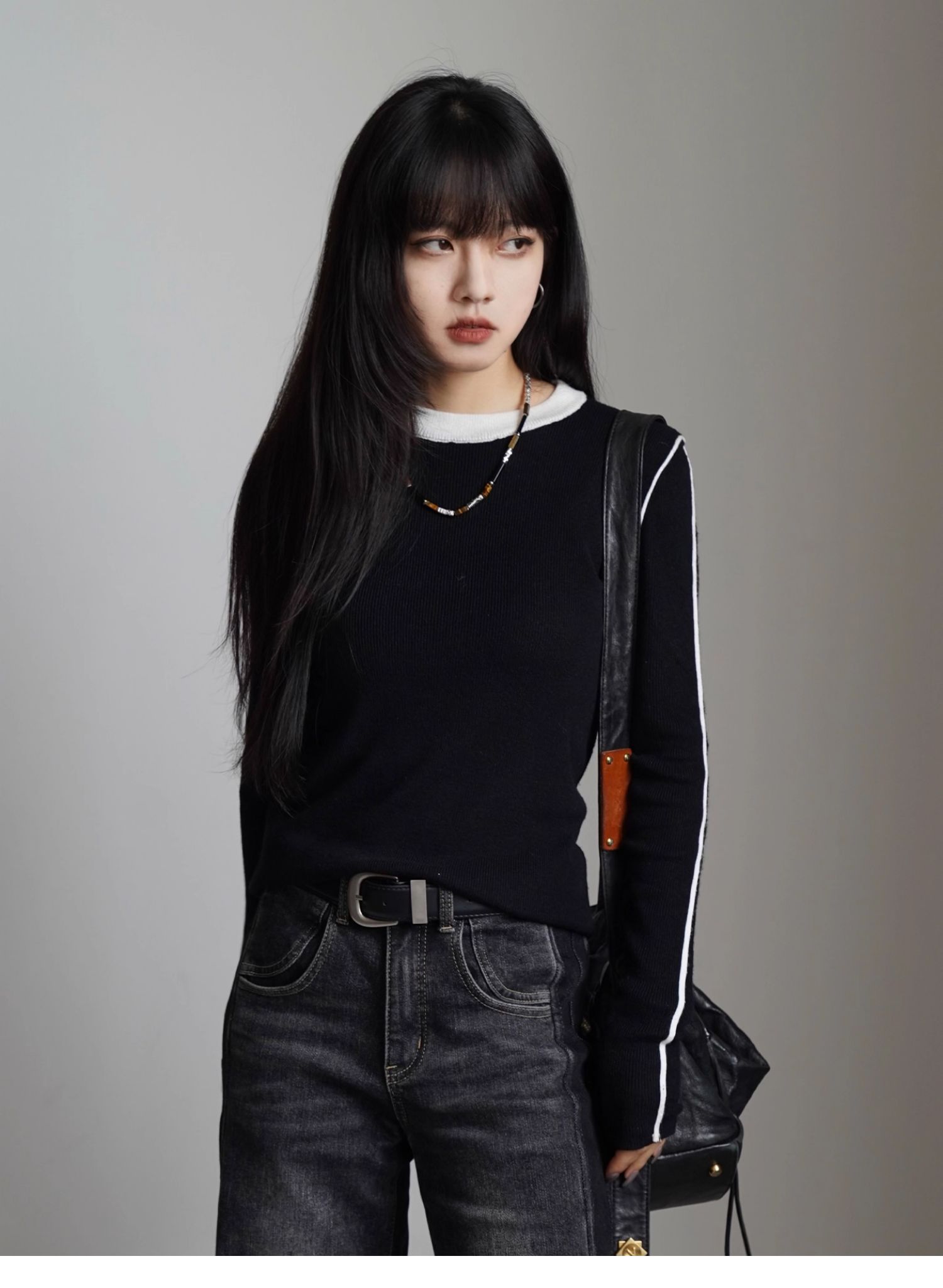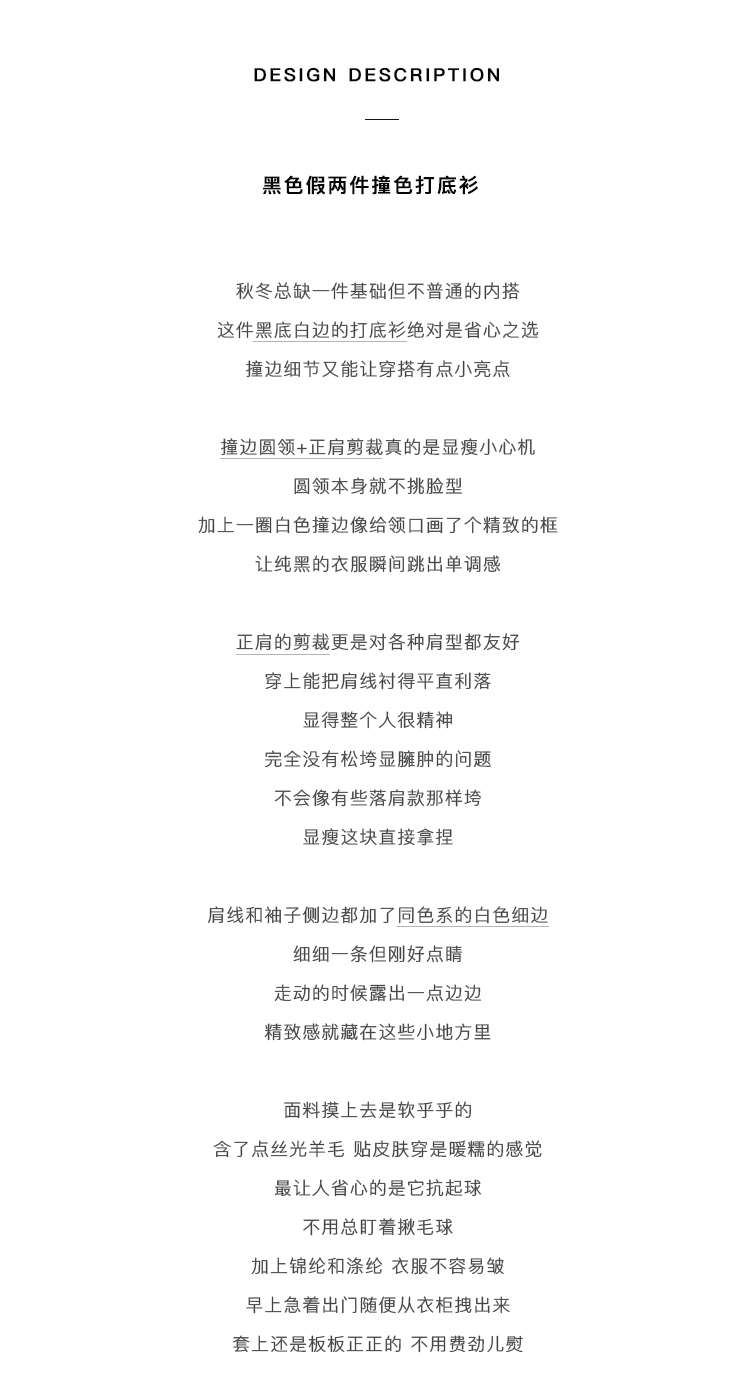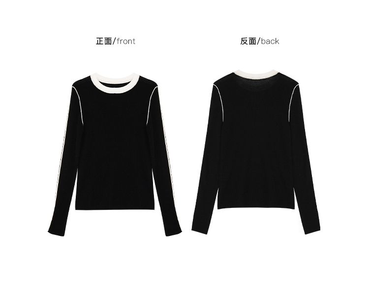 呆毛黑色假兩件撞色打底衫女秋冬修身內搭外穿毛衣曡穿針織衫上衣