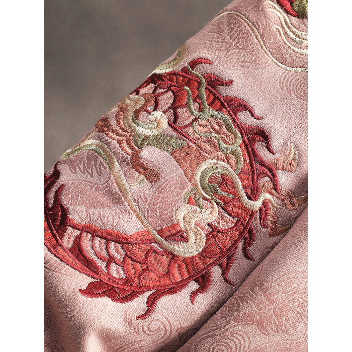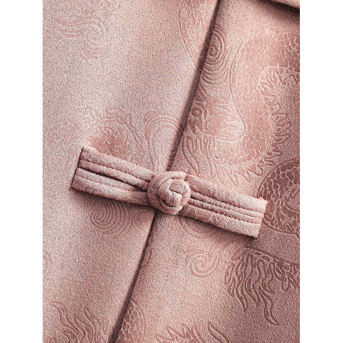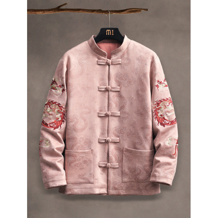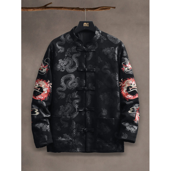 新中式秋冬麂皮絨刺綉龍圖案唐裝男外套風盤釦圓領中山裝夾克