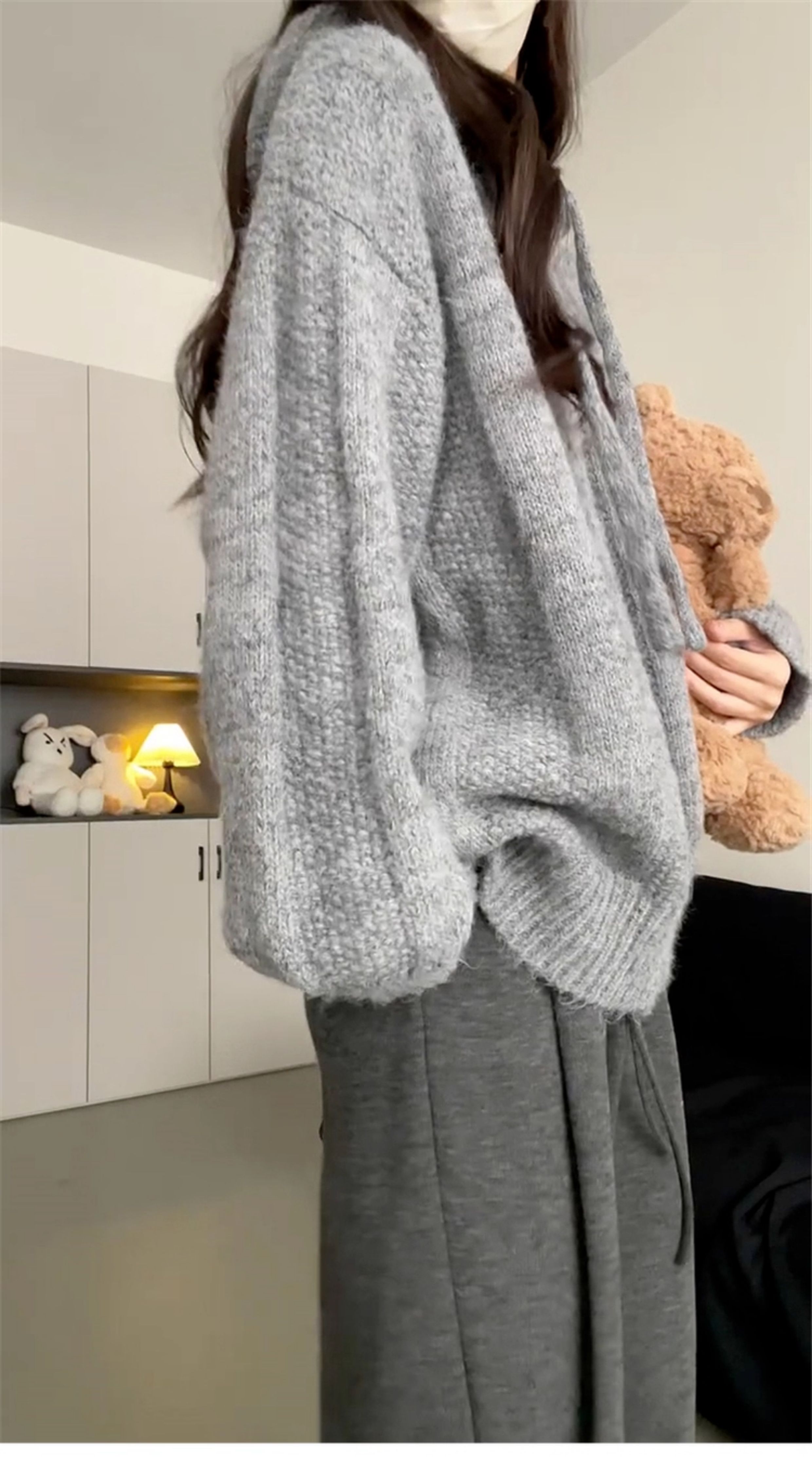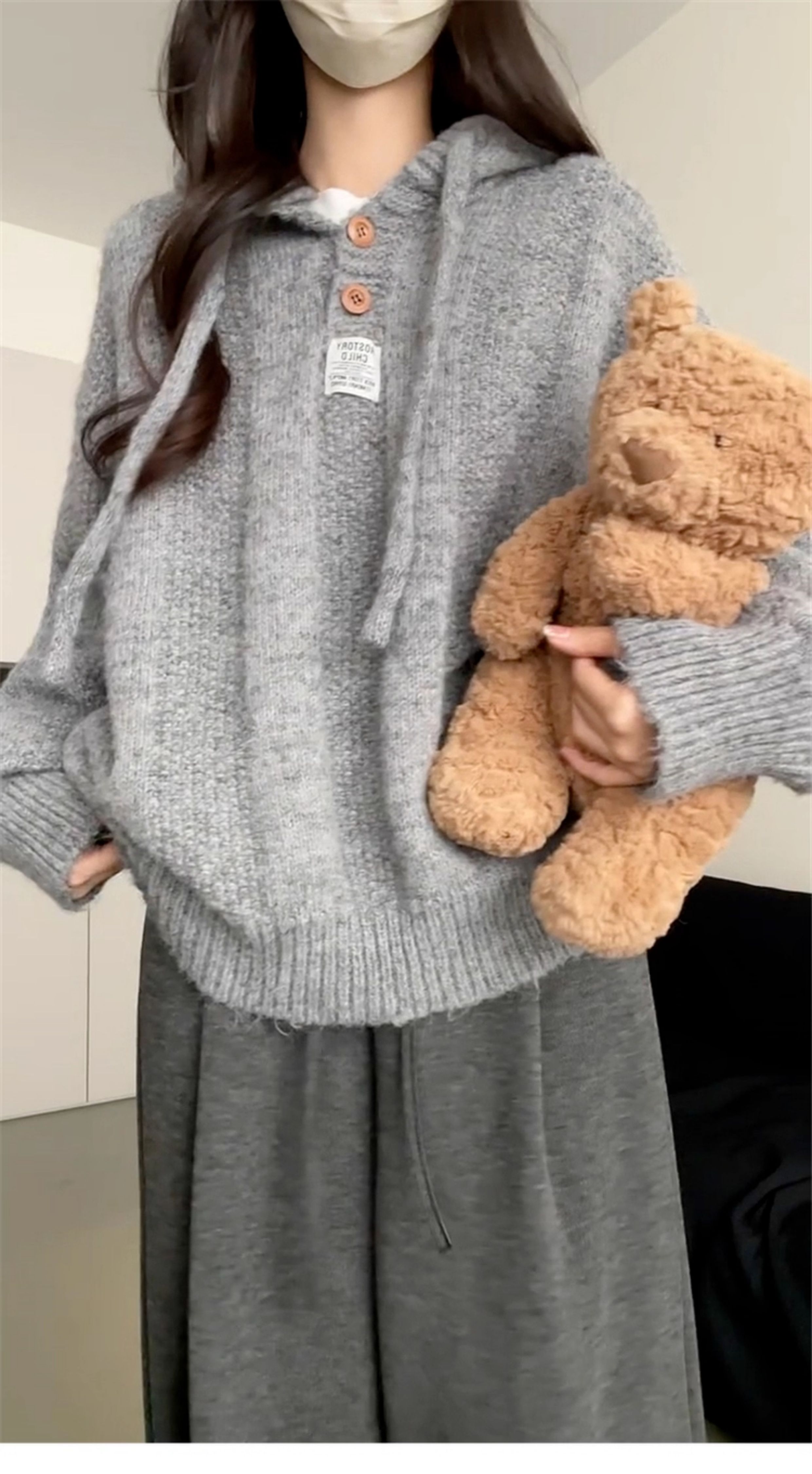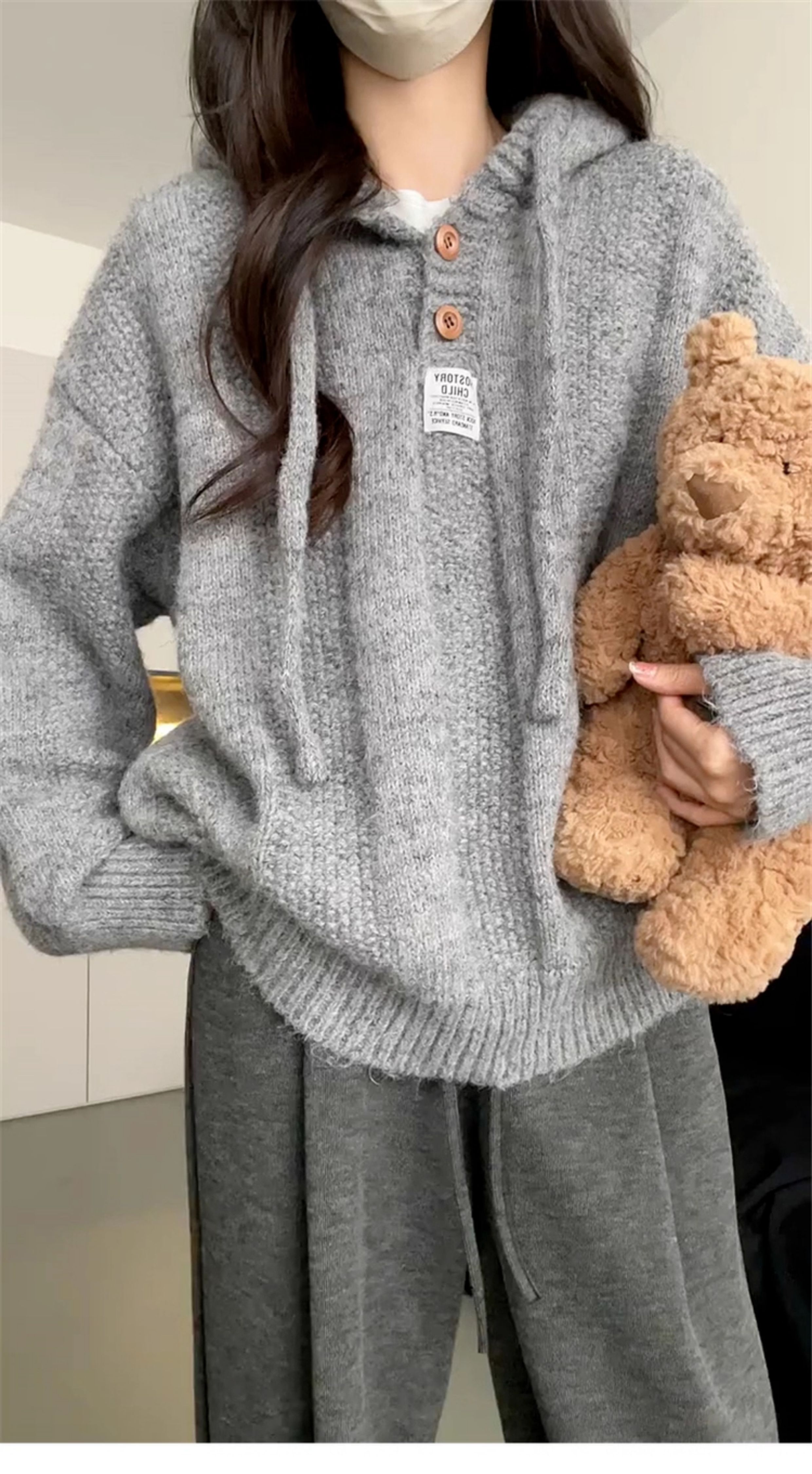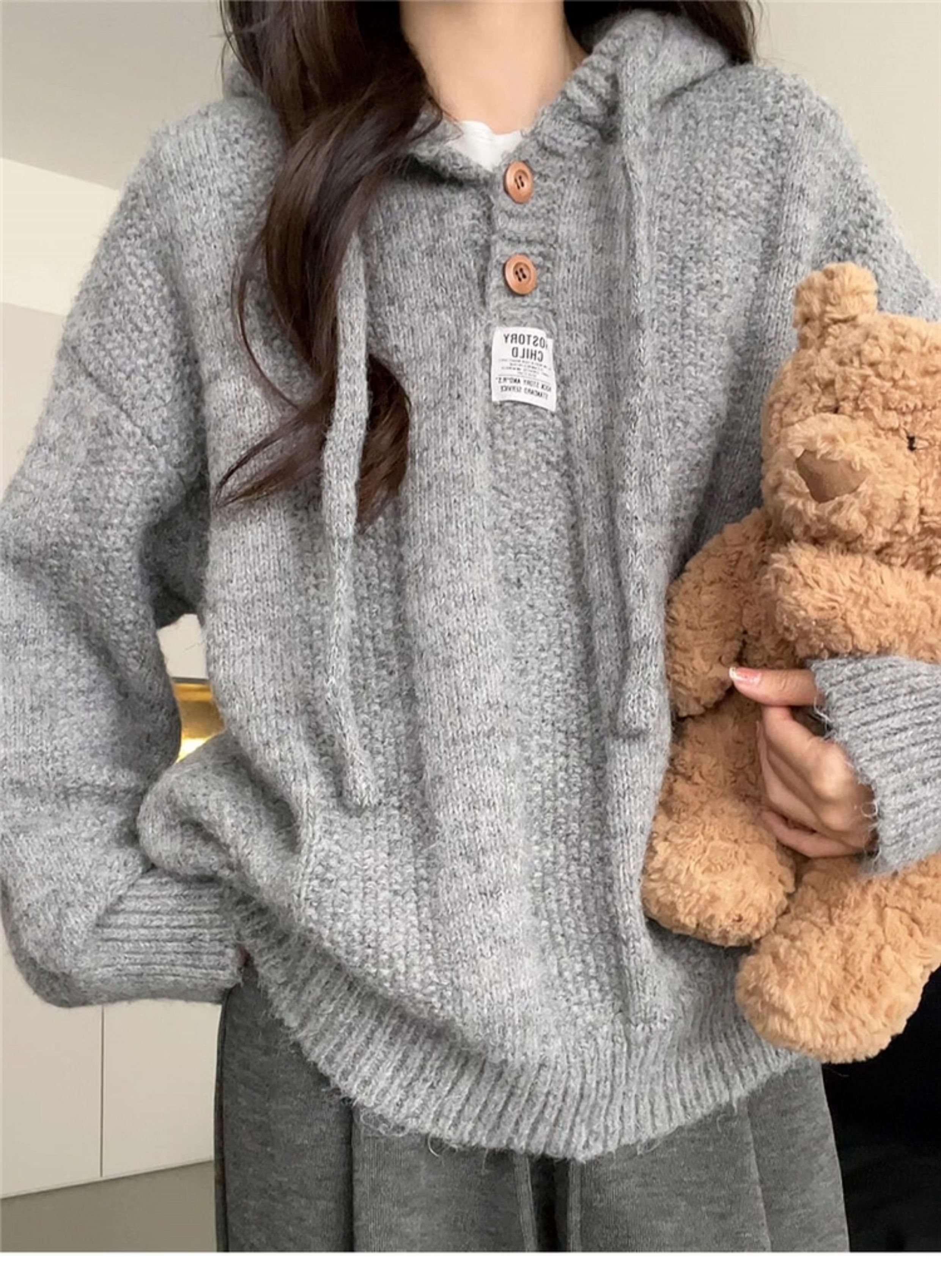 慵懶風灰色連帽毛衣外套女2025年新款秋冬季穿搭高級感針織衫上衣