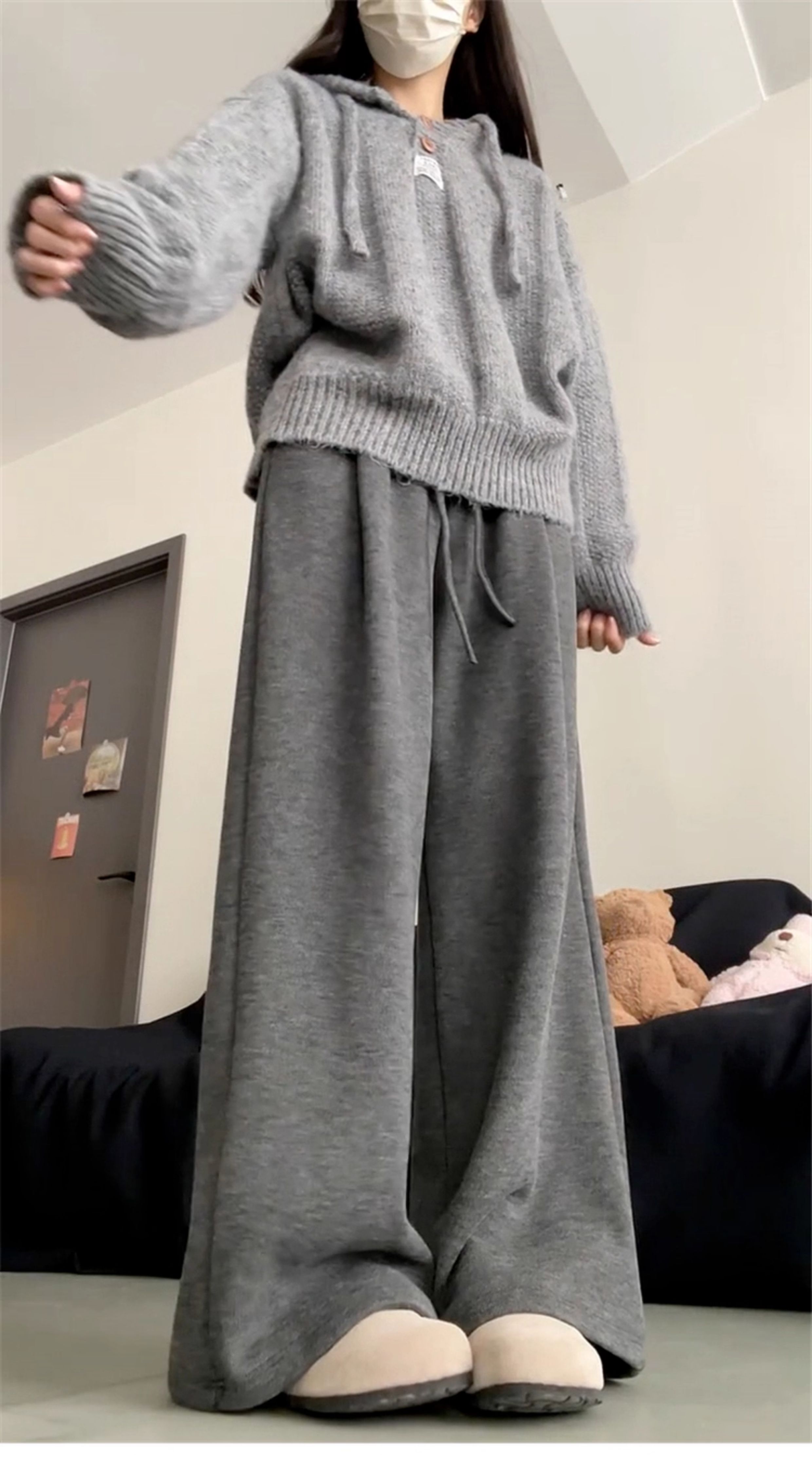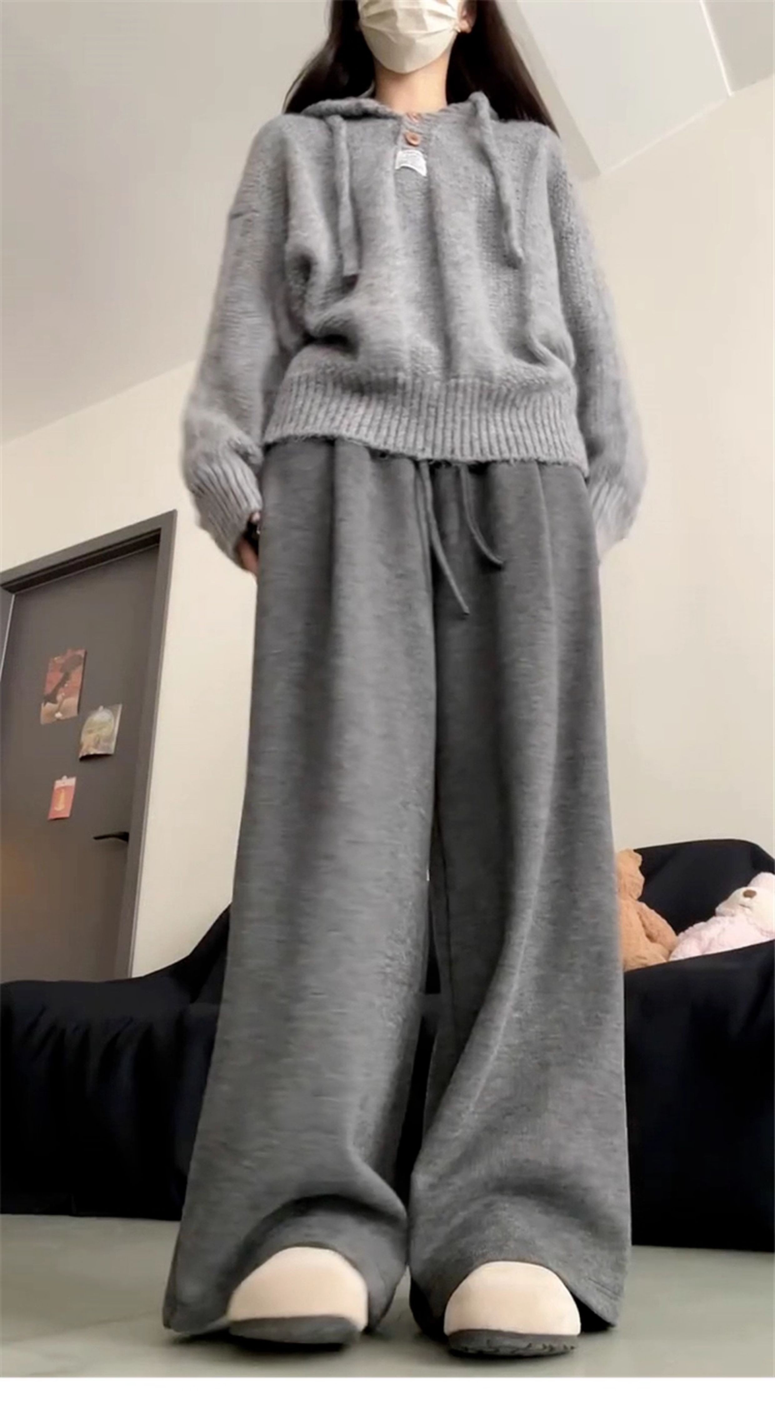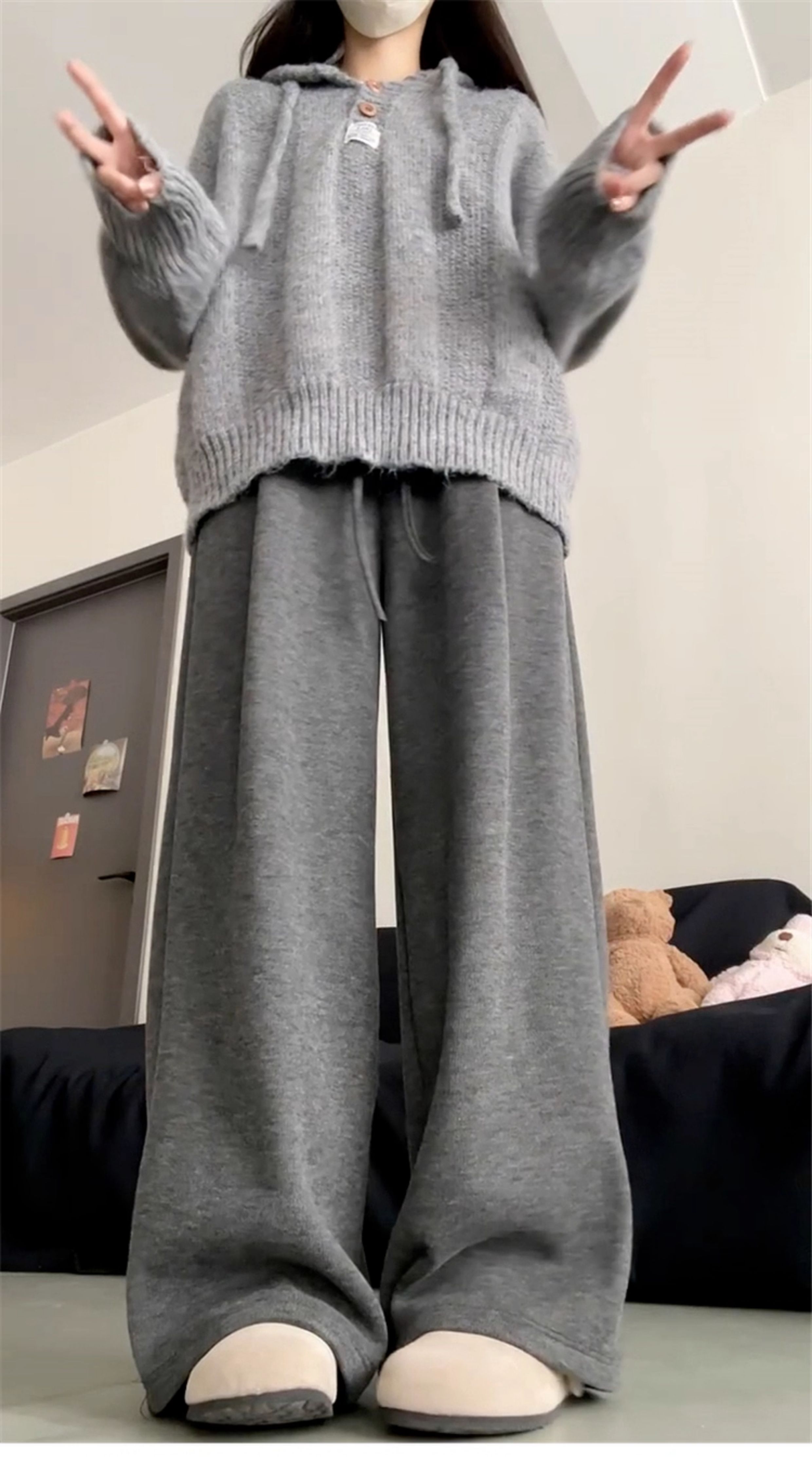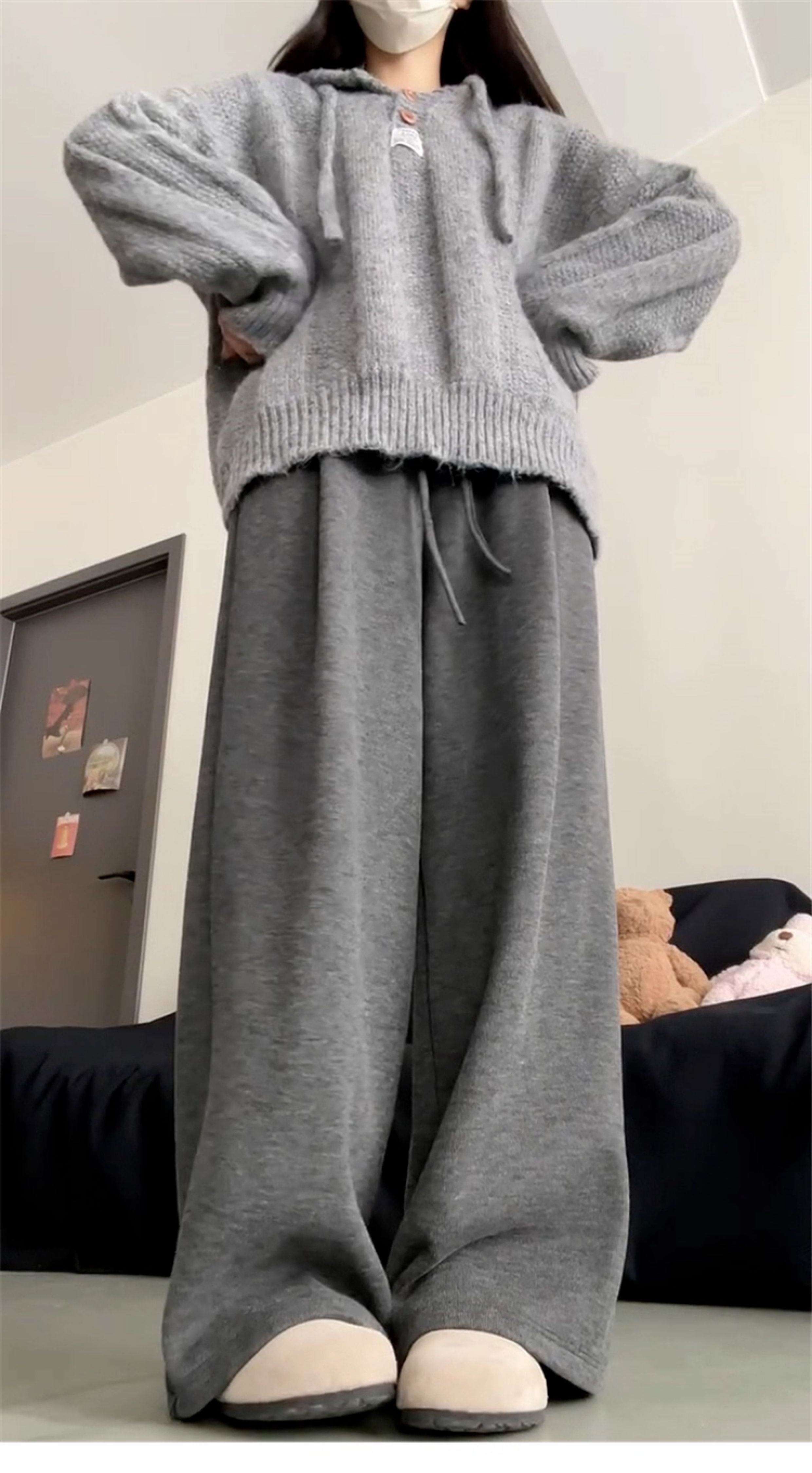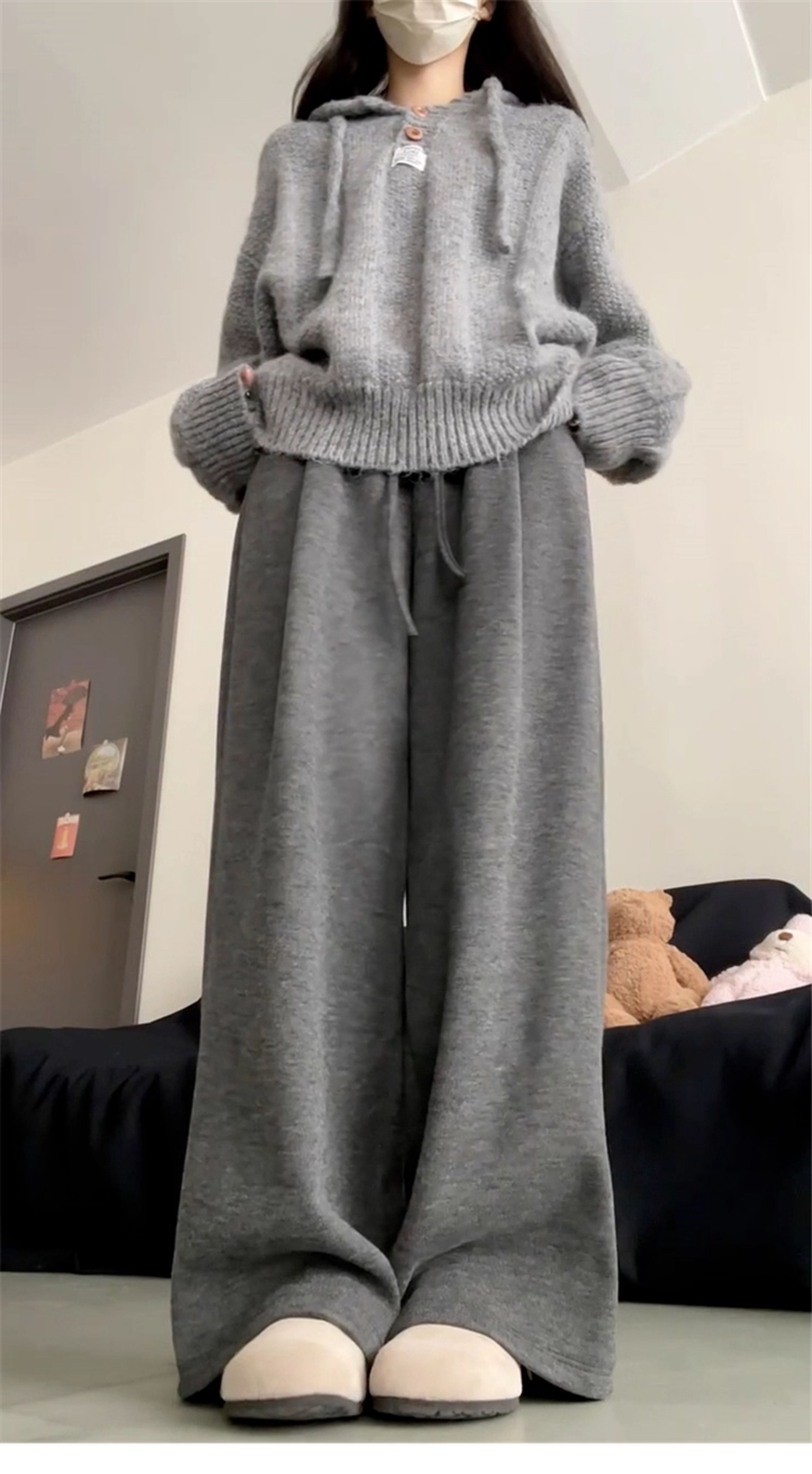慵懶風灰色連帽毛衣外套女2025年新款秋冬季穿搭高級感針織衫上衣