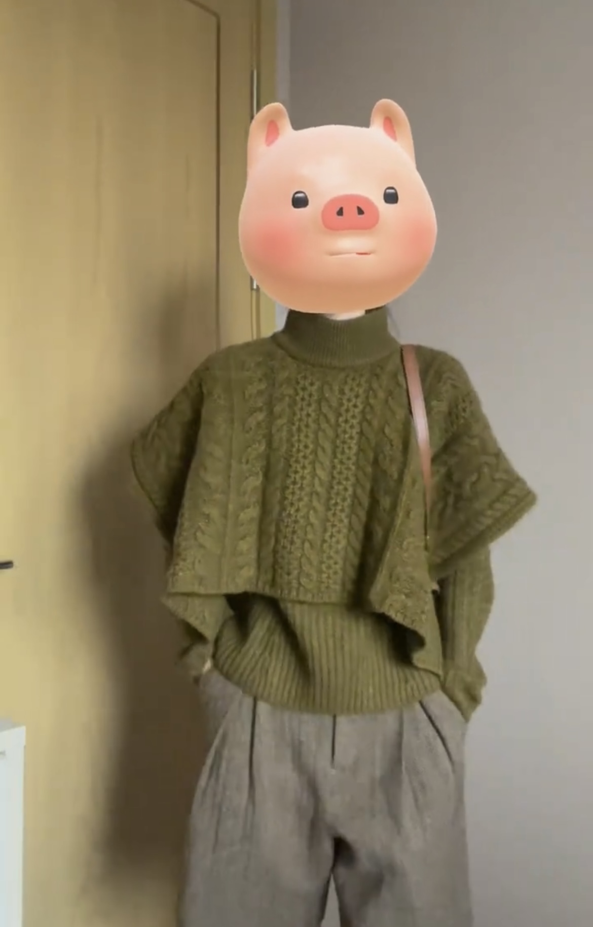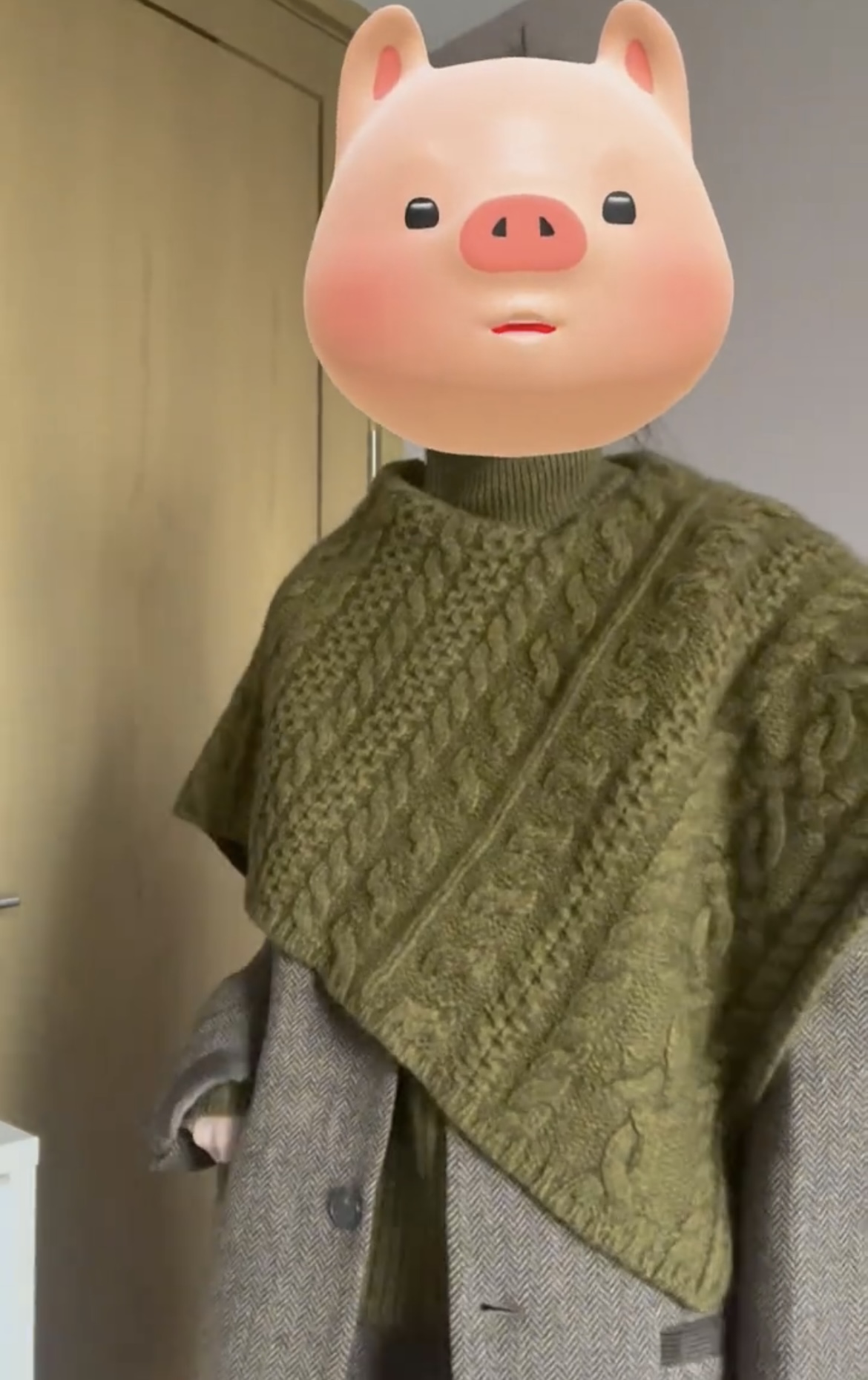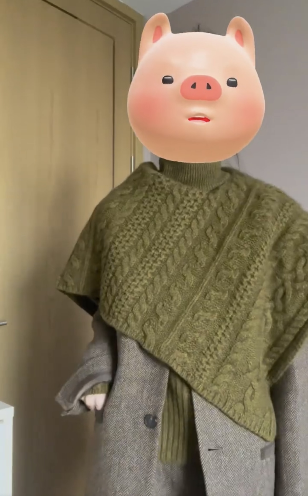 復古高級感綠色兩件套高領毛衣女秋冬設計感麻花披肩鬭篷針織衫厚