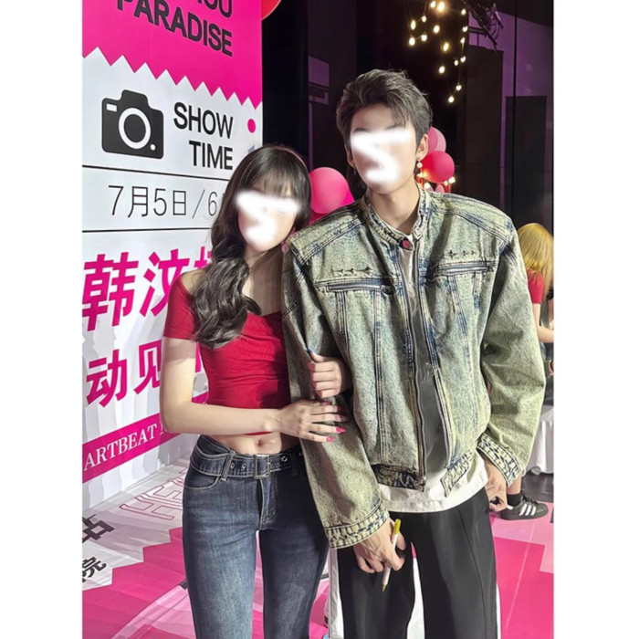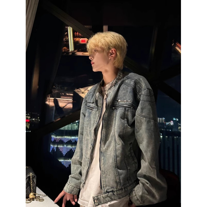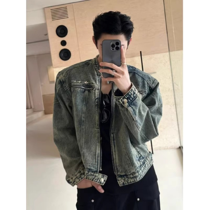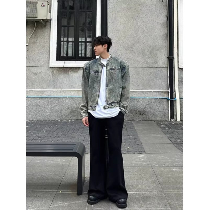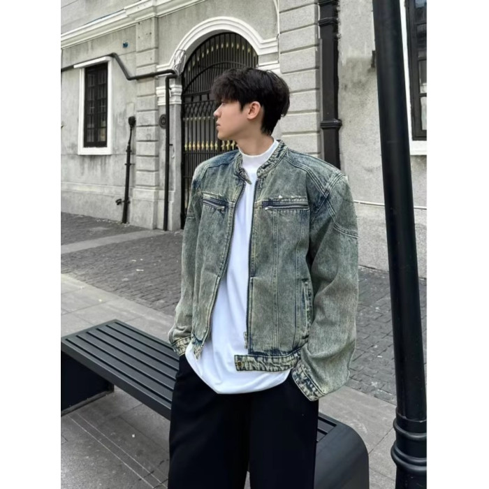 龐博文同款墊肩牛仔外套男美式春秋季cleanfit短款男生穿搭夾克潮