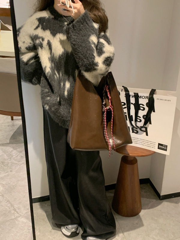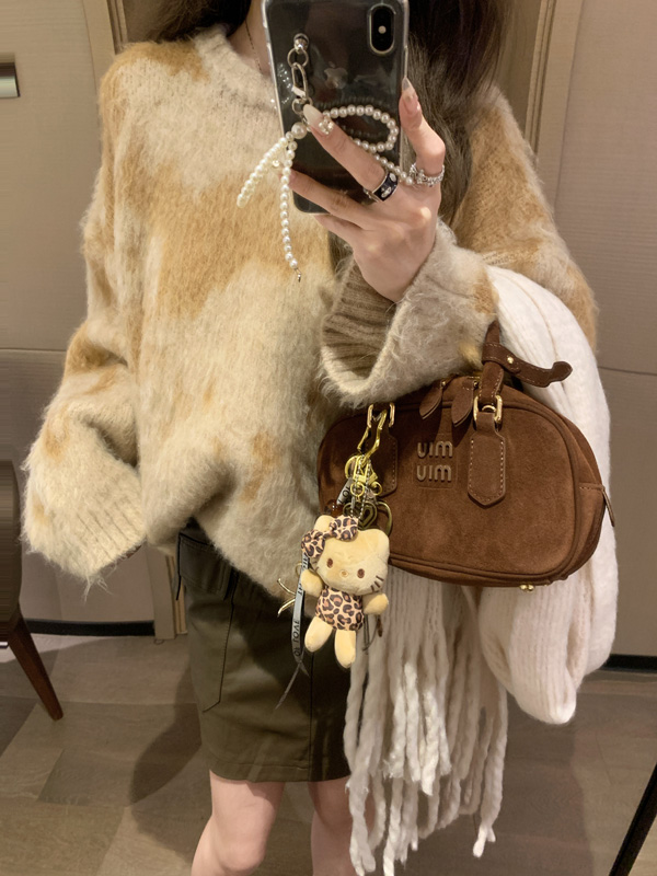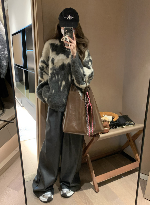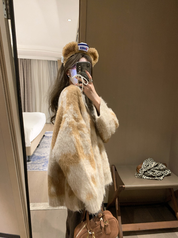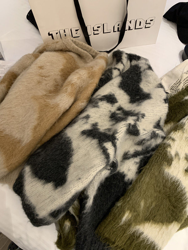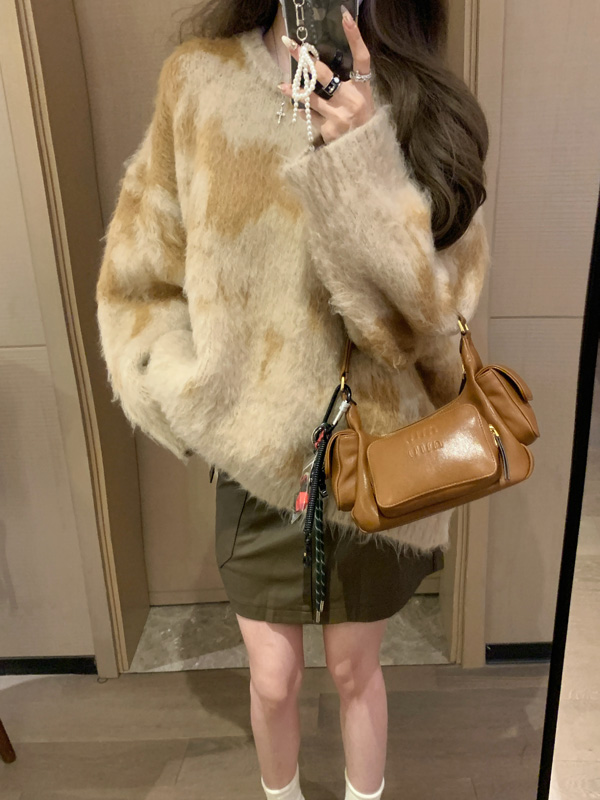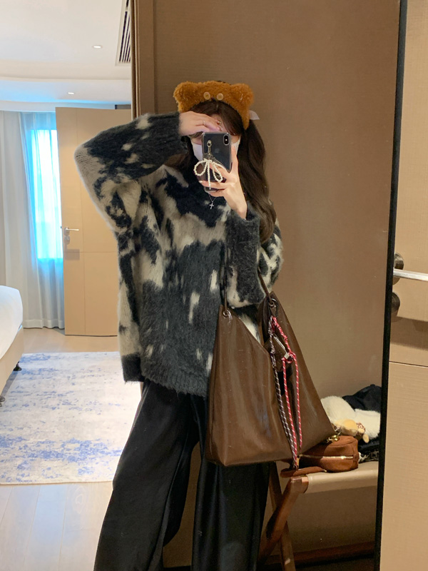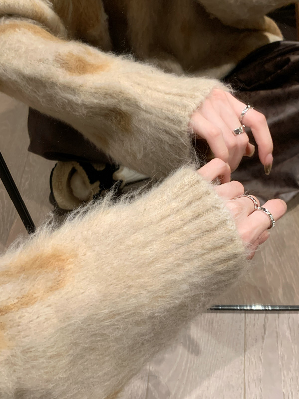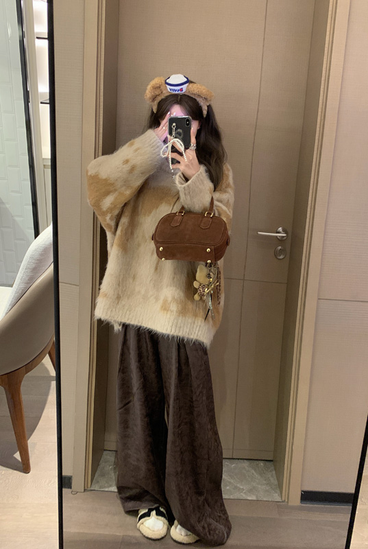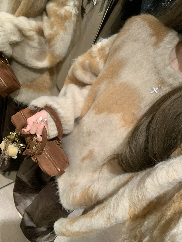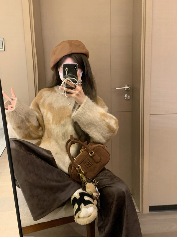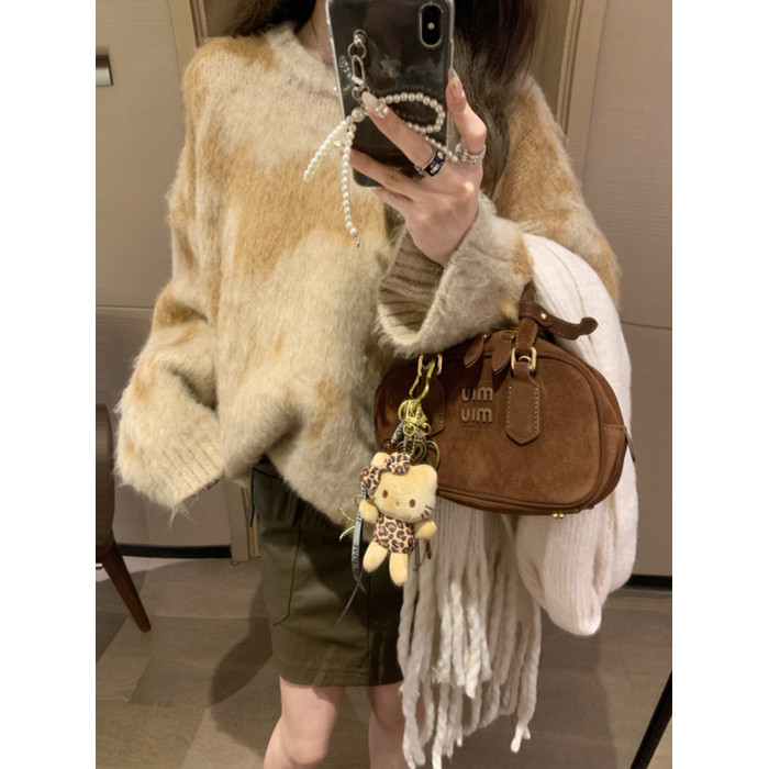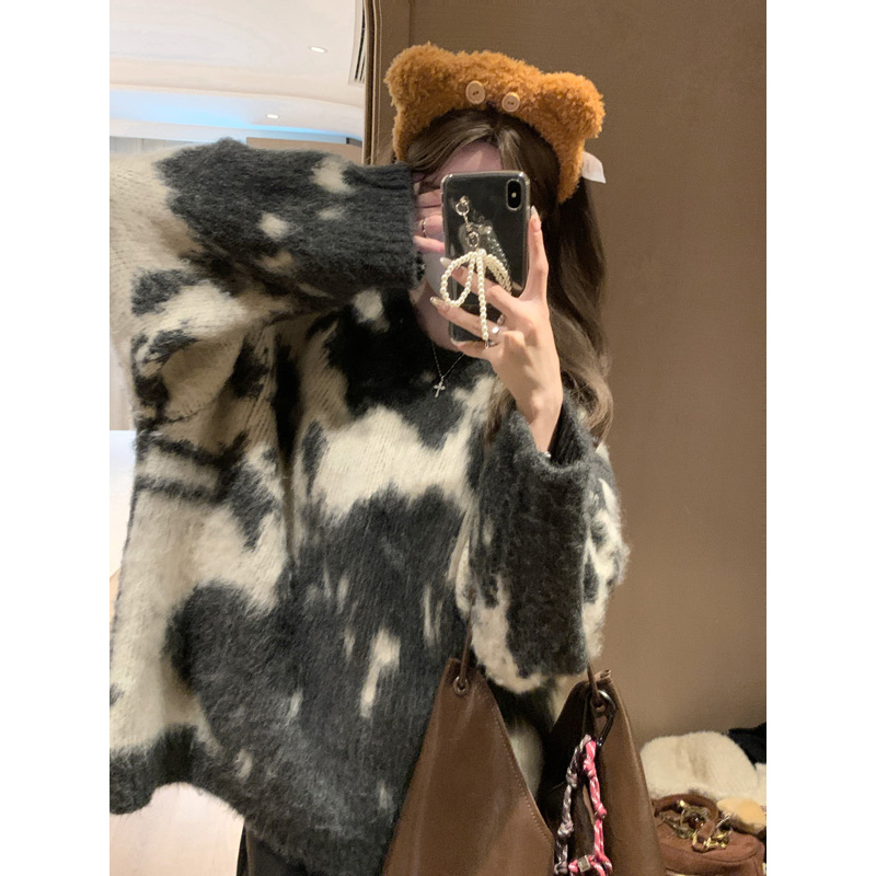慵懶風暈染圓領馬海毛毛衣女秋冬寬松軟糯奶呼呼套頭針織衫上衣