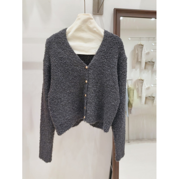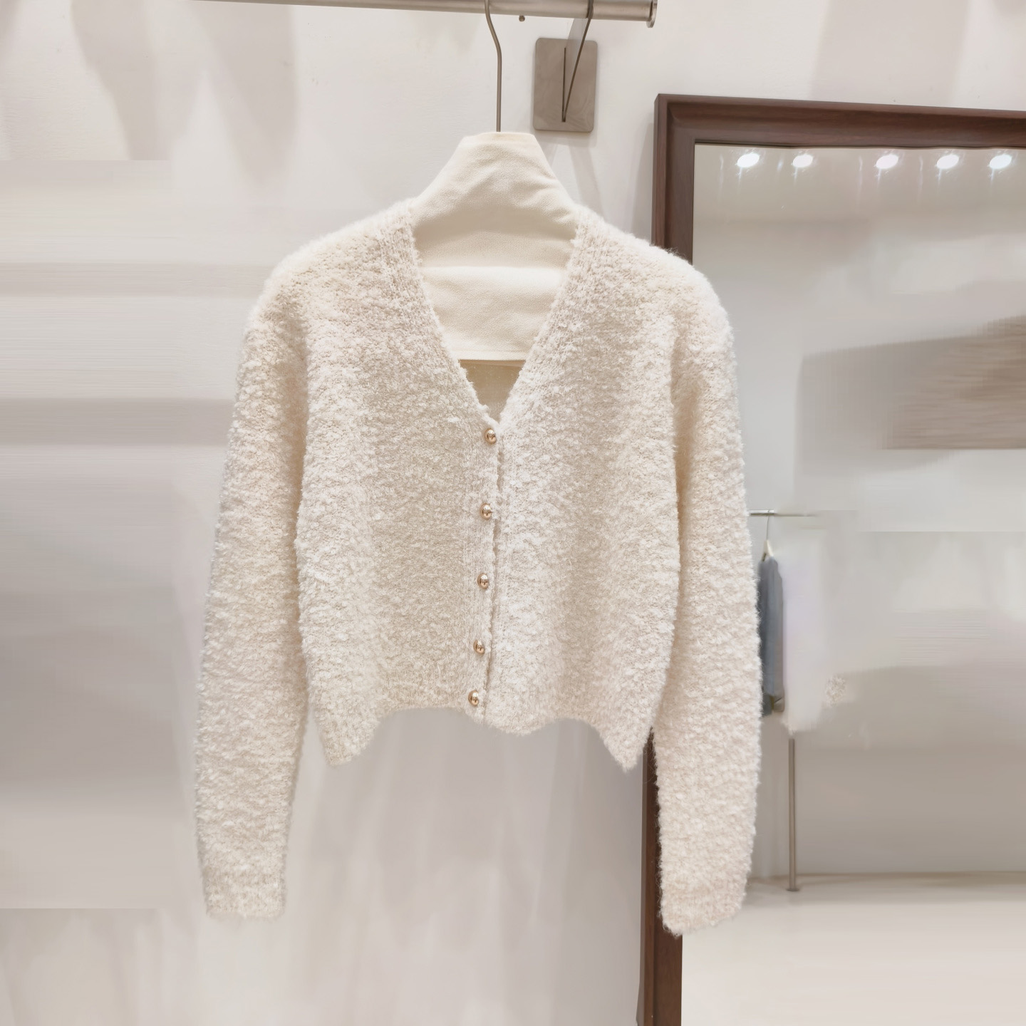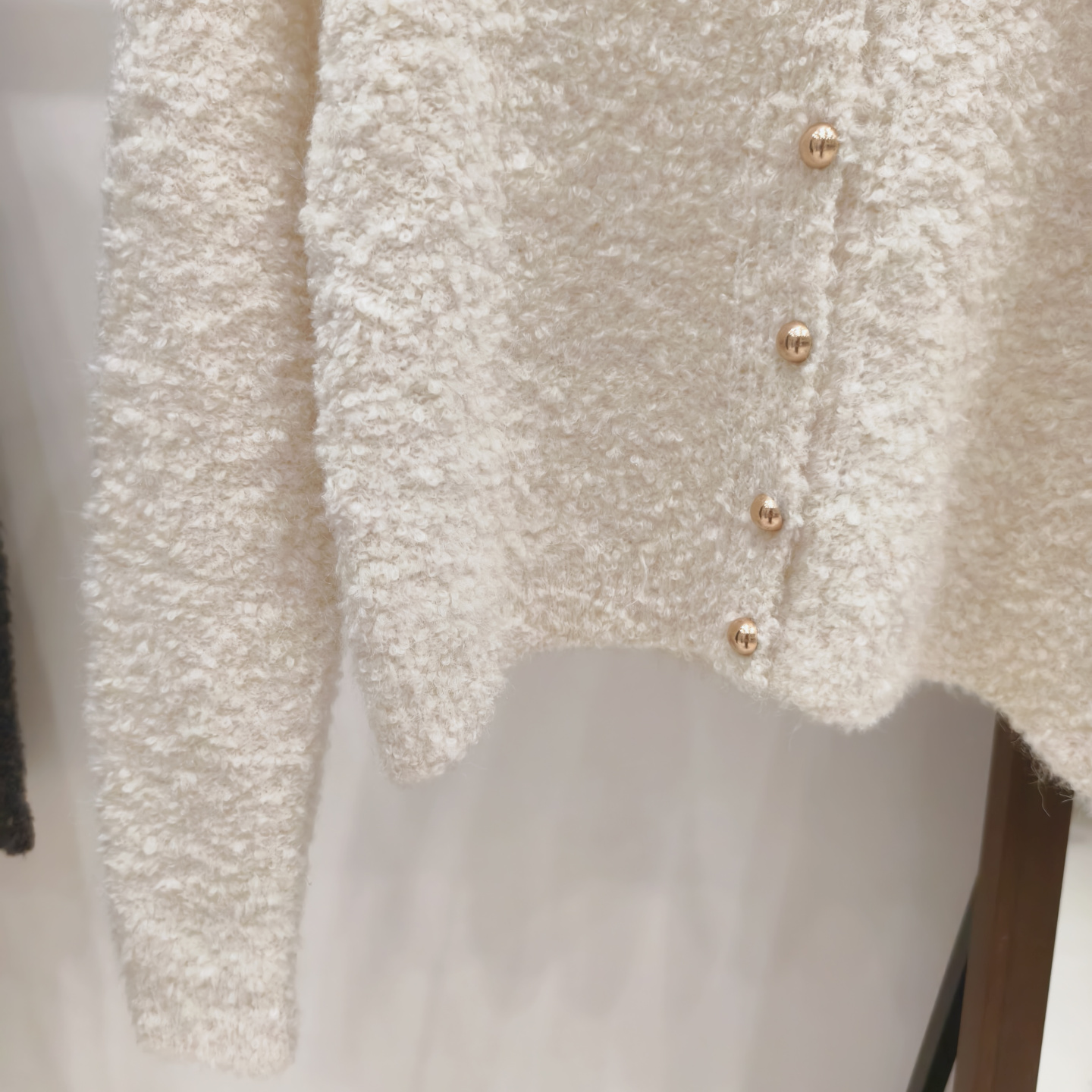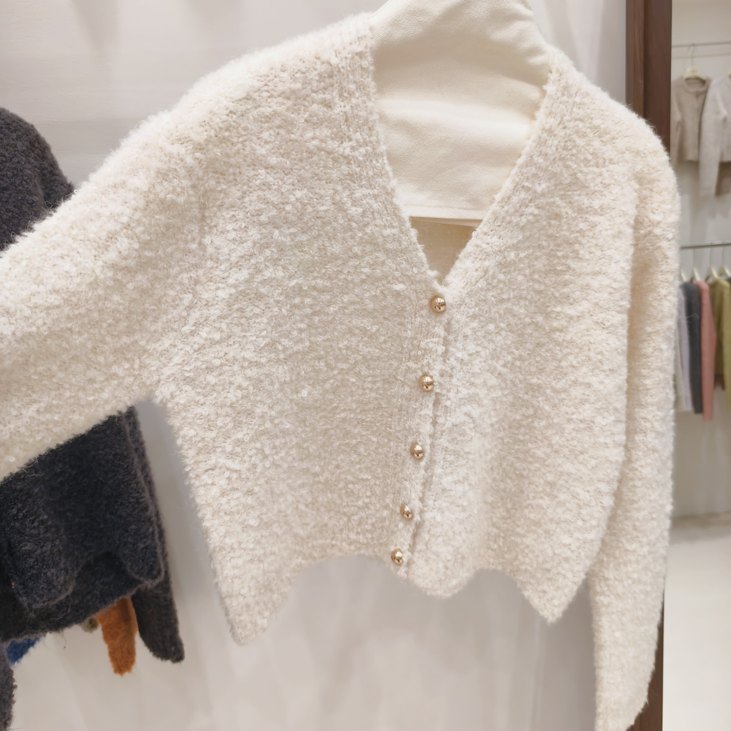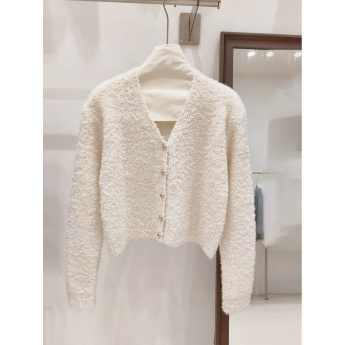 小香風奶白色短款針織外套女金色釦外穿肌理感洋氣圈圈紗毛衣開衫