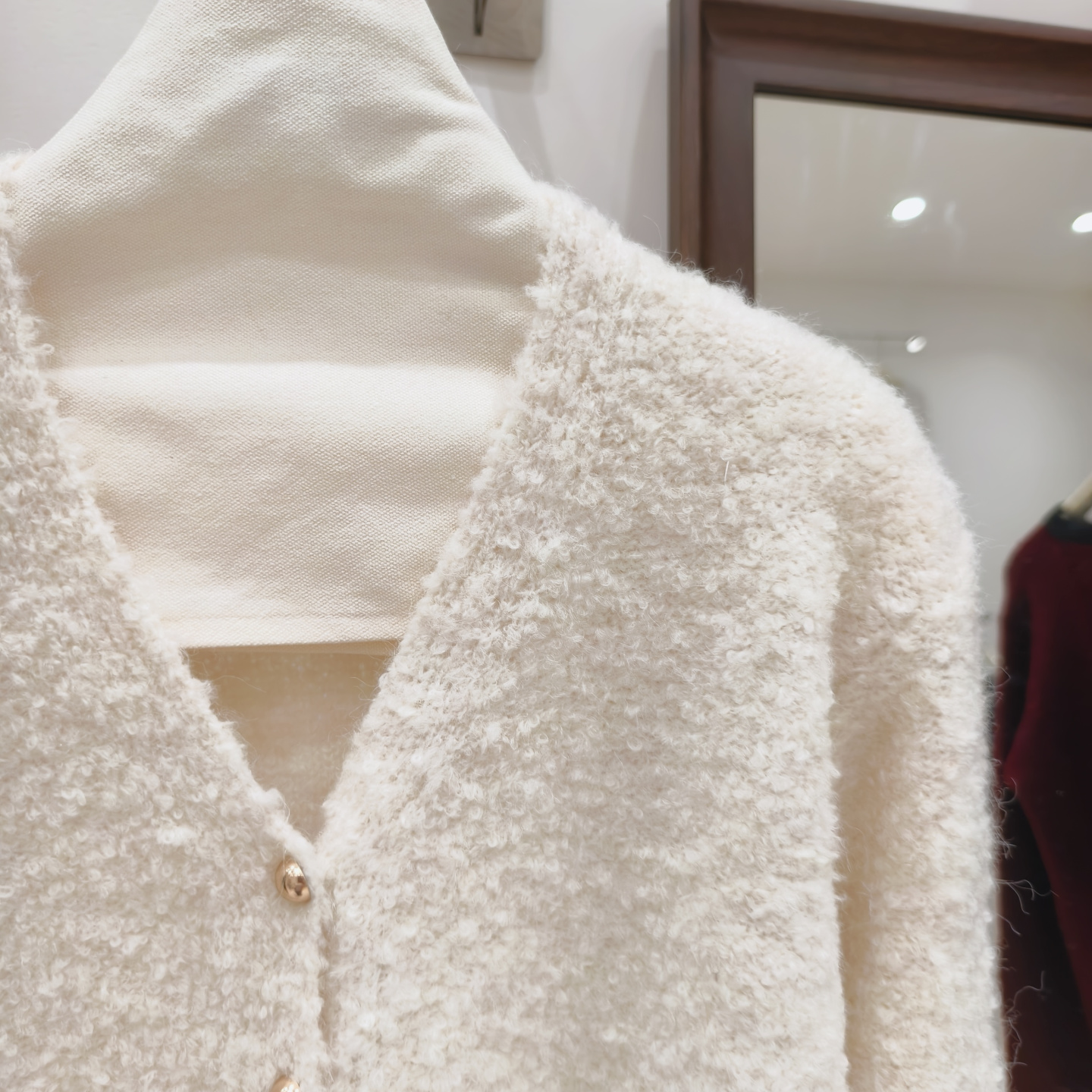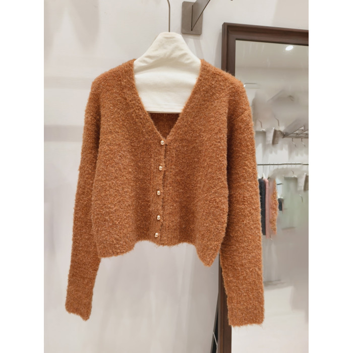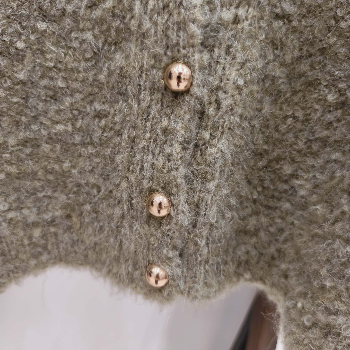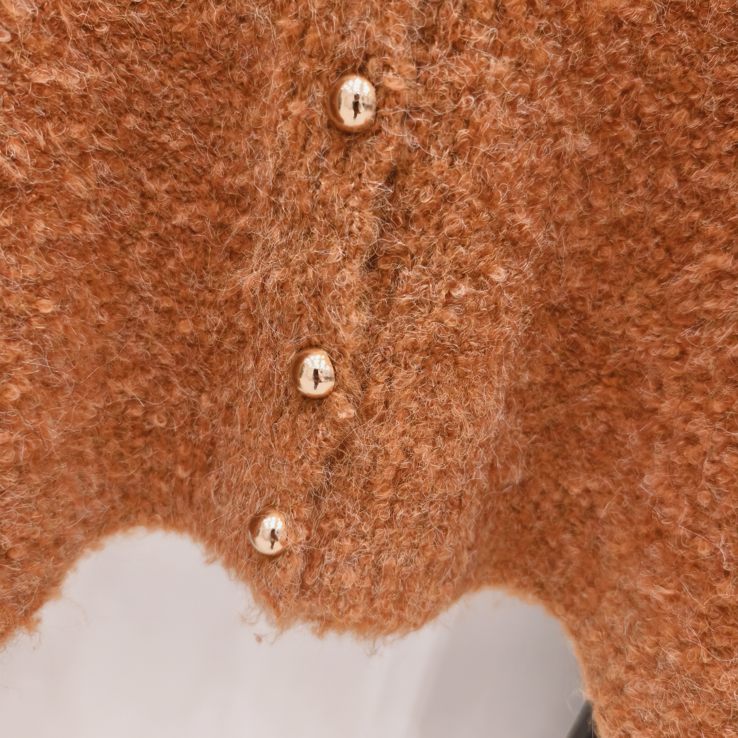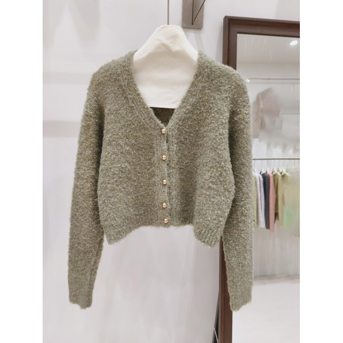 小香風奶白色短款針織外套女金色釦外穿肌理感洋氣圈圈紗毛衣開衫