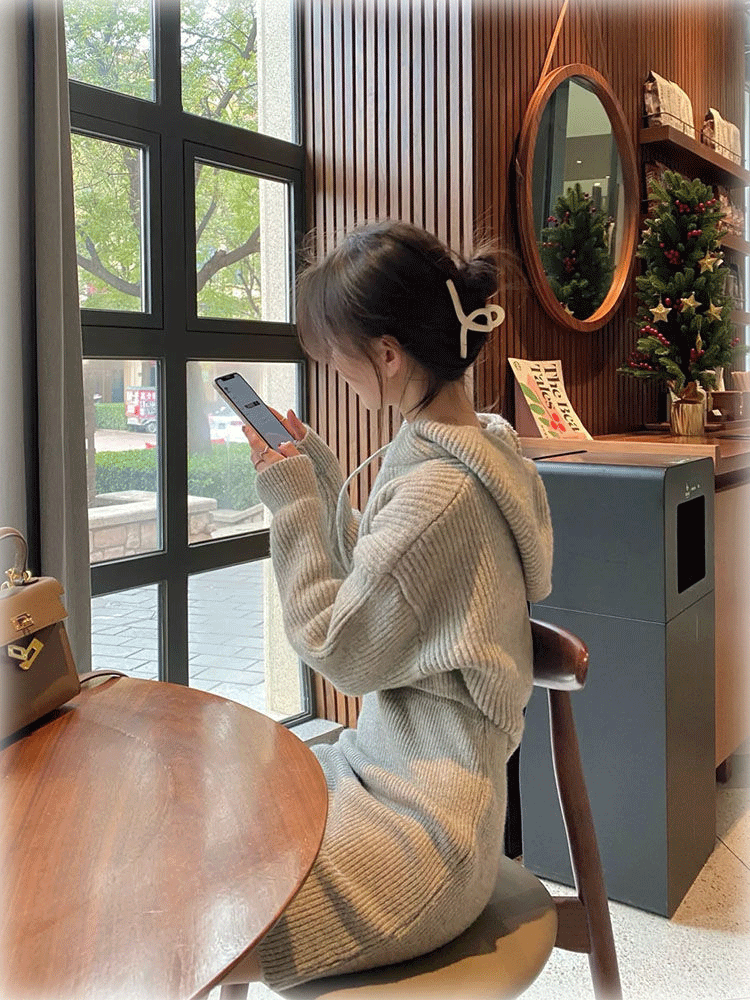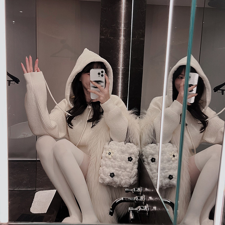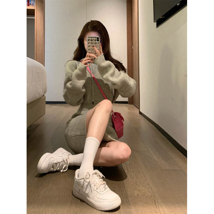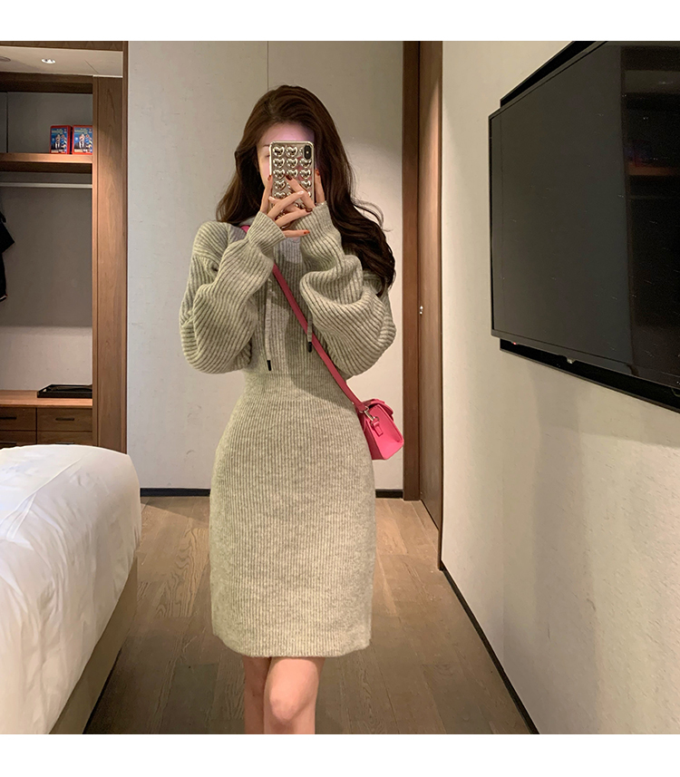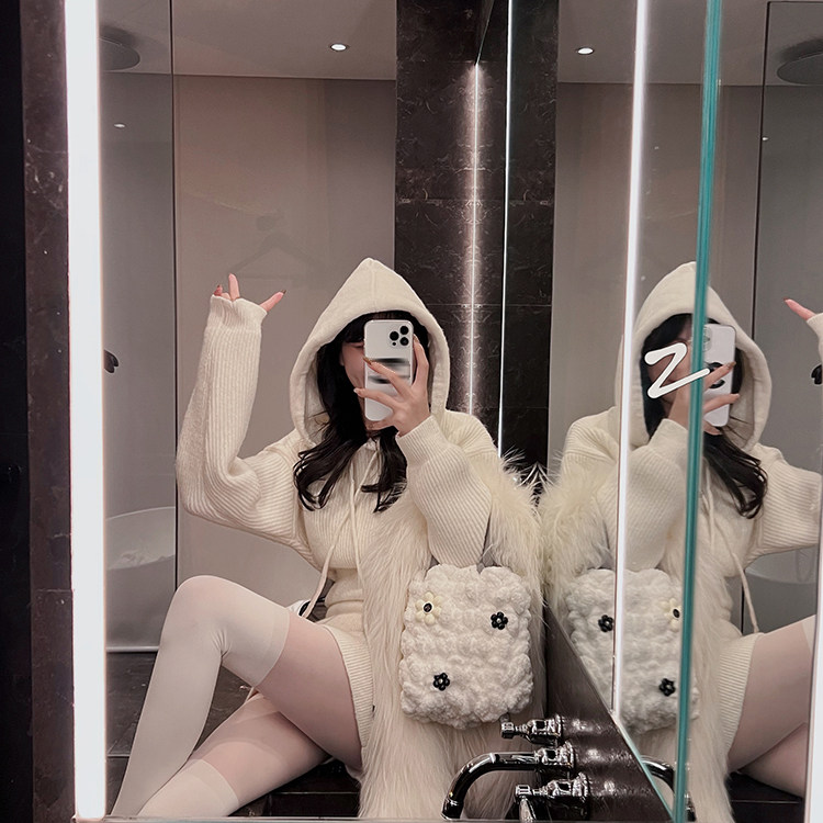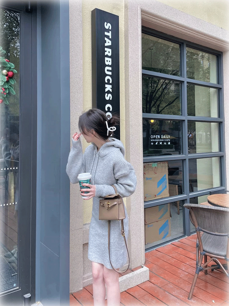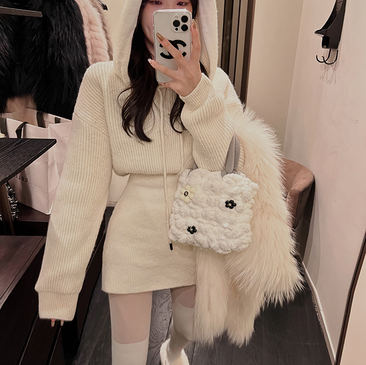 法式復古連帽加厚針織毛衣連衣裙女冬季2025新款減齡包臀短款裙子