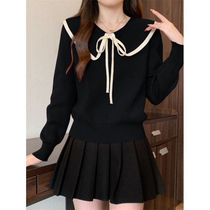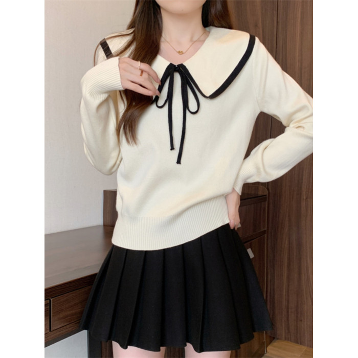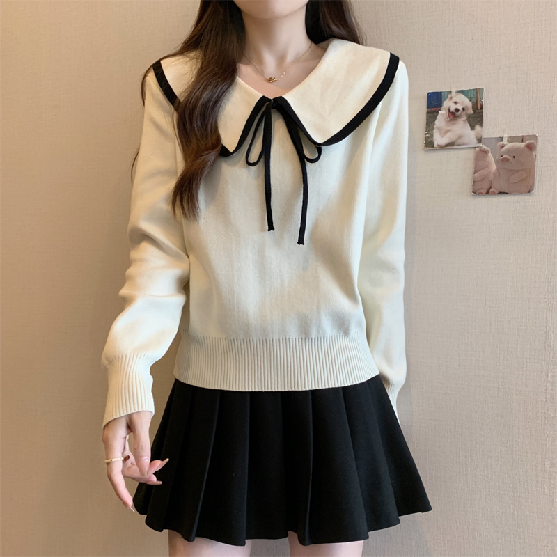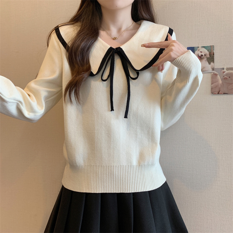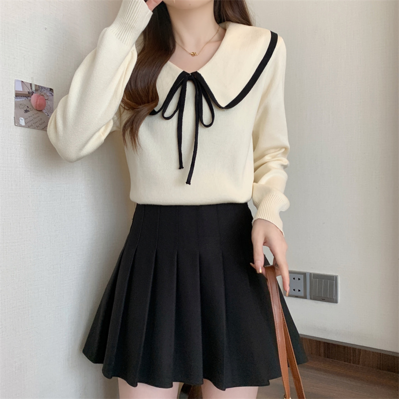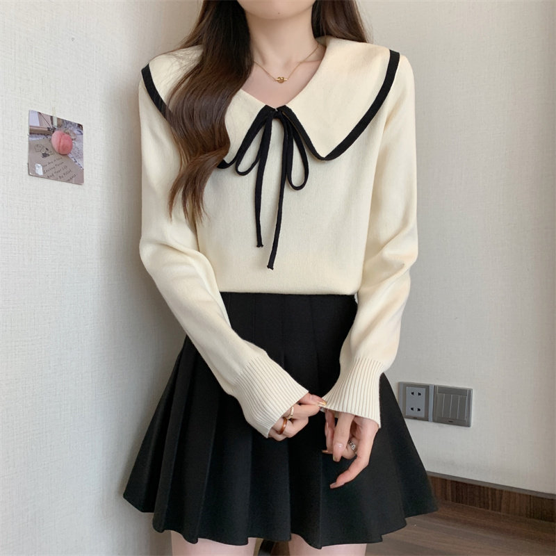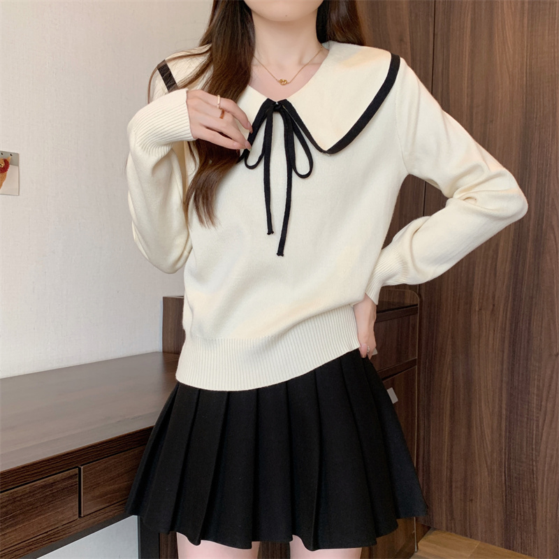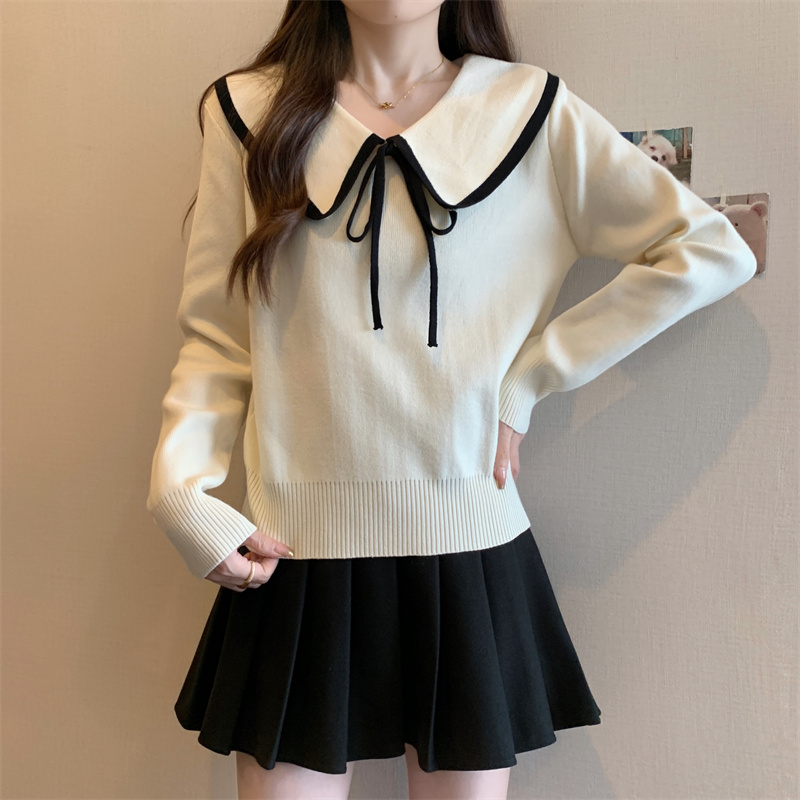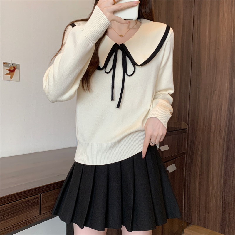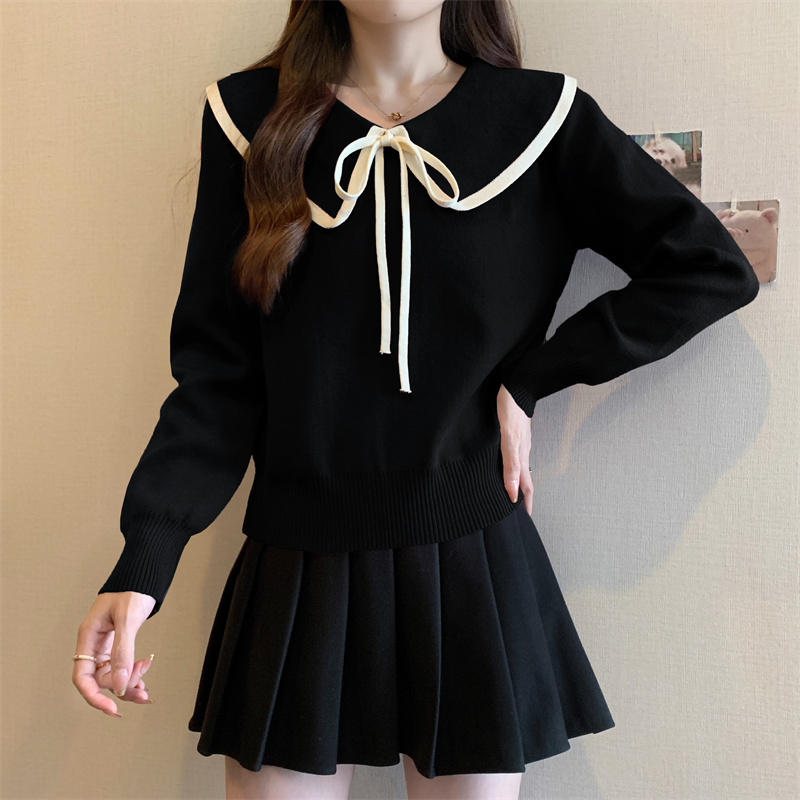 秋冬新款大碼女裝胖mm顯瘦遮肉洋氣娃娃領毛衣新年紅色打底針織衫