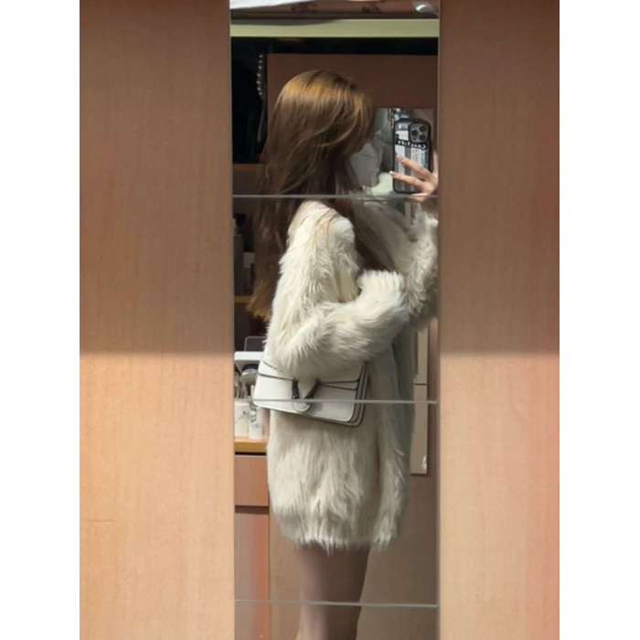 軟糯奶fufu水貂毛開衫毛衣外套女加厚寬松慵懶風溫柔氣質針織上衣