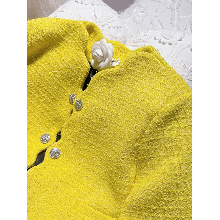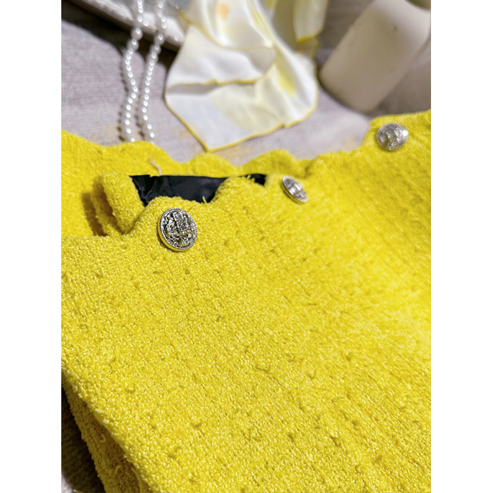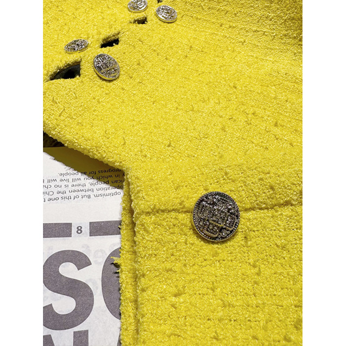 FFmiss◆小香風雙排釦羊毛呢波浪邊短外套女設計感黃色粗花呢西裝