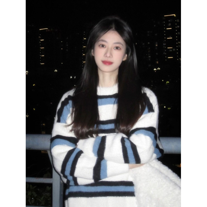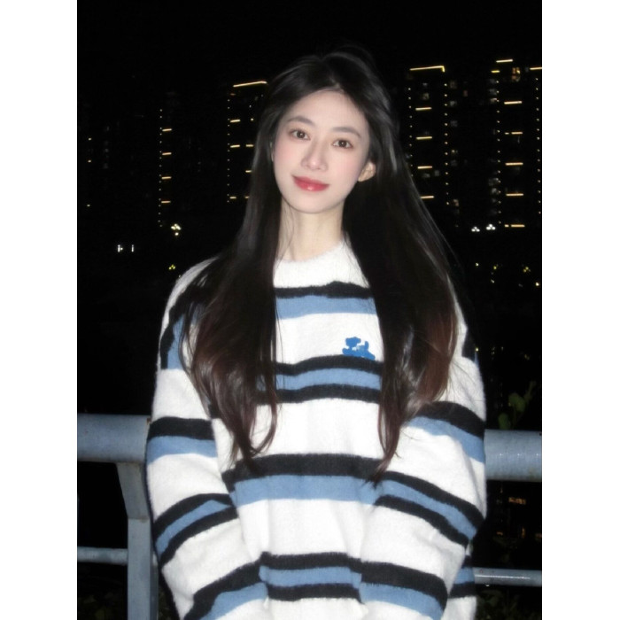 撞色條紋水貂絨毛衣女秋冬加厚寬松慵懶針織打底衫軟糯馬海毛上衣