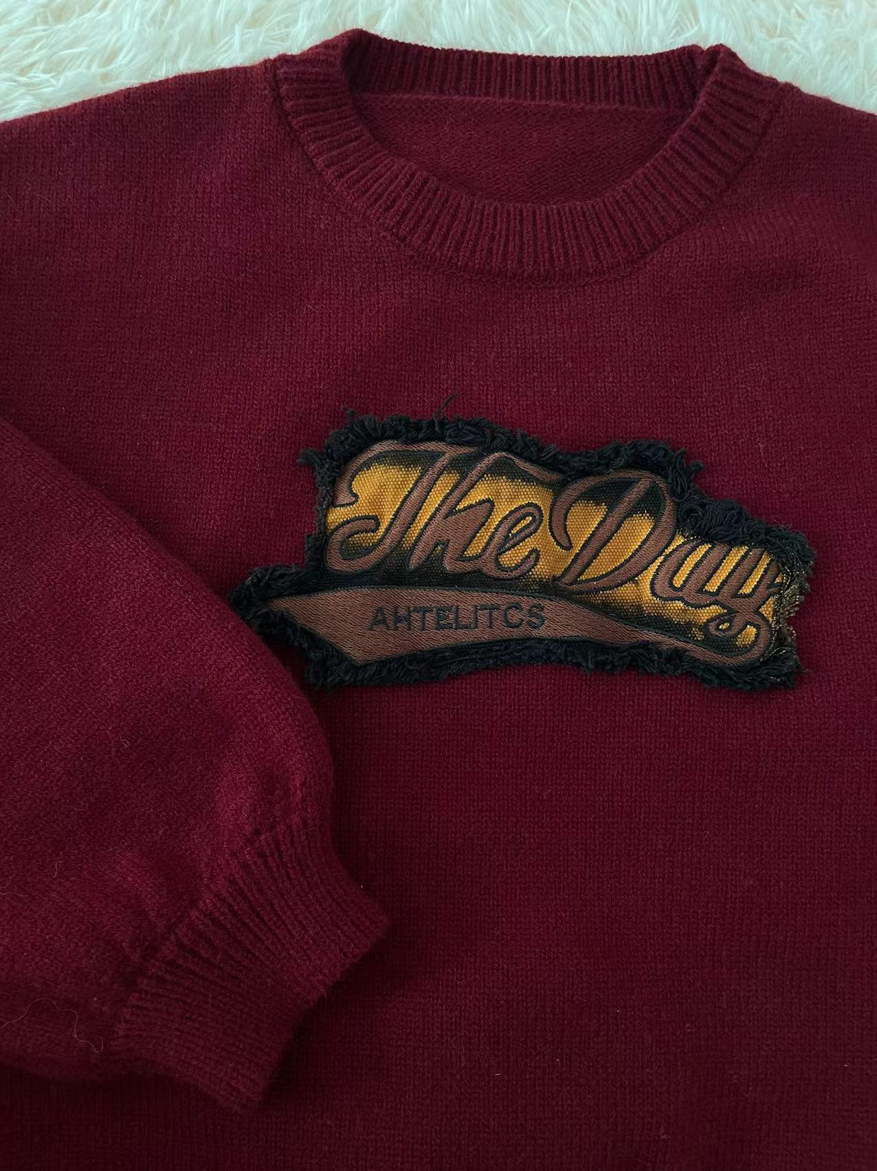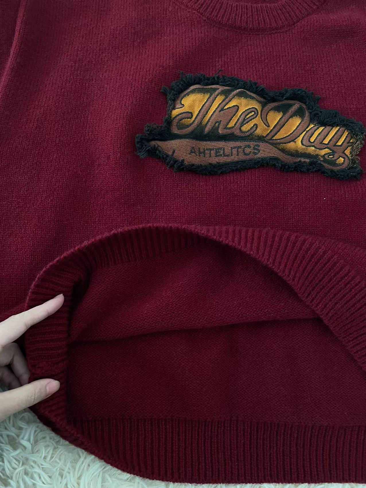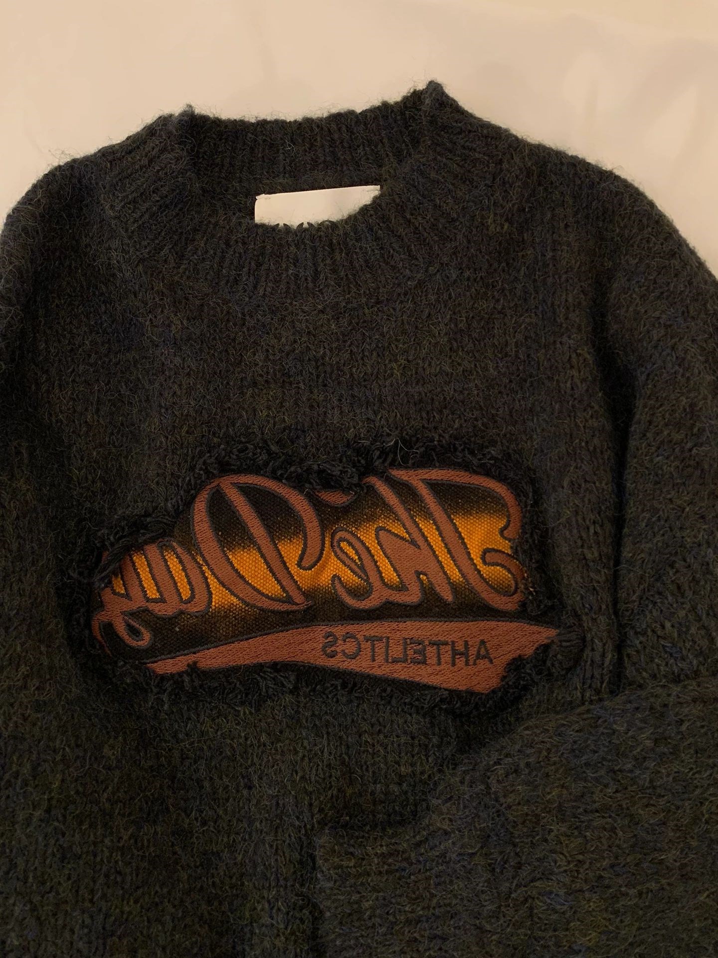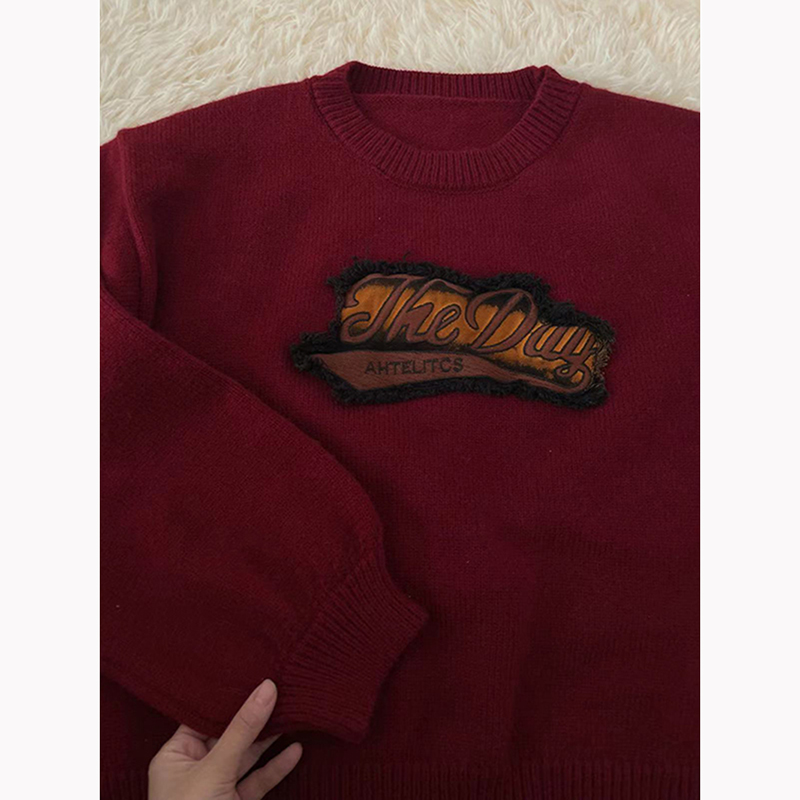 美式復古慵懶風黑色字母浣熊絨毛衣女秋冬軟糯設計感套頭針織上衣