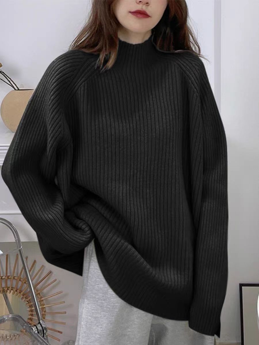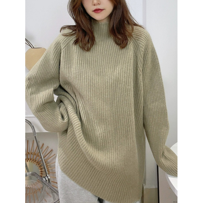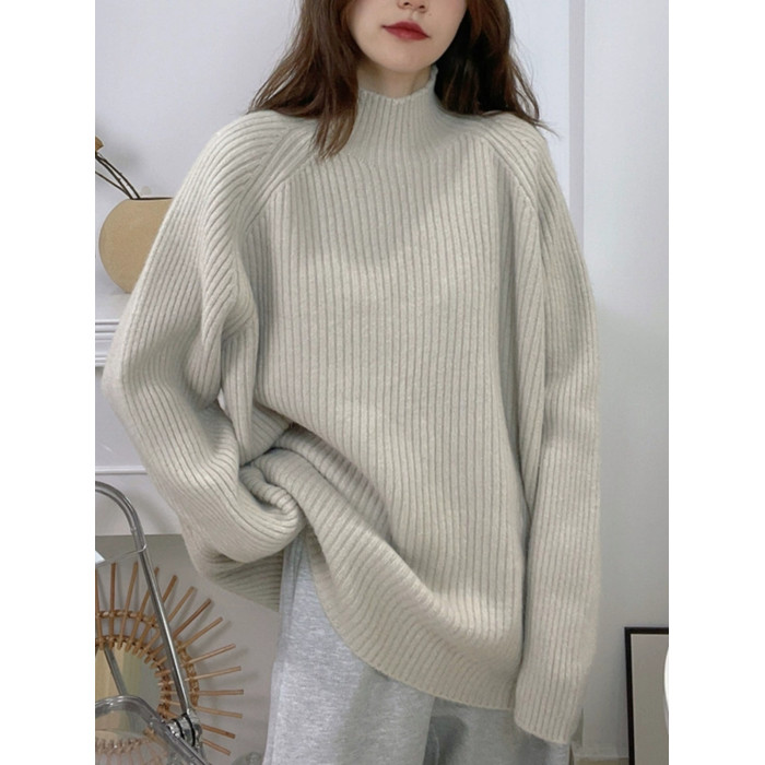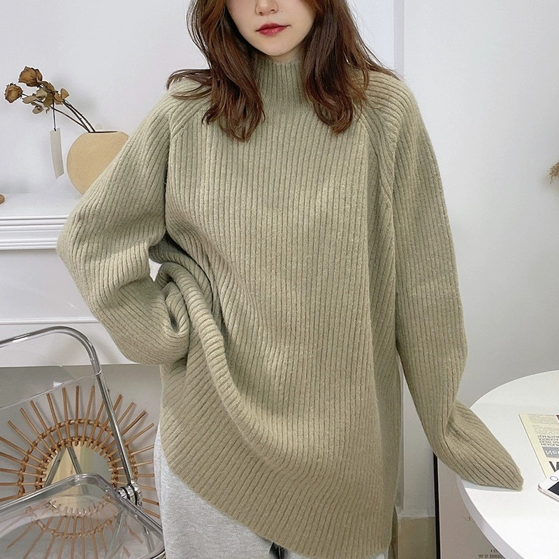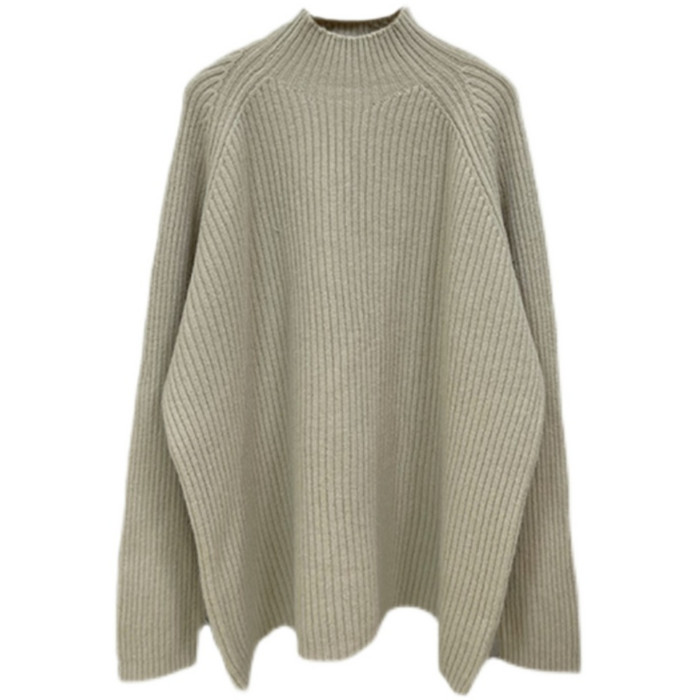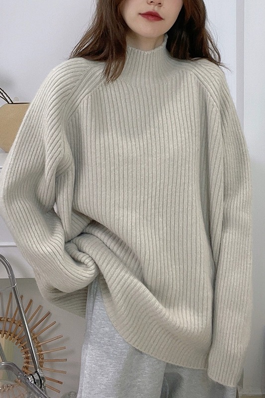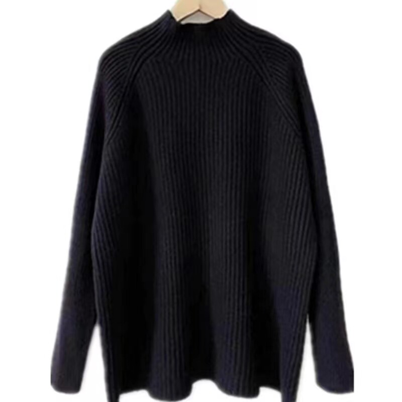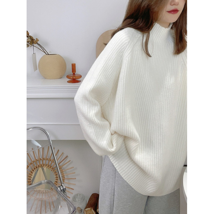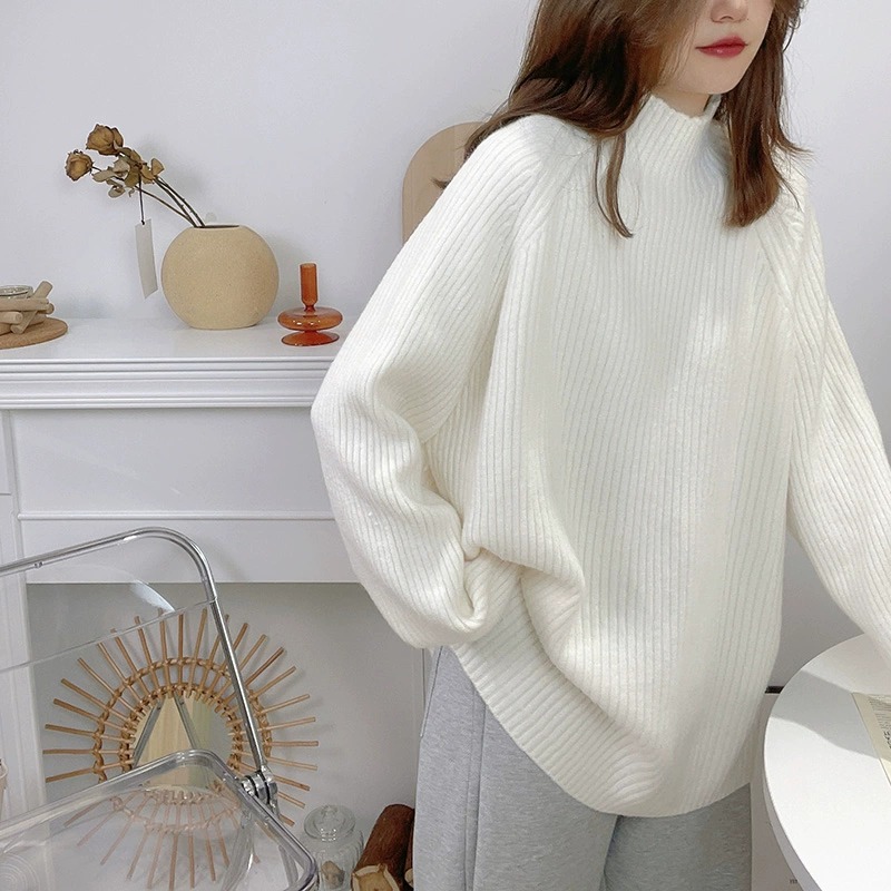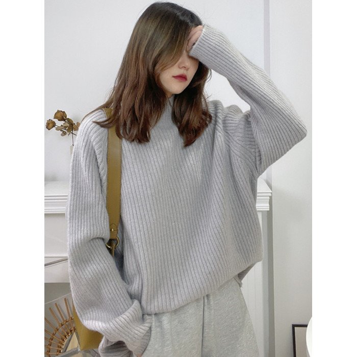 半高領毛衣女加厚冬季韓版寬松慵懶風軟糯坑條內搭打底針織衫外穿