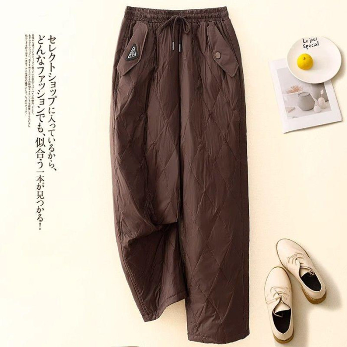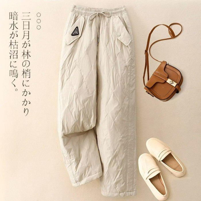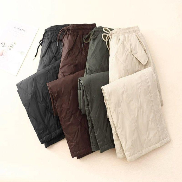 時尚輕便防風羽絨棉褲女士冬季新款高腰顯瘦洋氣休閒直筒加棉長褲
