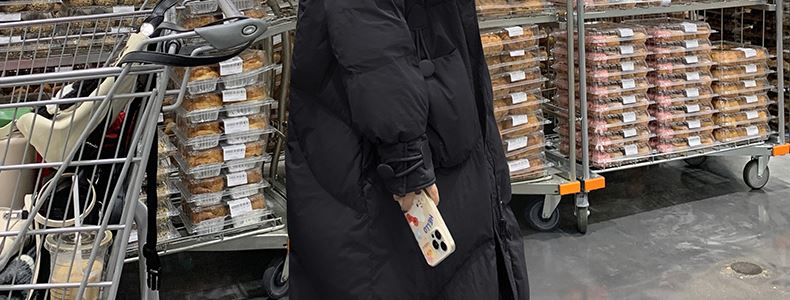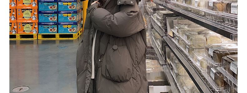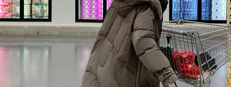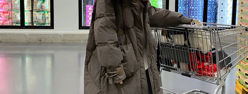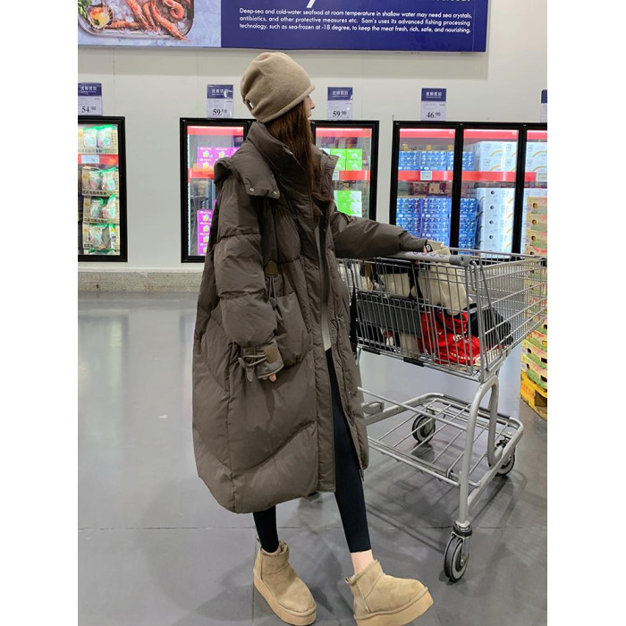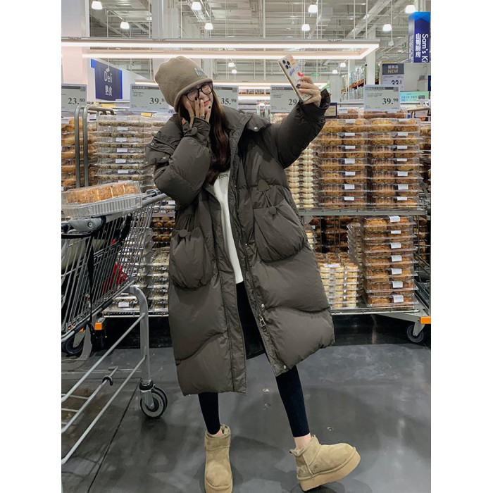 灰色羽絨棉服女冬季2025新款寬松時尚加厚長款過膝保暖厚棉襖外套
