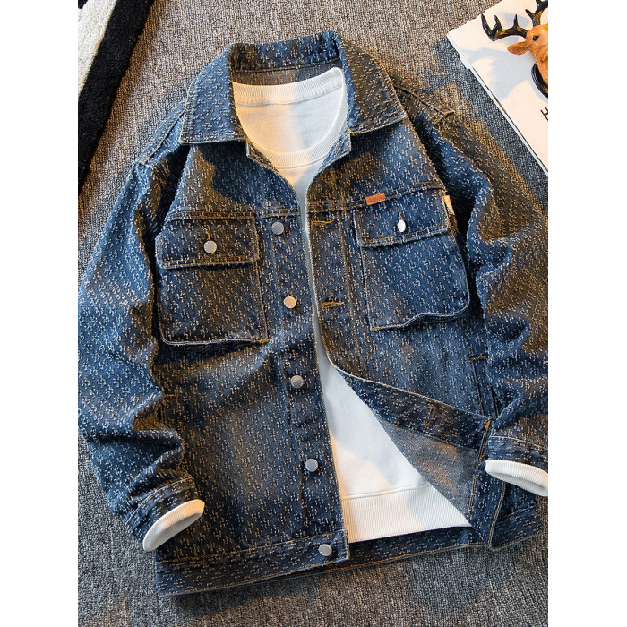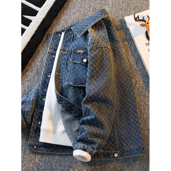 HPCP重工貓爪鉤花牛仔外套男秋季新款高級感潮牌男士痞帥工裝夾克