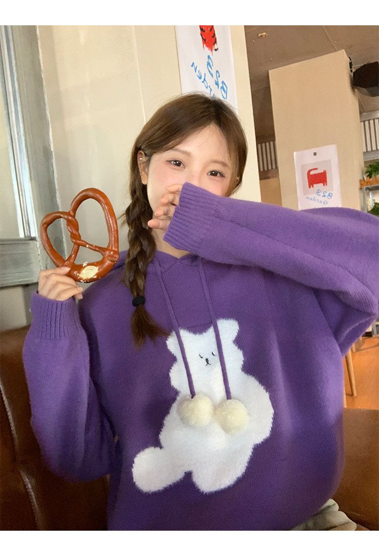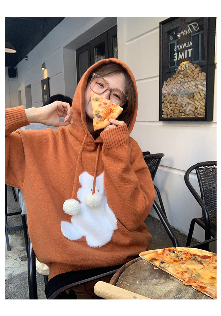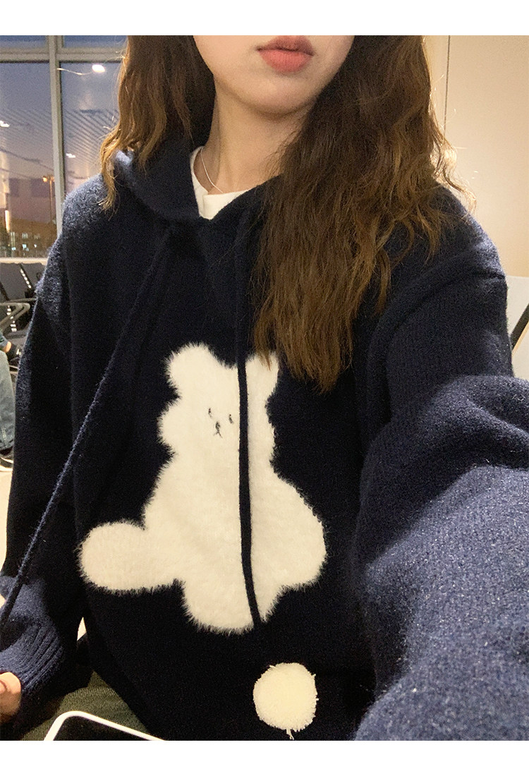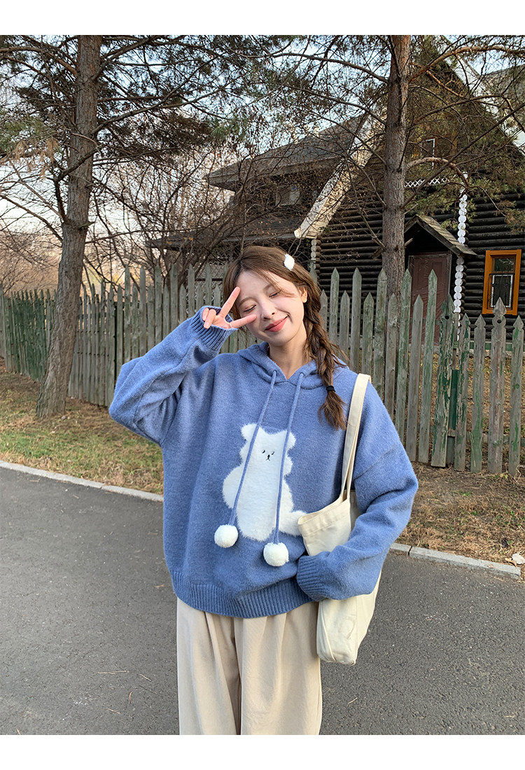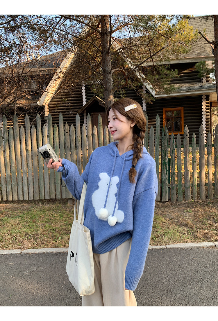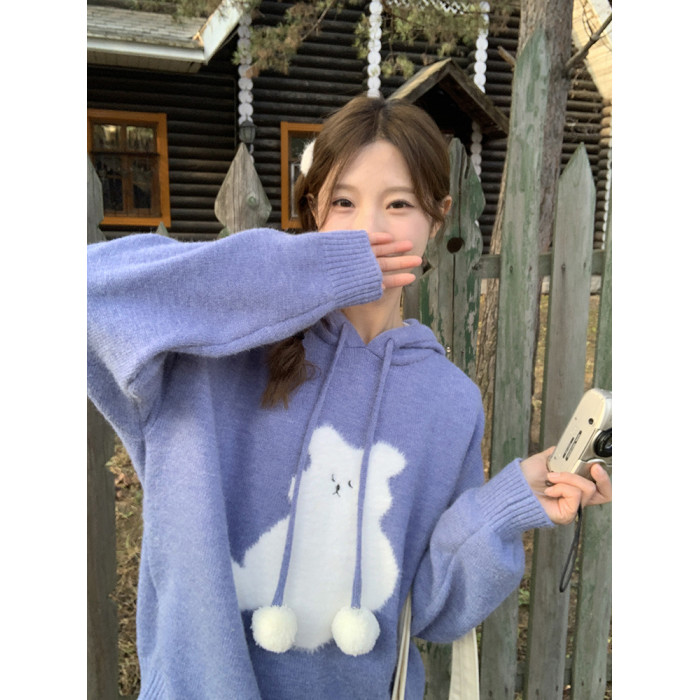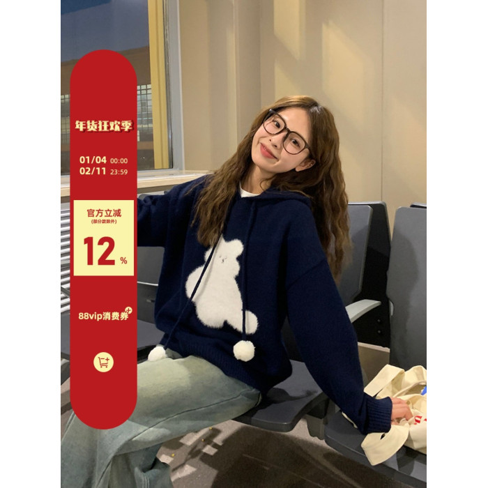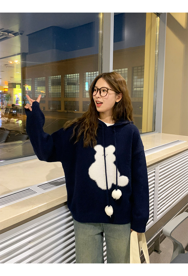 陸小團團卡通連帽長袖毛衣韓系冬季新款氣質顯瘦氛圍感寬鬆上衣女