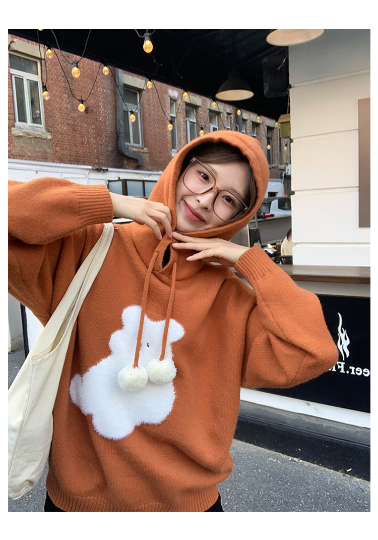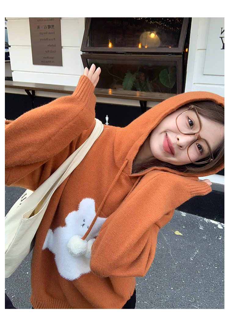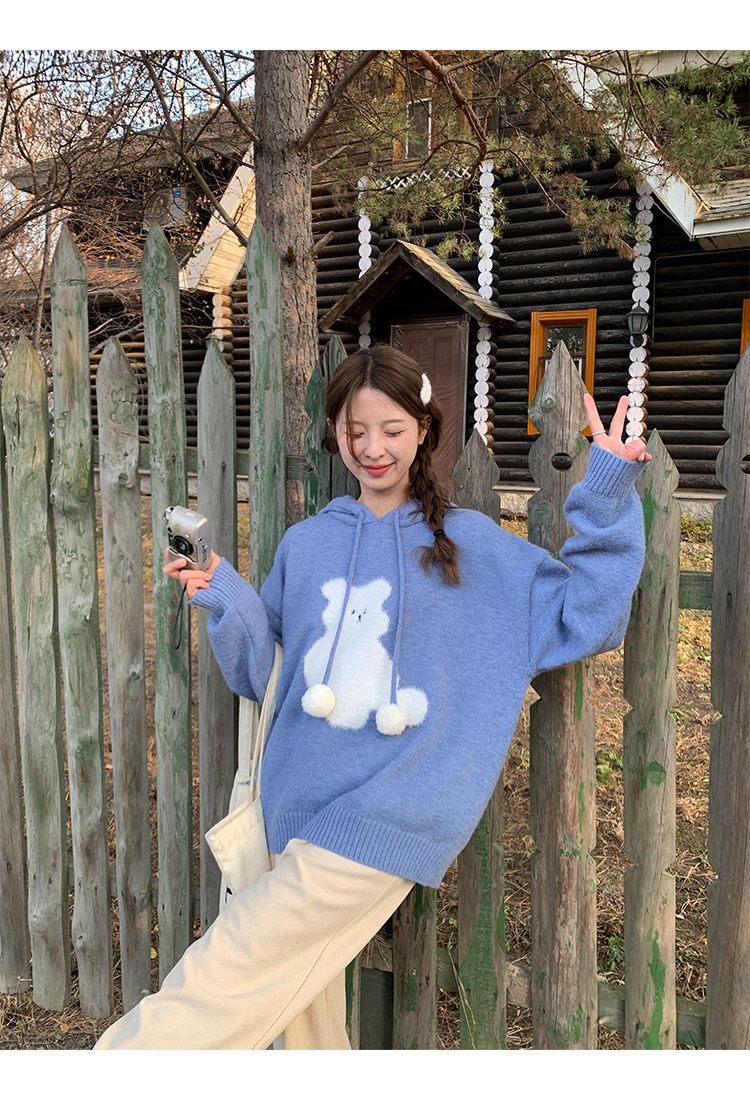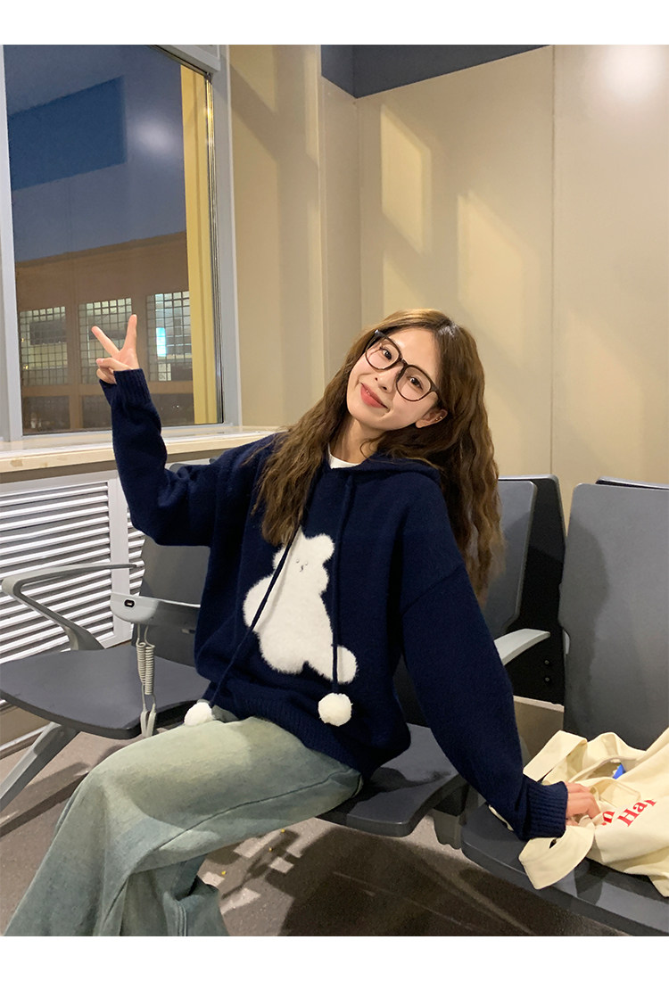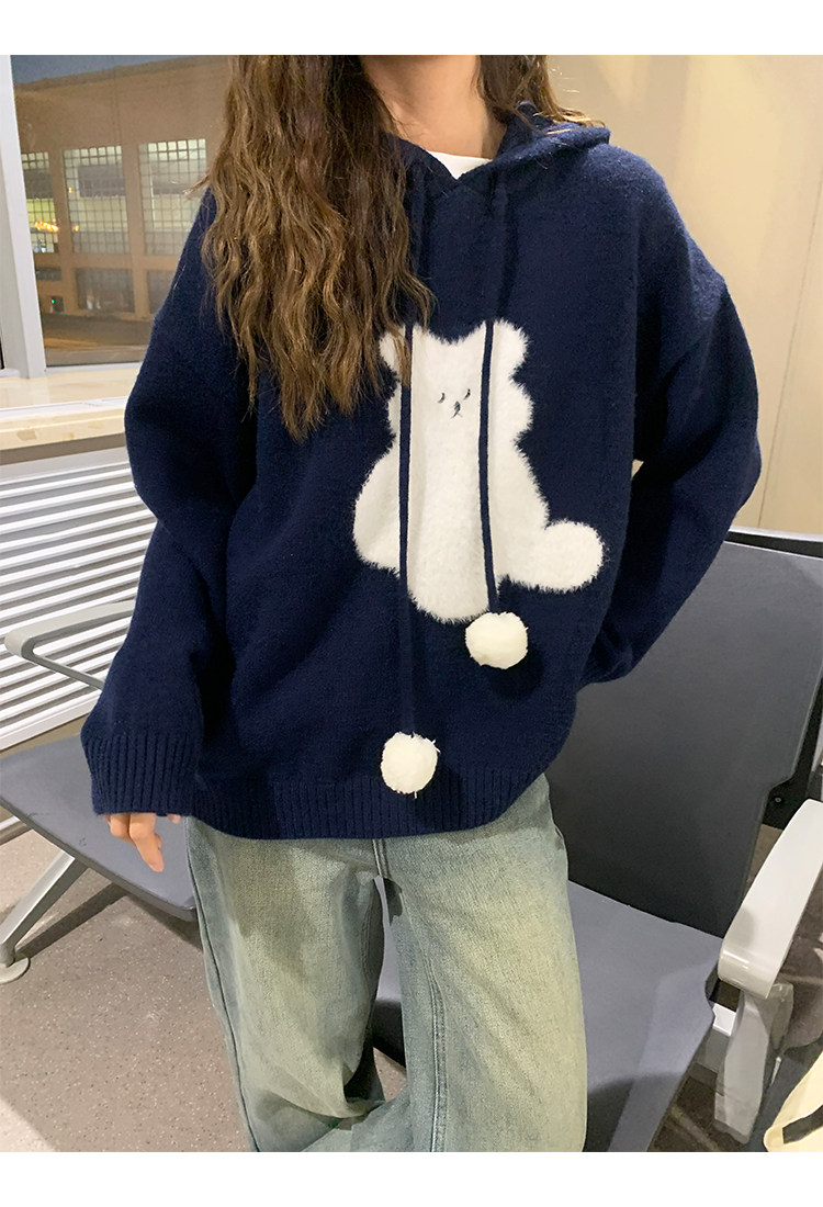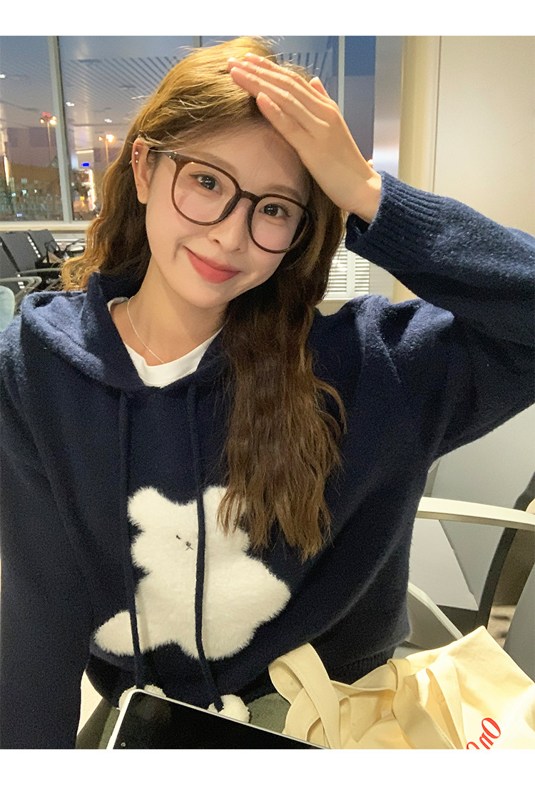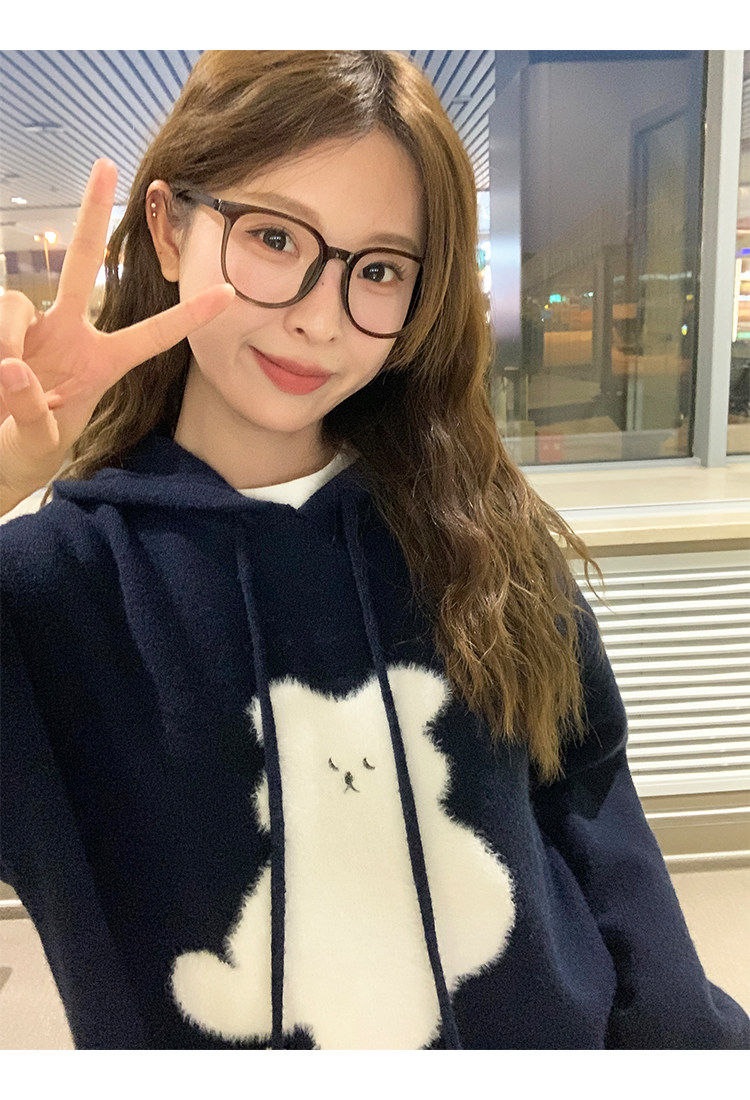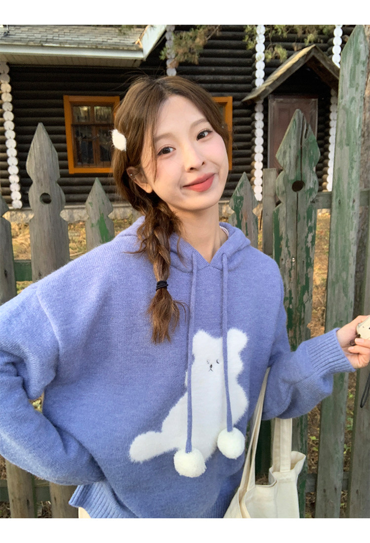 陸小團團卡通連帽長袖毛衣韓系冬季新款氣質顯瘦氛圍感寬鬆上衣女
