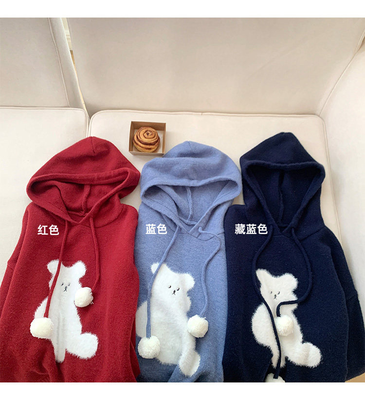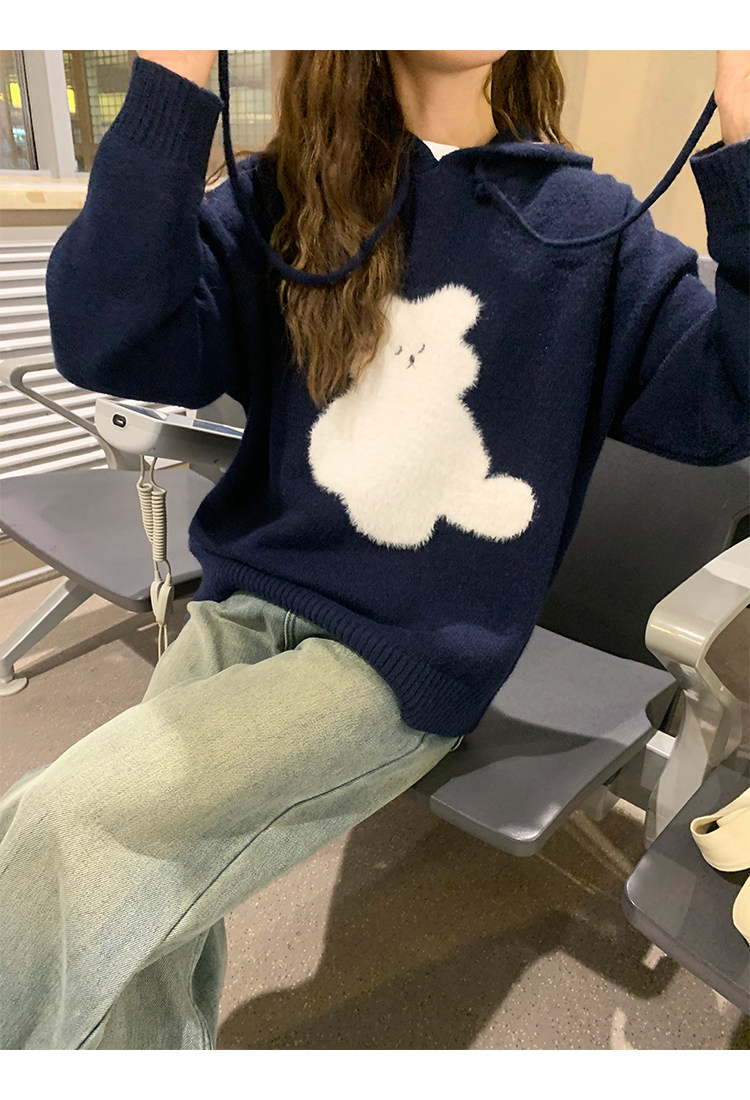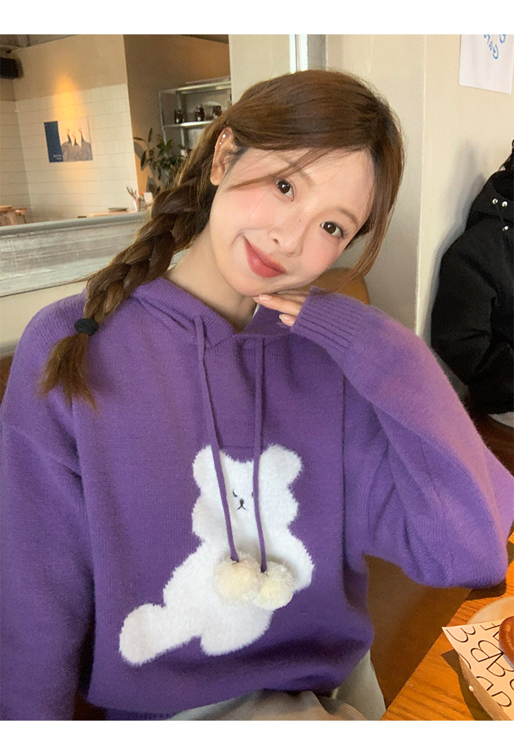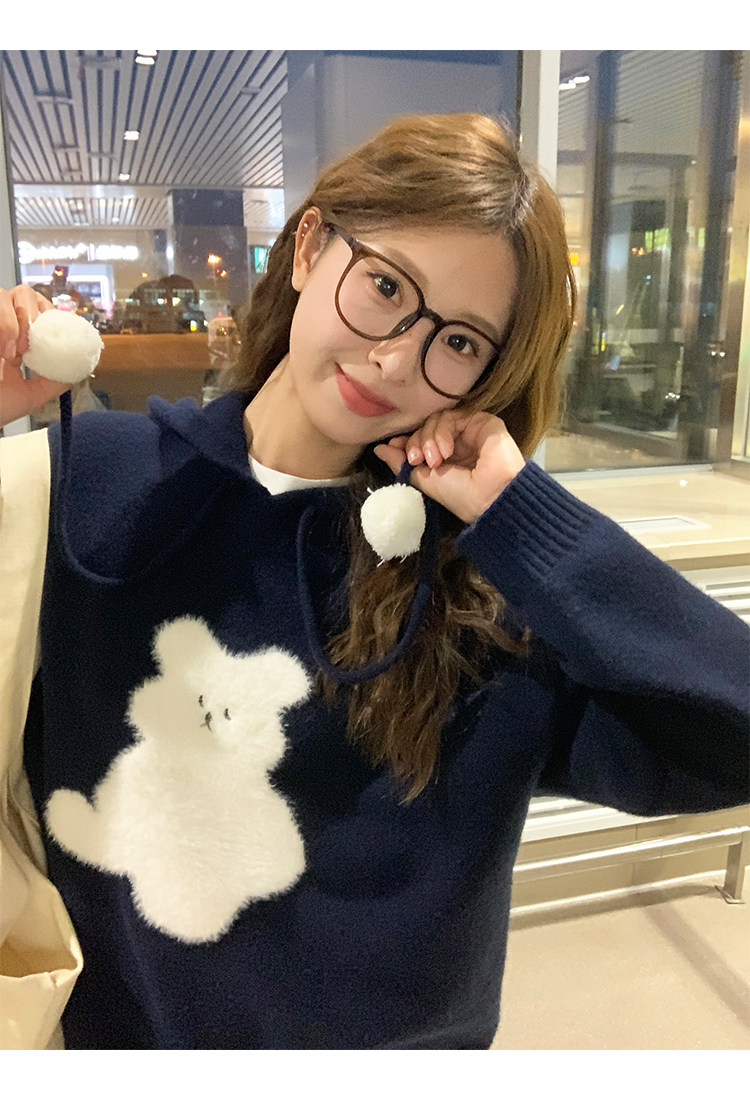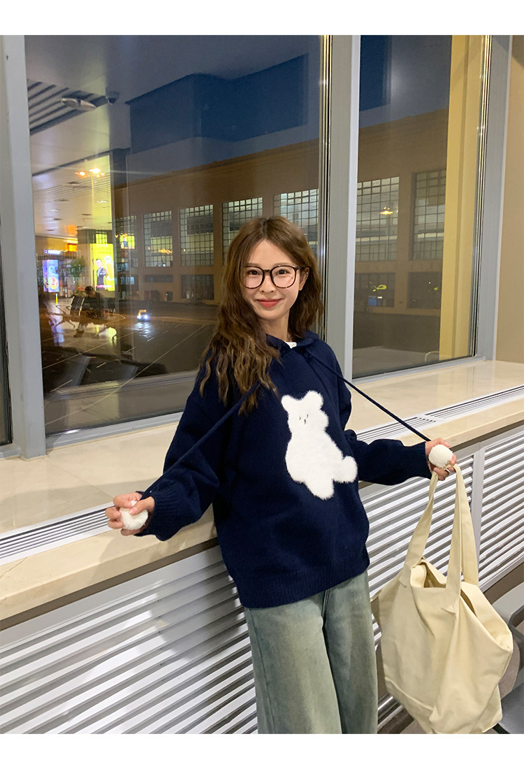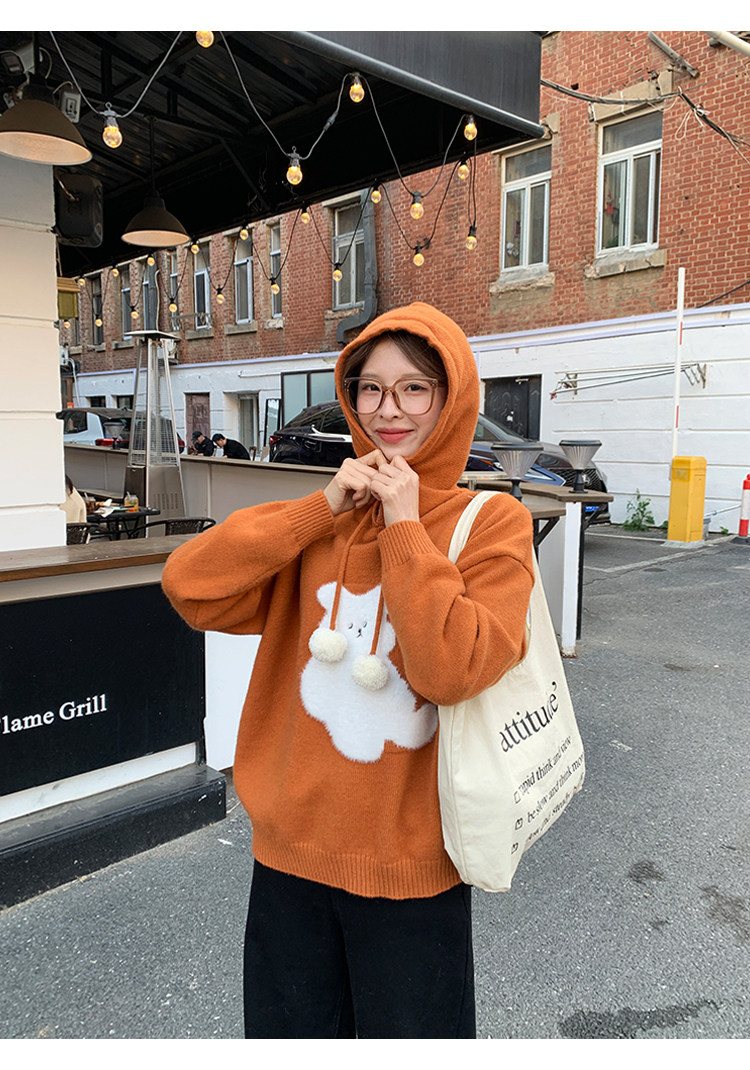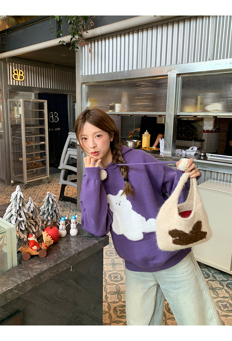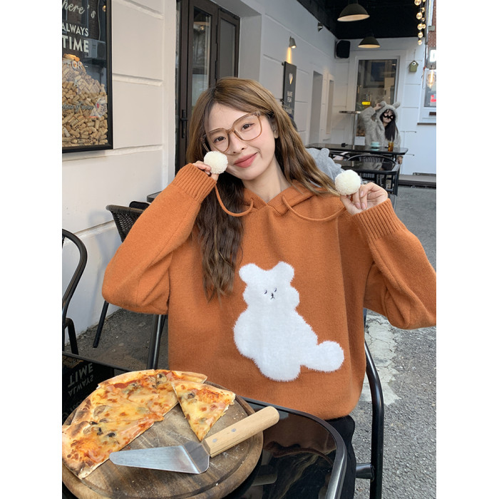 陸小團團卡通連帽長袖毛衣韓系冬季新款氣質顯瘦氛圍感寬鬆上衣女