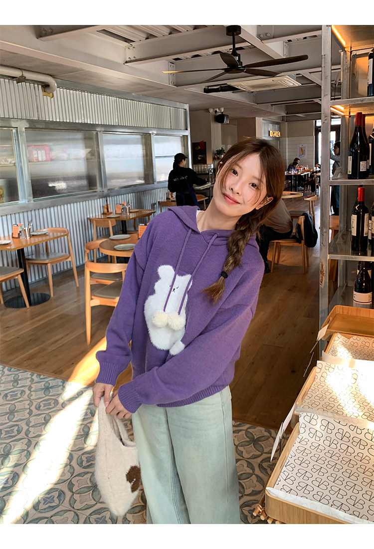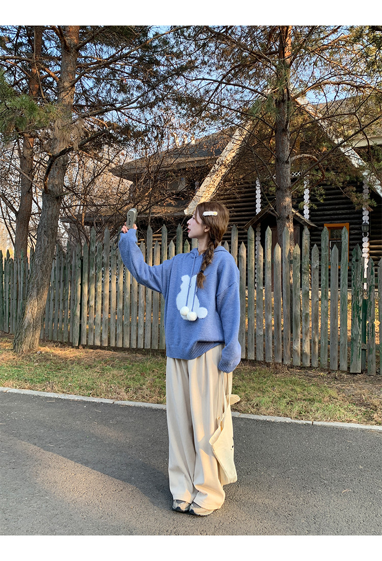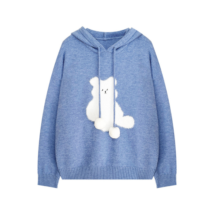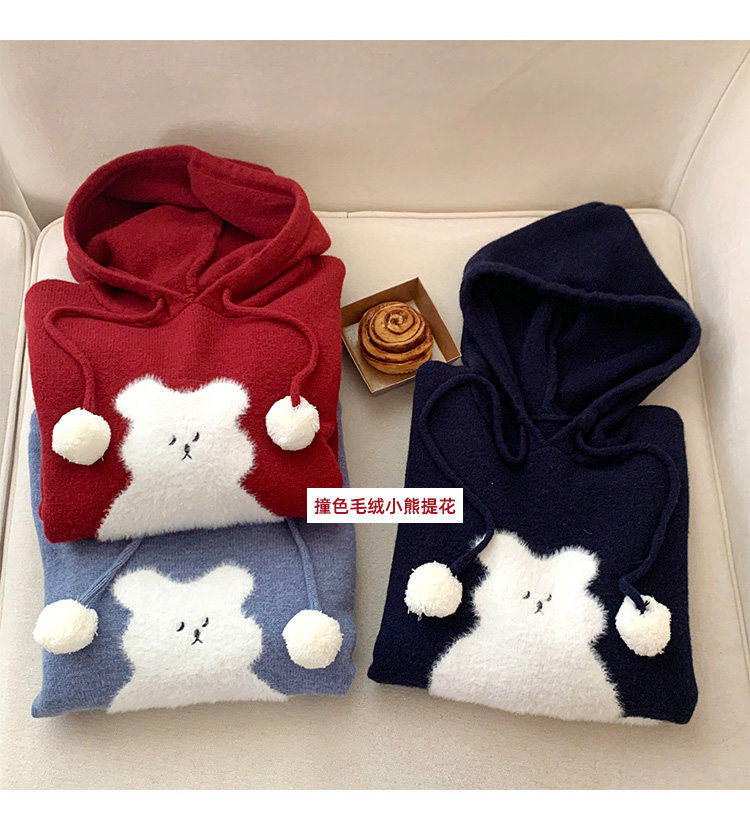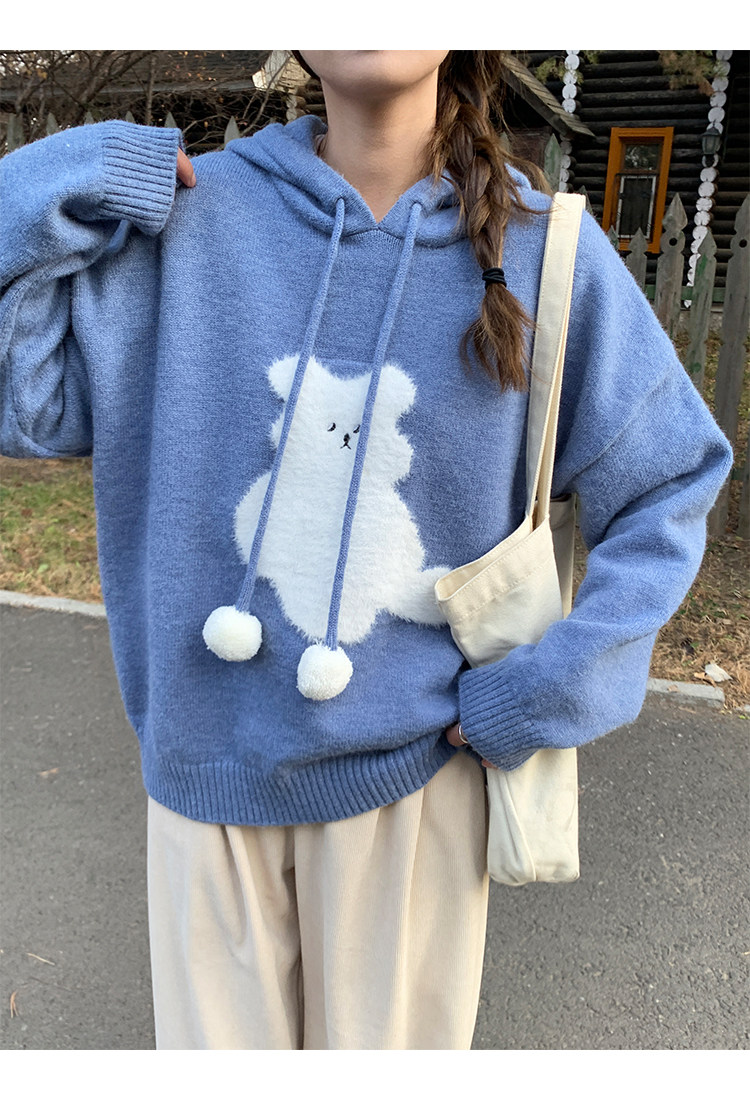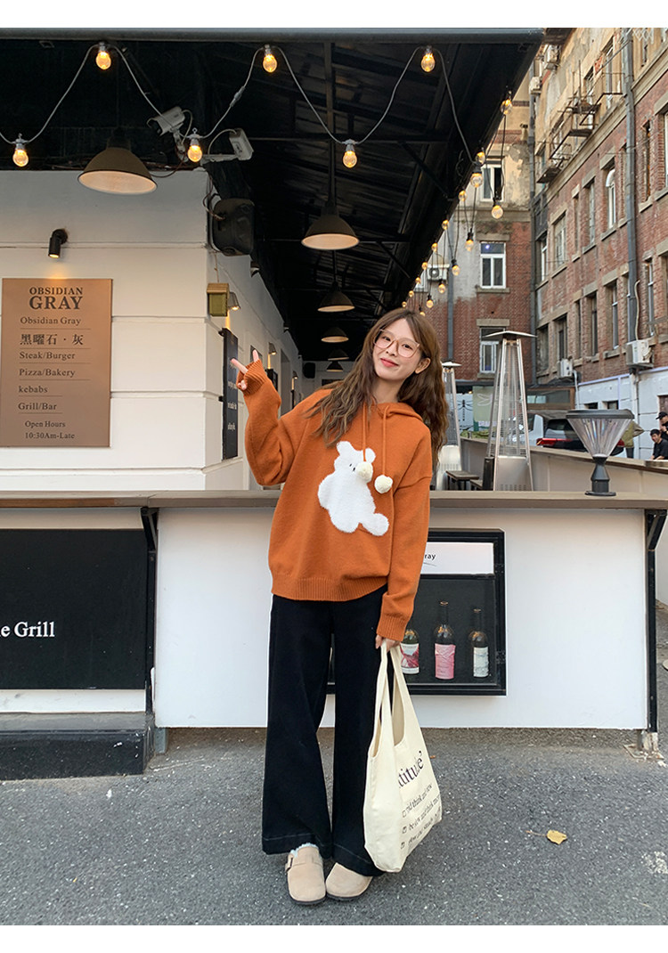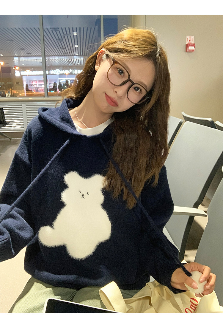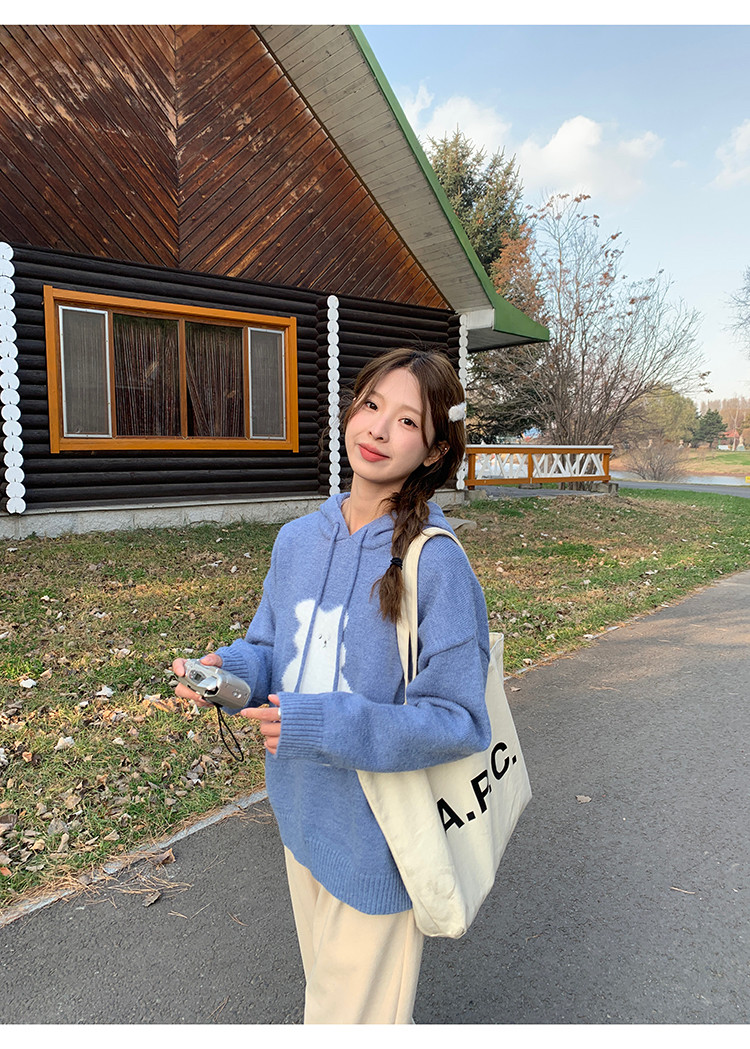 陸小團團卡通連帽長袖毛衣韓系冬季新款氣質顯瘦氛圍感寬鬆上衣女