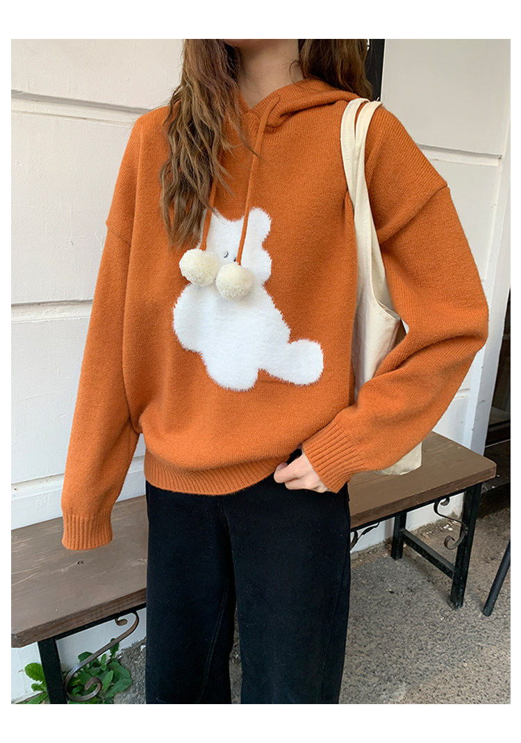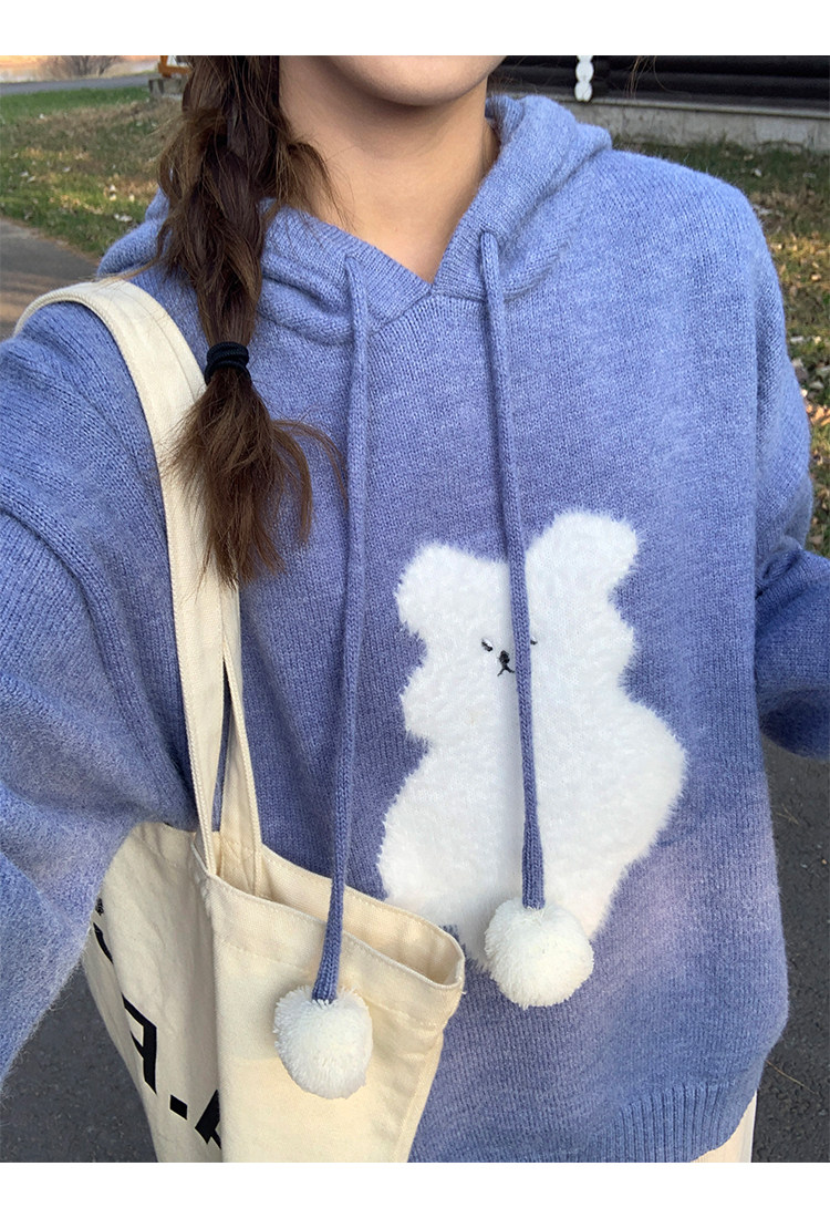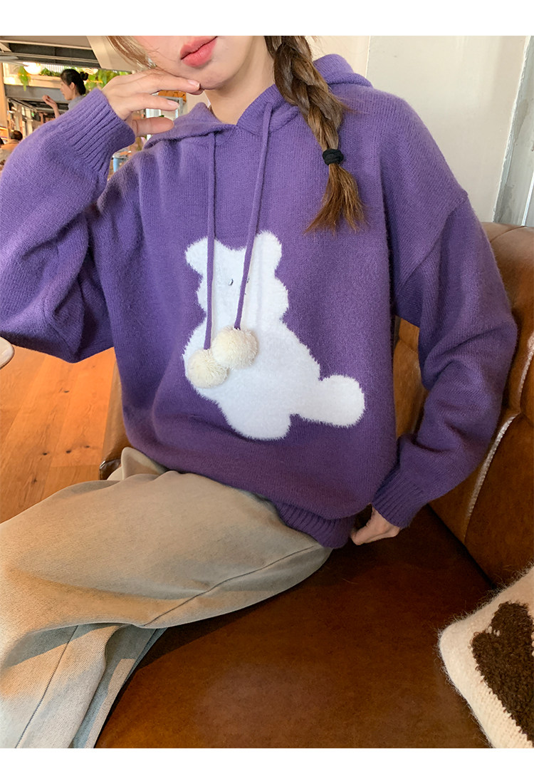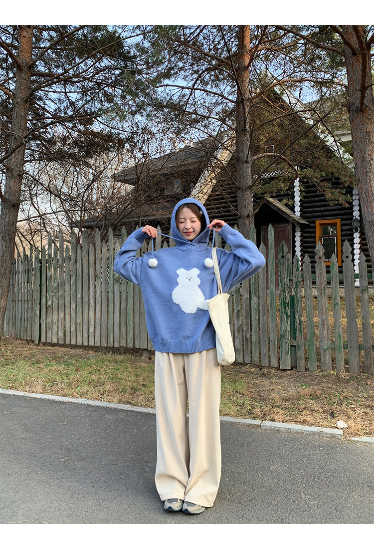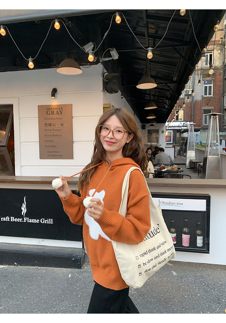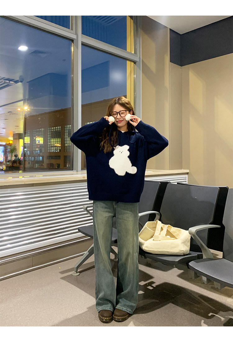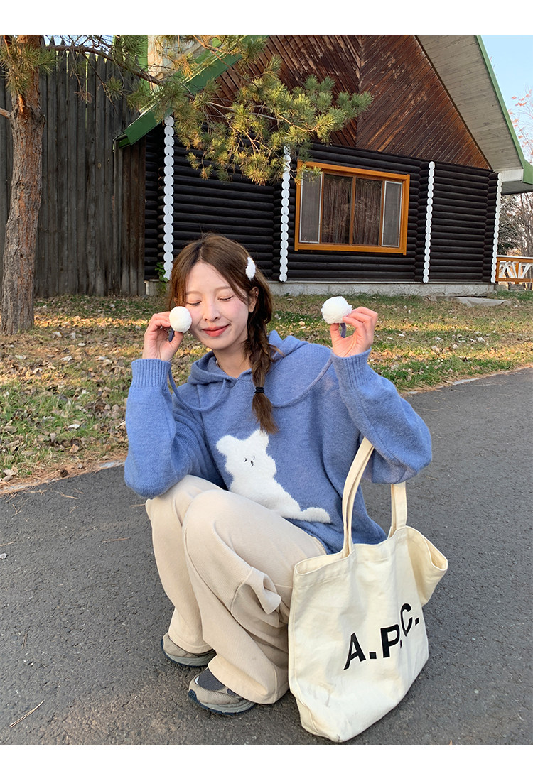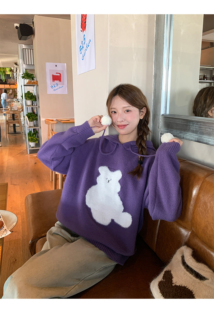 陸小團團卡通連帽長袖毛衣韓系冬季新款氣質顯瘦氛圍感寬鬆上衣女