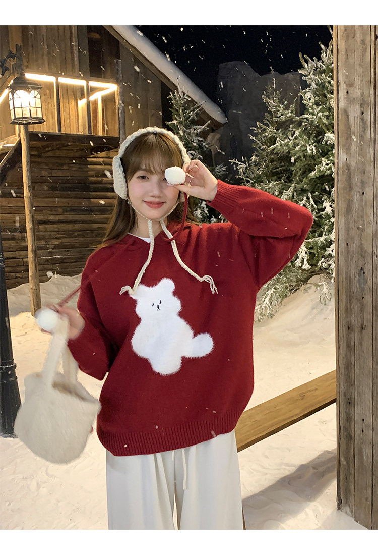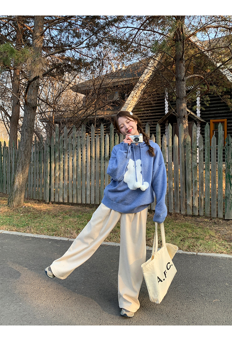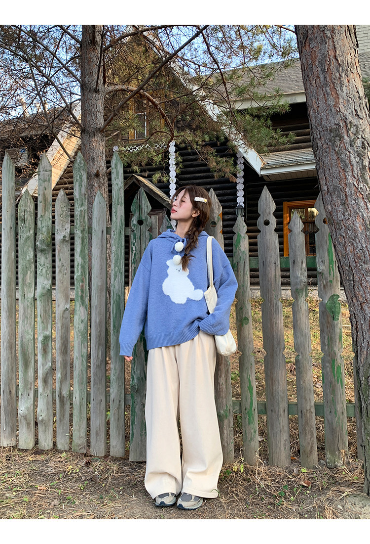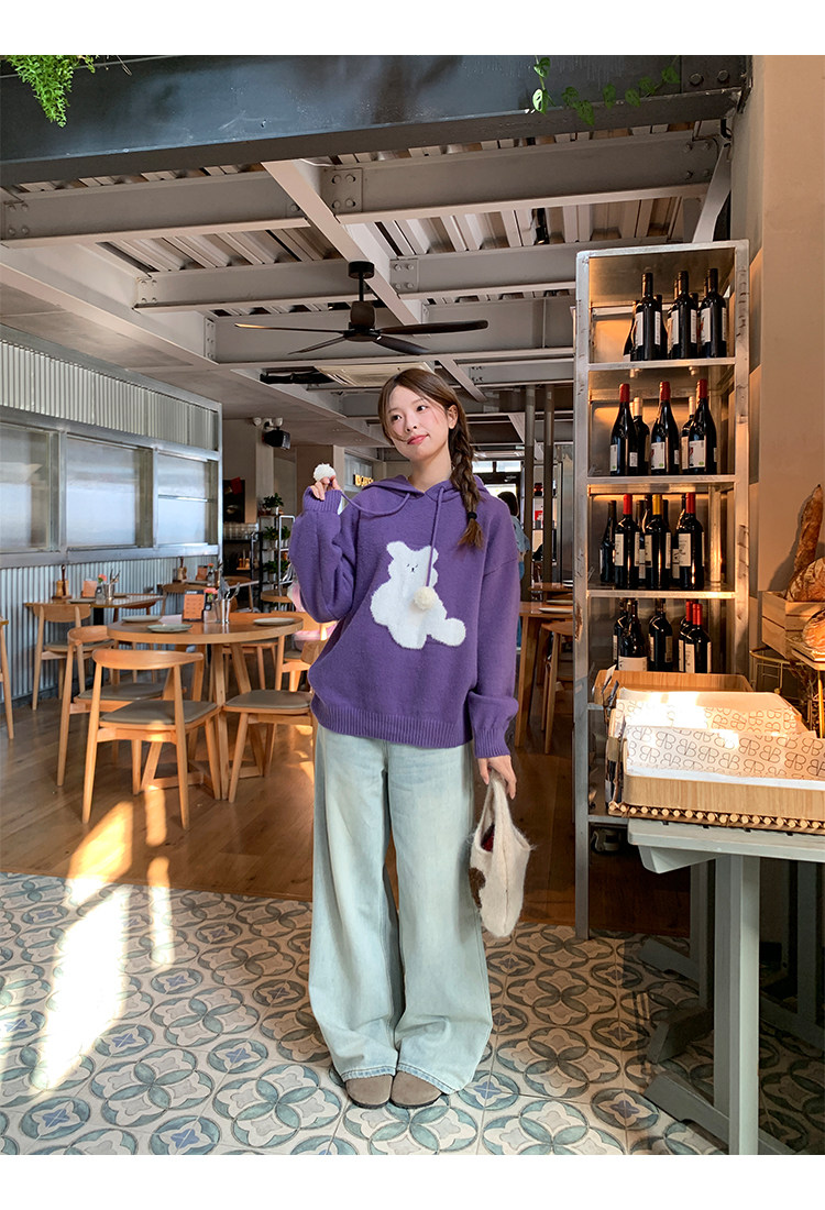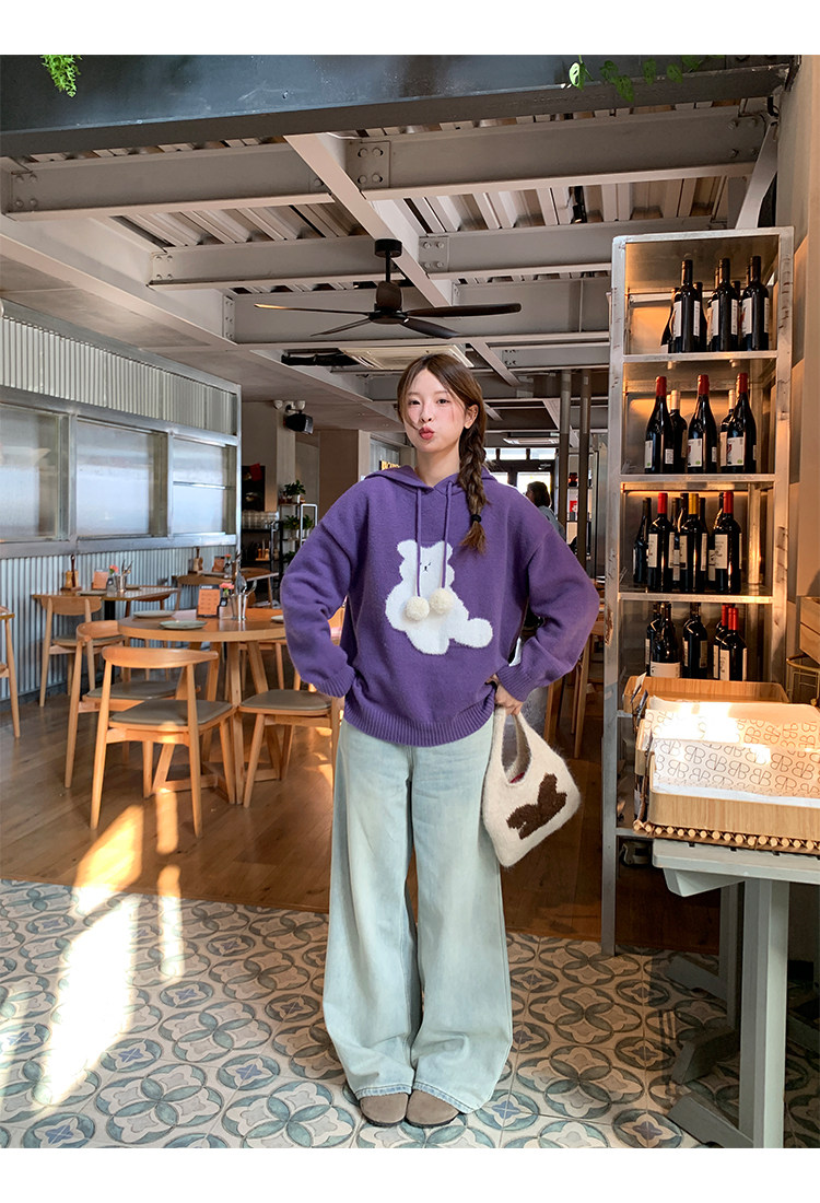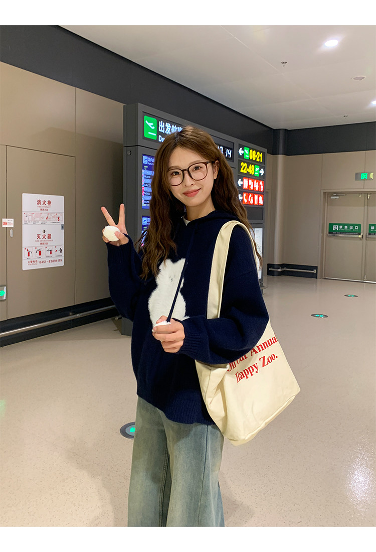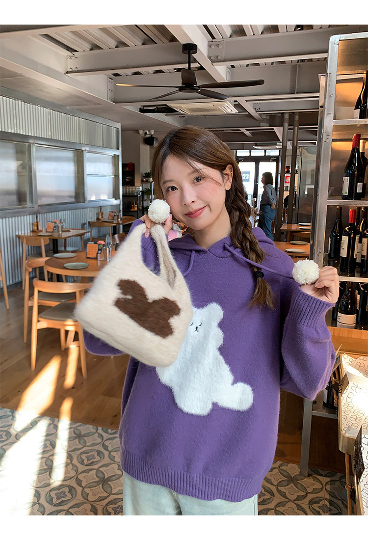 陸小團團卡通連帽長袖毛衣韓系冬季新款氣質顯瘦氛圍感寬鬆上衣女
