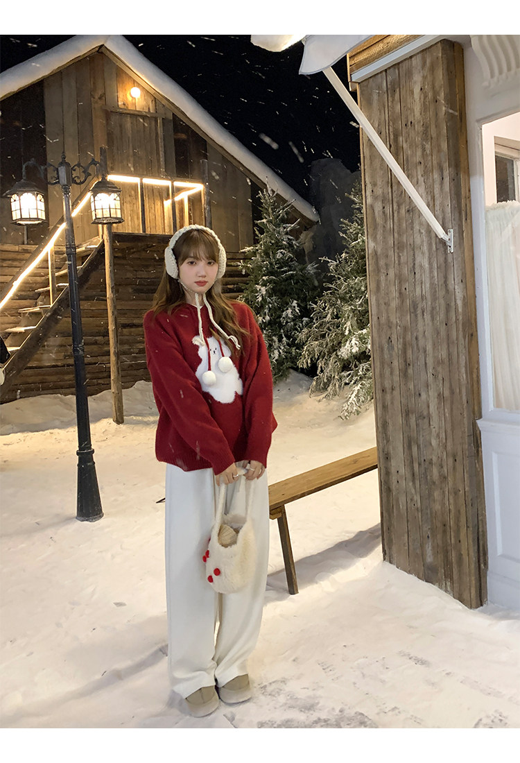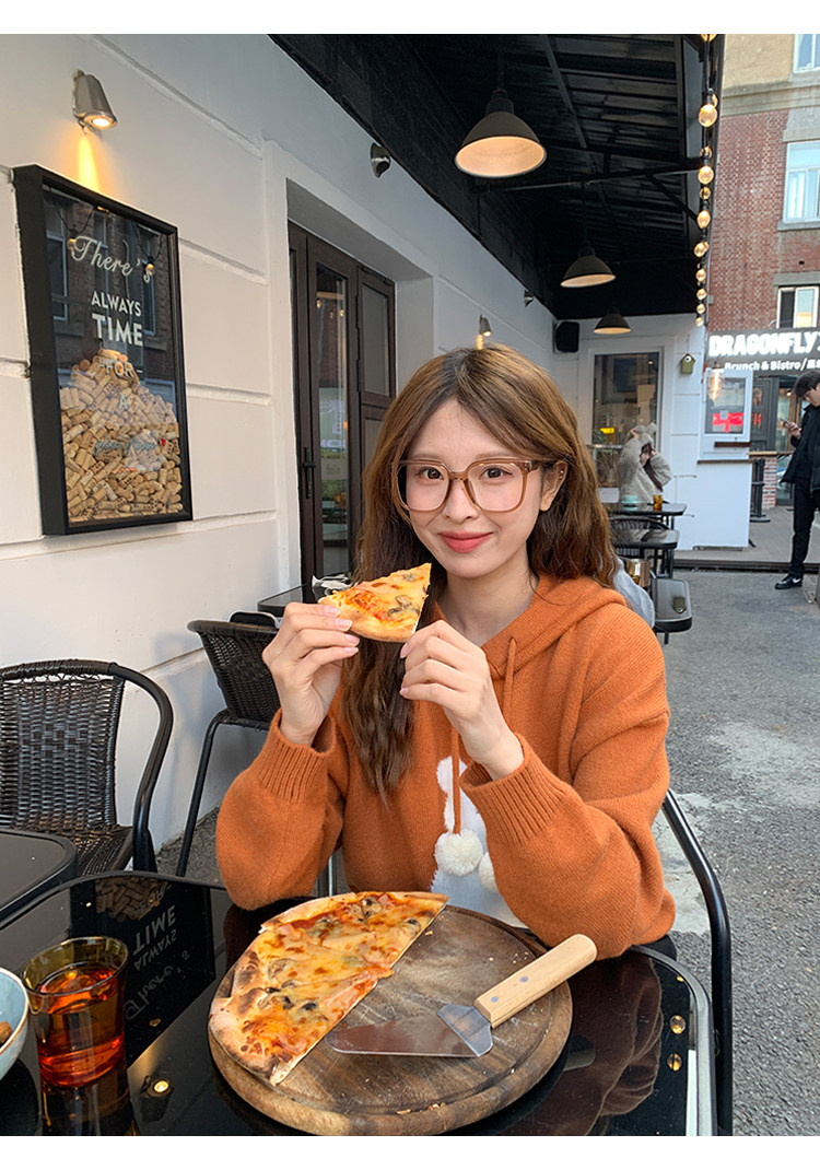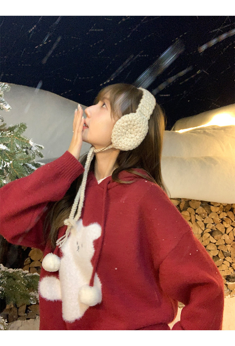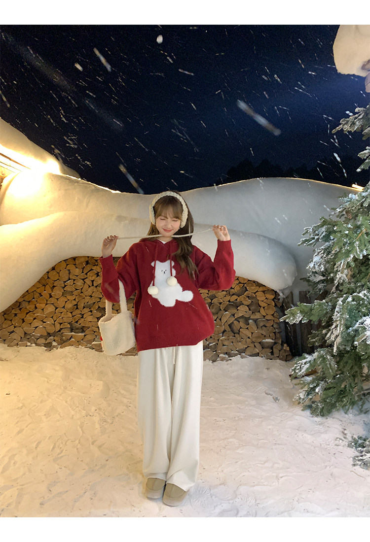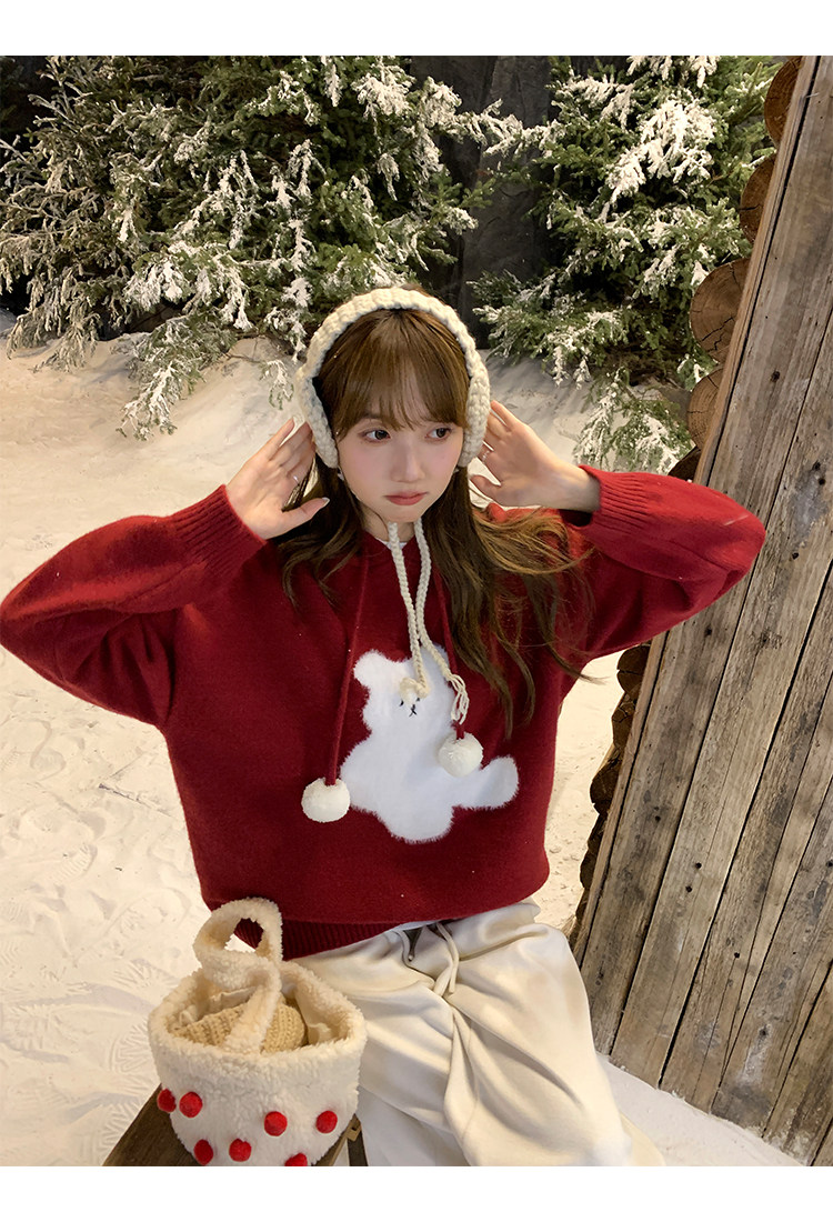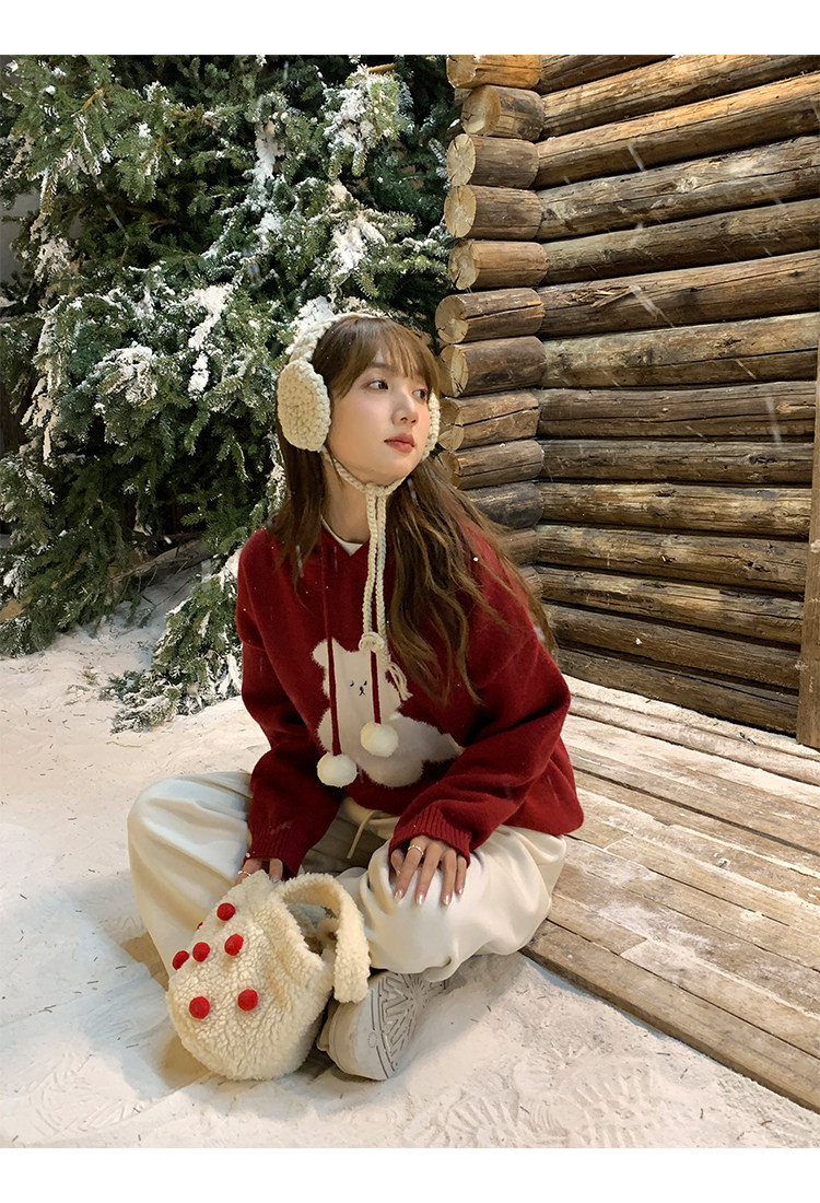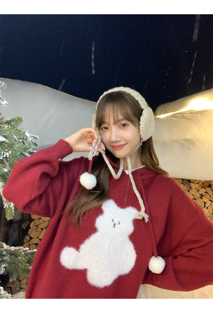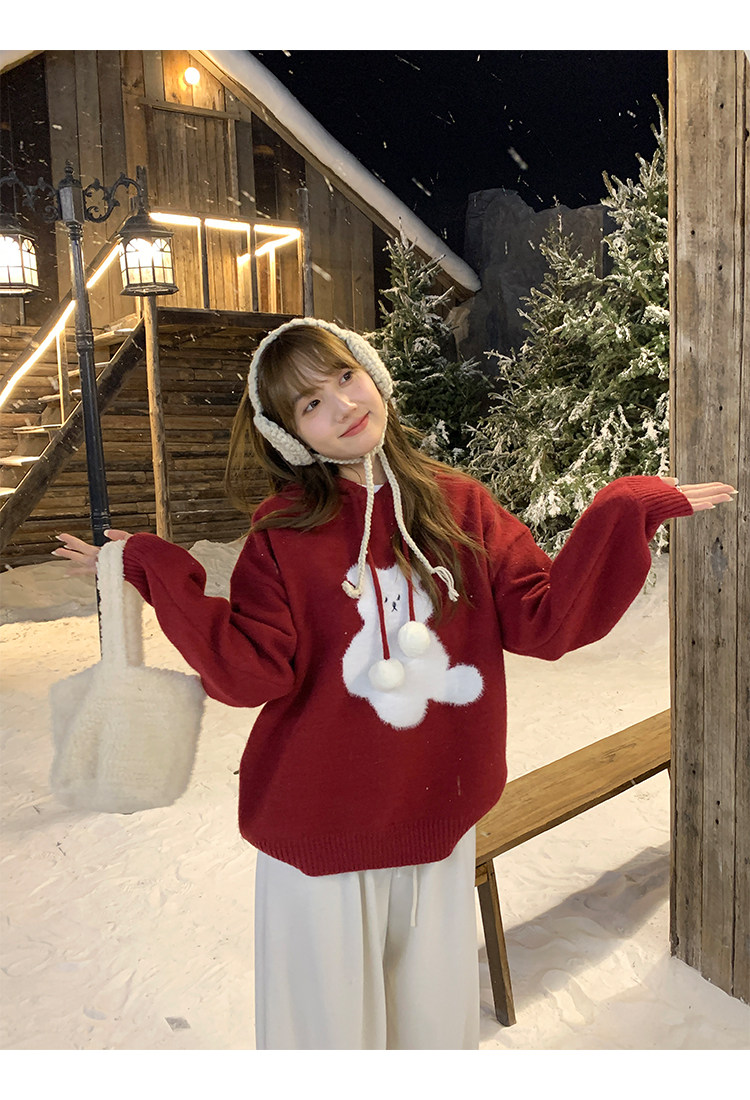 陸小團團卡通連帽長袖毛衣韓系冬季新款氣質顯瘦氛圍感寬鬆上衣女