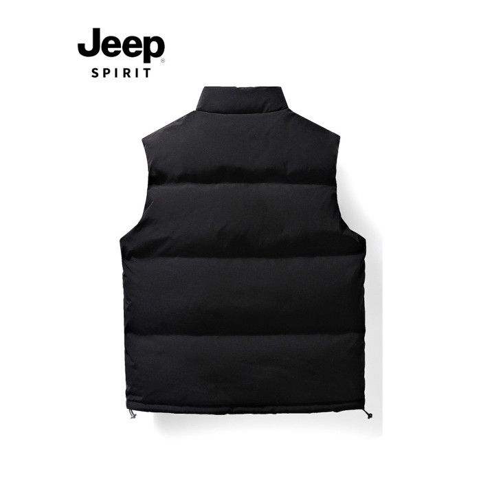 JEEP SPIRIT立領羽絨棉衣馬甲秋冬純色簡約潮牌工裝無袖襖子外套
